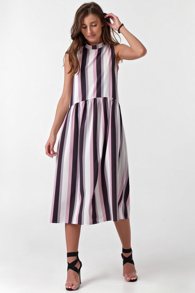 • Застежка: пуговица петля Особенности: Платье свободного силуэта. Детали: поперечное криволинейное сечение воротник-стойка. Застежка на пуговицу по спинке.