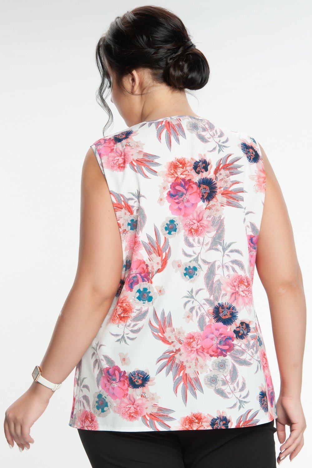 Блуза прямого силуэта, без рукава. Горловина овальная, со сборкой по переду. Горловина и пройма окантованы косой бейкой из основной ткани. Блузочная ткань не прозрачный "Ниагара".Характеристики: