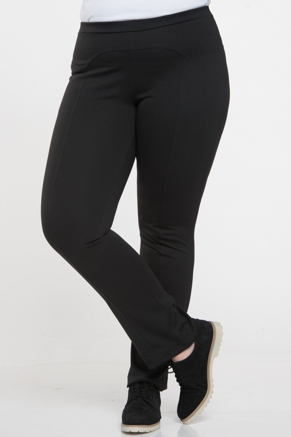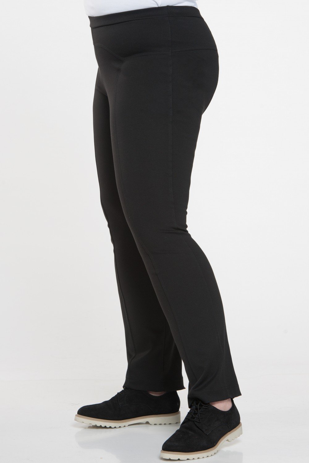 Брюки прямого силуэта с кокеткой и фигурными рельефами по передней и задней половинке. Верх брюк на притачном поясе с эластичной тесьмой. Все рельефные швы настрочены на спецмашине двойной строчкой.Характеристики: