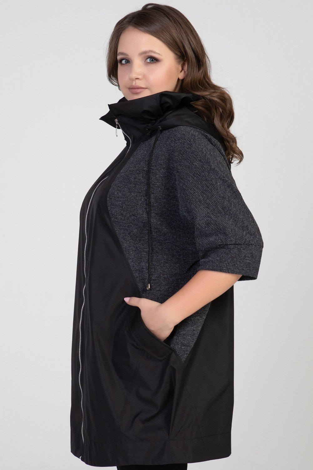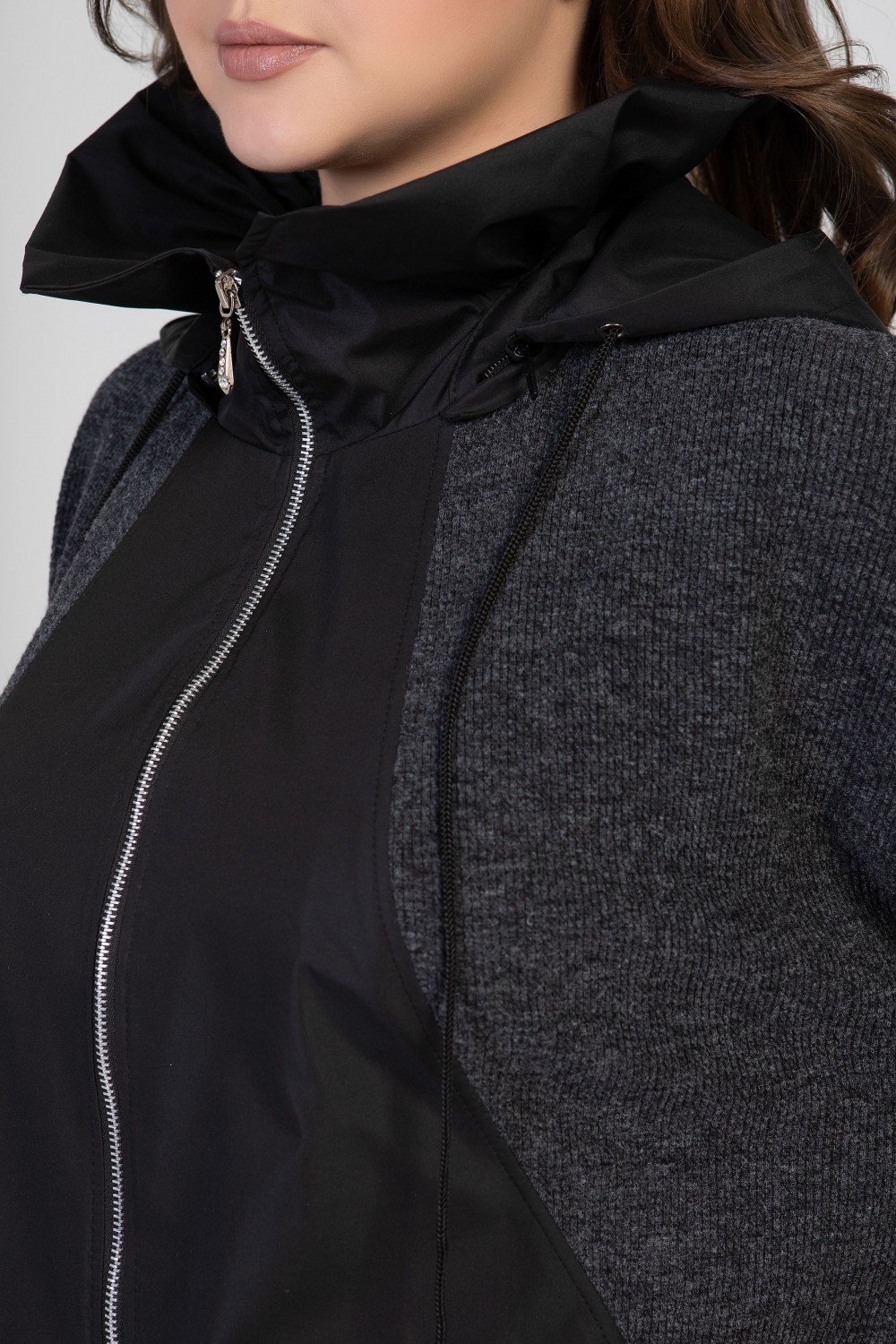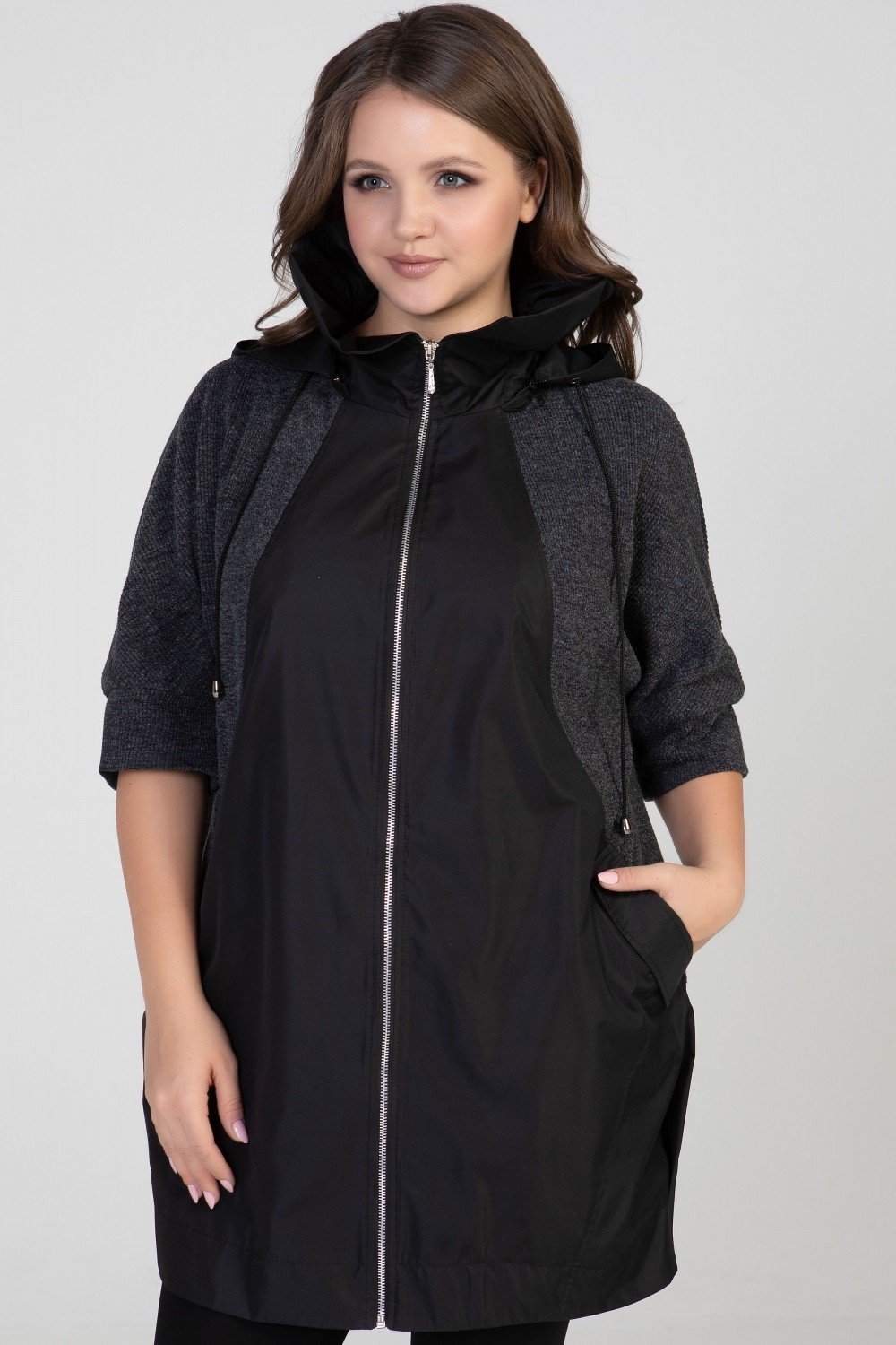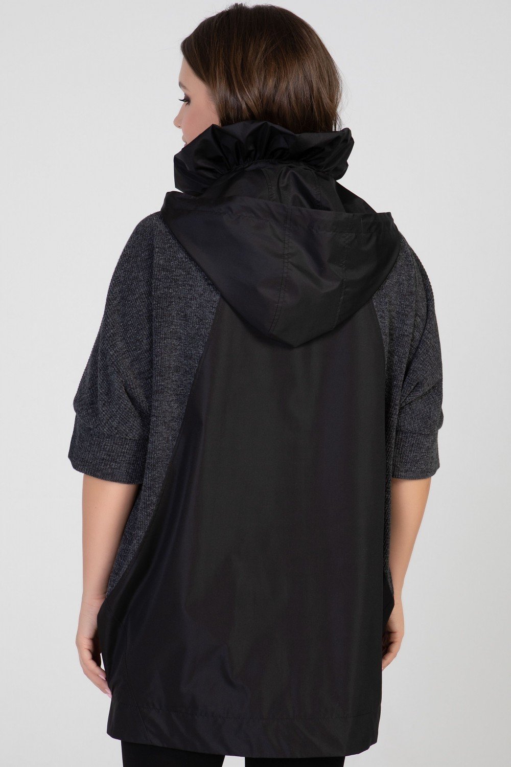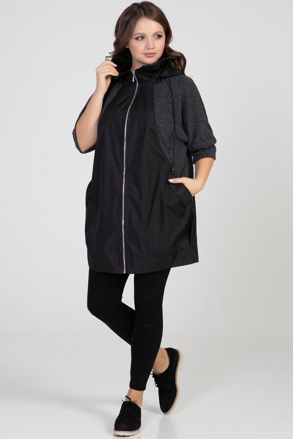 Ветровка прямого силуэта с центральной застежкой на разъемную молнию, с карманами с клапаном в рельефном шве переда. Рукав цельнокроенный, 3/4, по низу с притачной манжетой. Воротник-стойка с высоким рюшем . Ветровка выполнена из двух тканей-плащевой и трикотажного полотна.Характеристики: