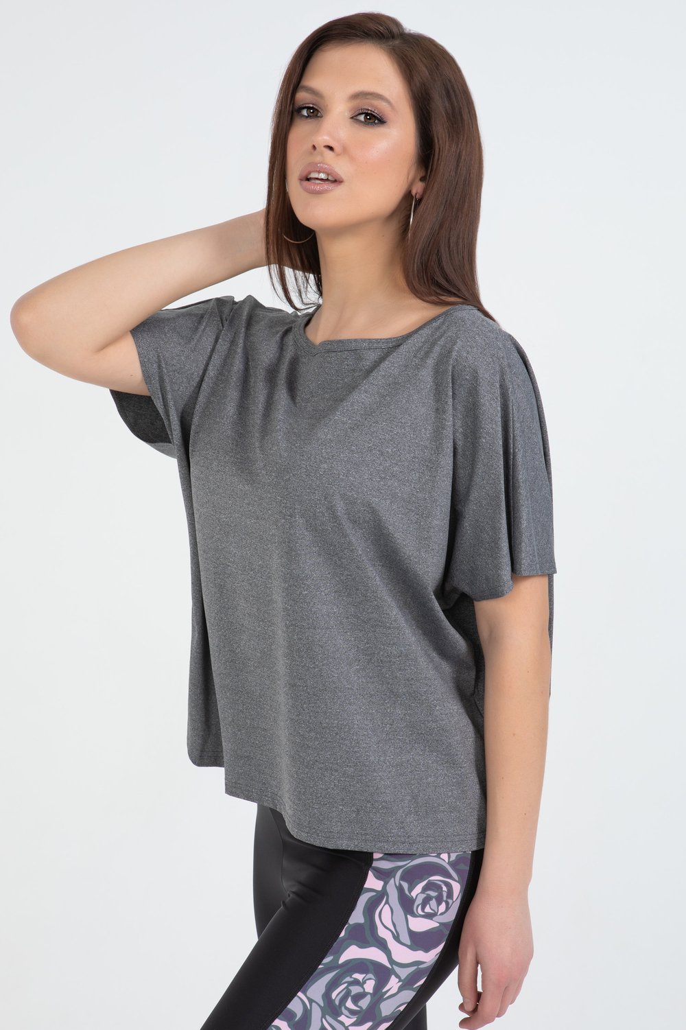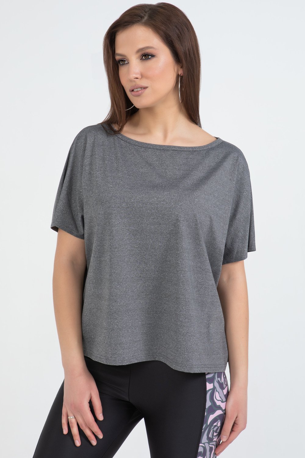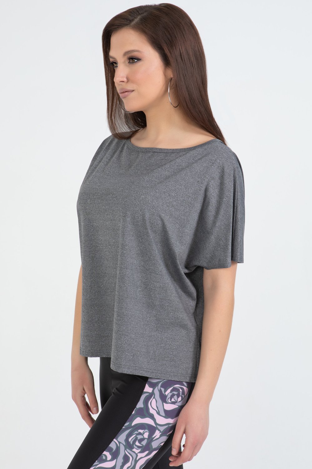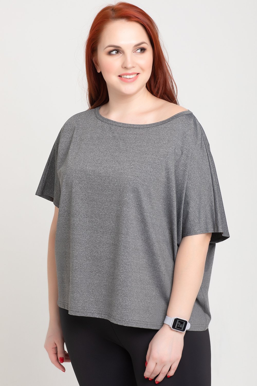 Блуза прямого силуэта, цельнокроенный короткий рукав плечо спущено. Вырез горловины лодочкой.Характеристики:
