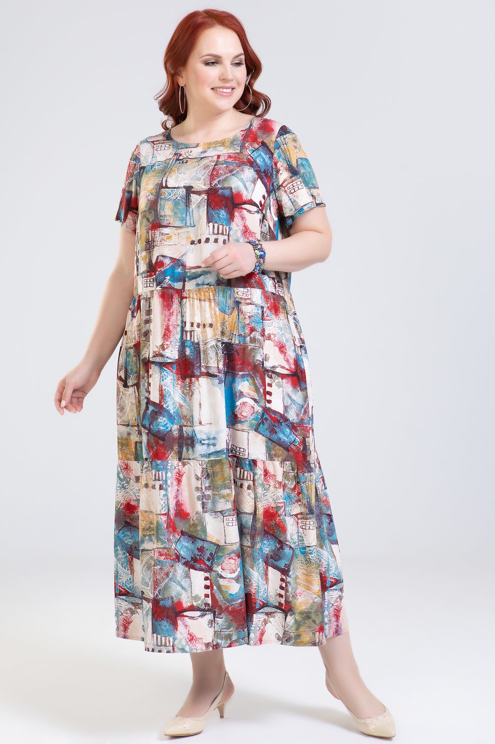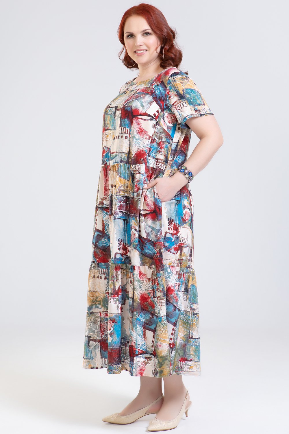 Платье трапециевидного силуэта, отрезное выше линии талии, с карманами в боковых швах. Нижняя часть переда и спинки из двух воланов, собранных в сборку.Характеристики: