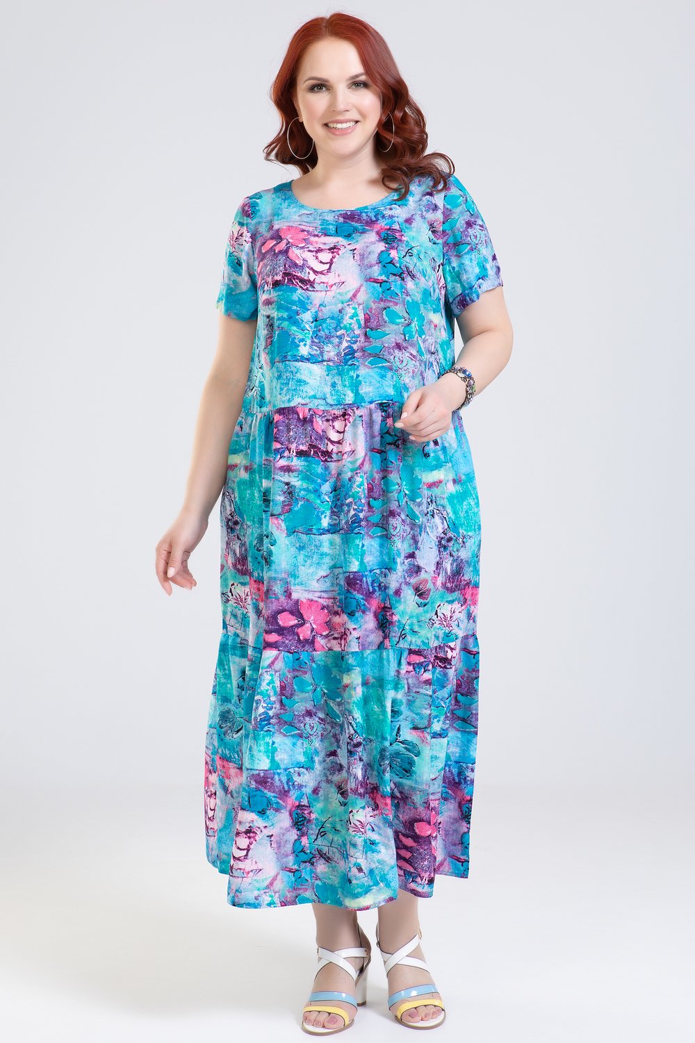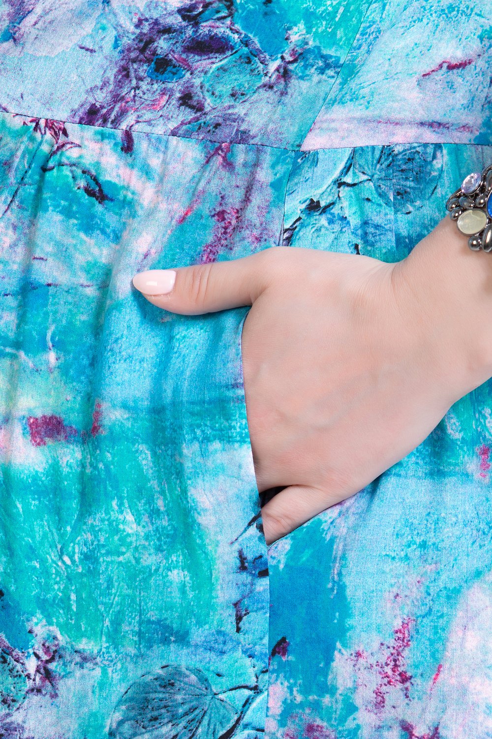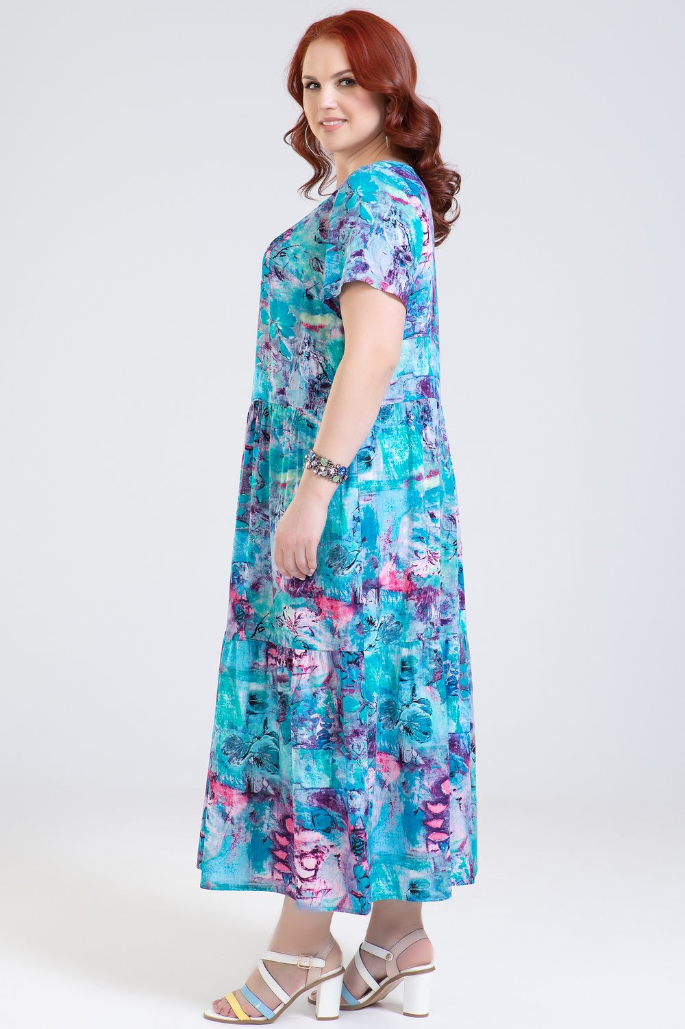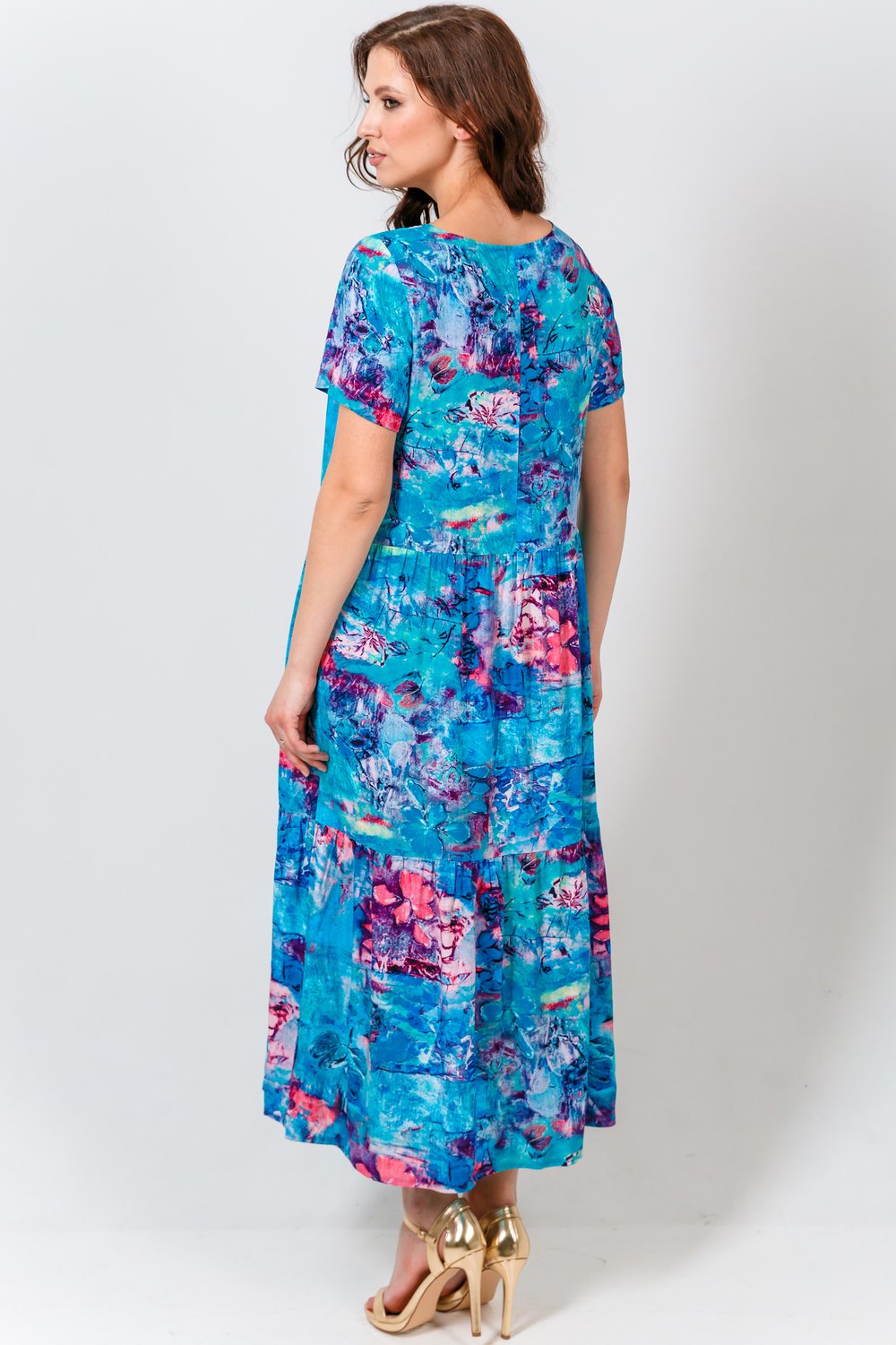 Платье трапециевидного силуэта, отрезное выше линии талии, с карманами в боковых швах. Нижняя часть переда и спинки из двух воланов, собранных в сборку.