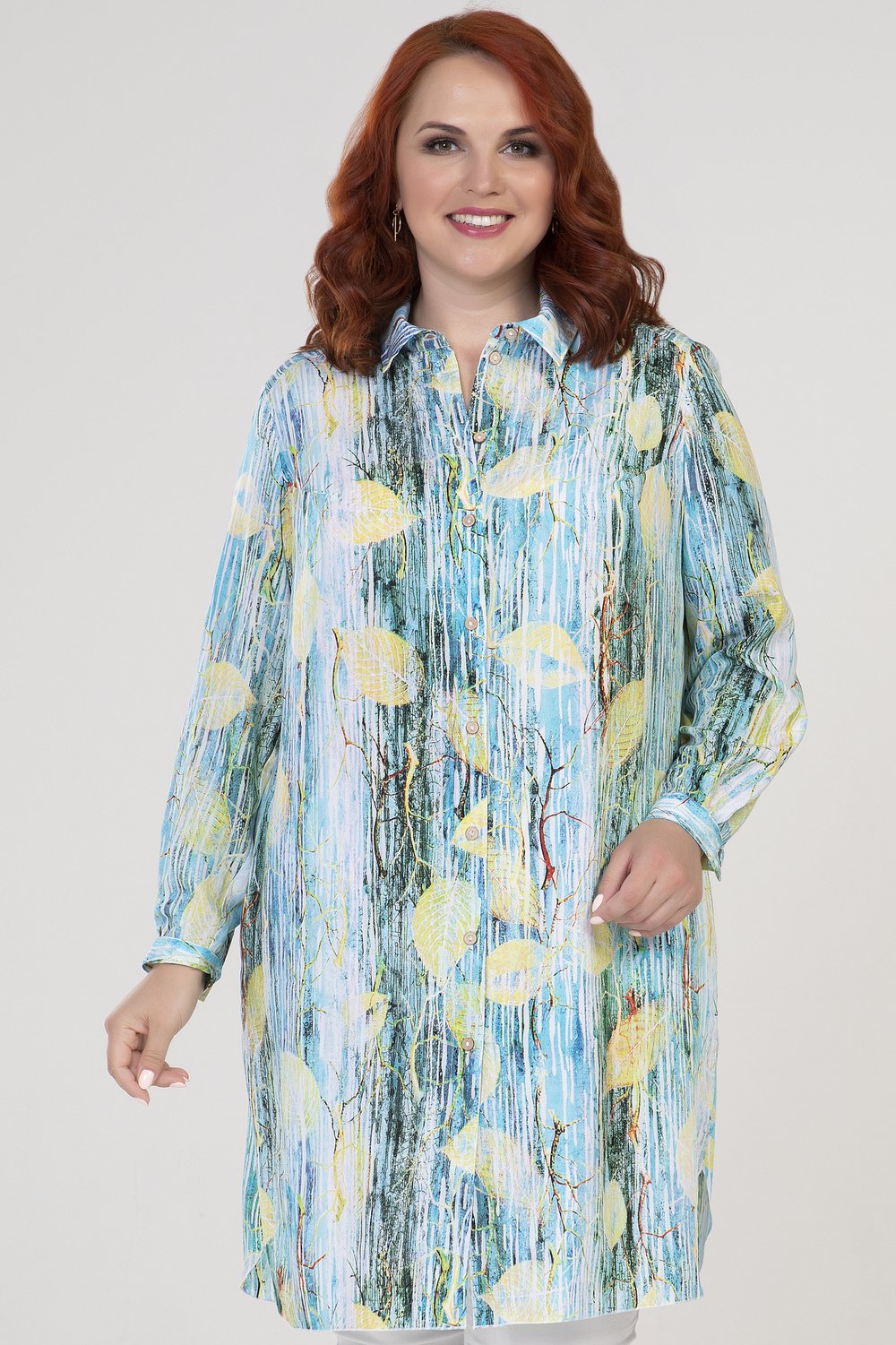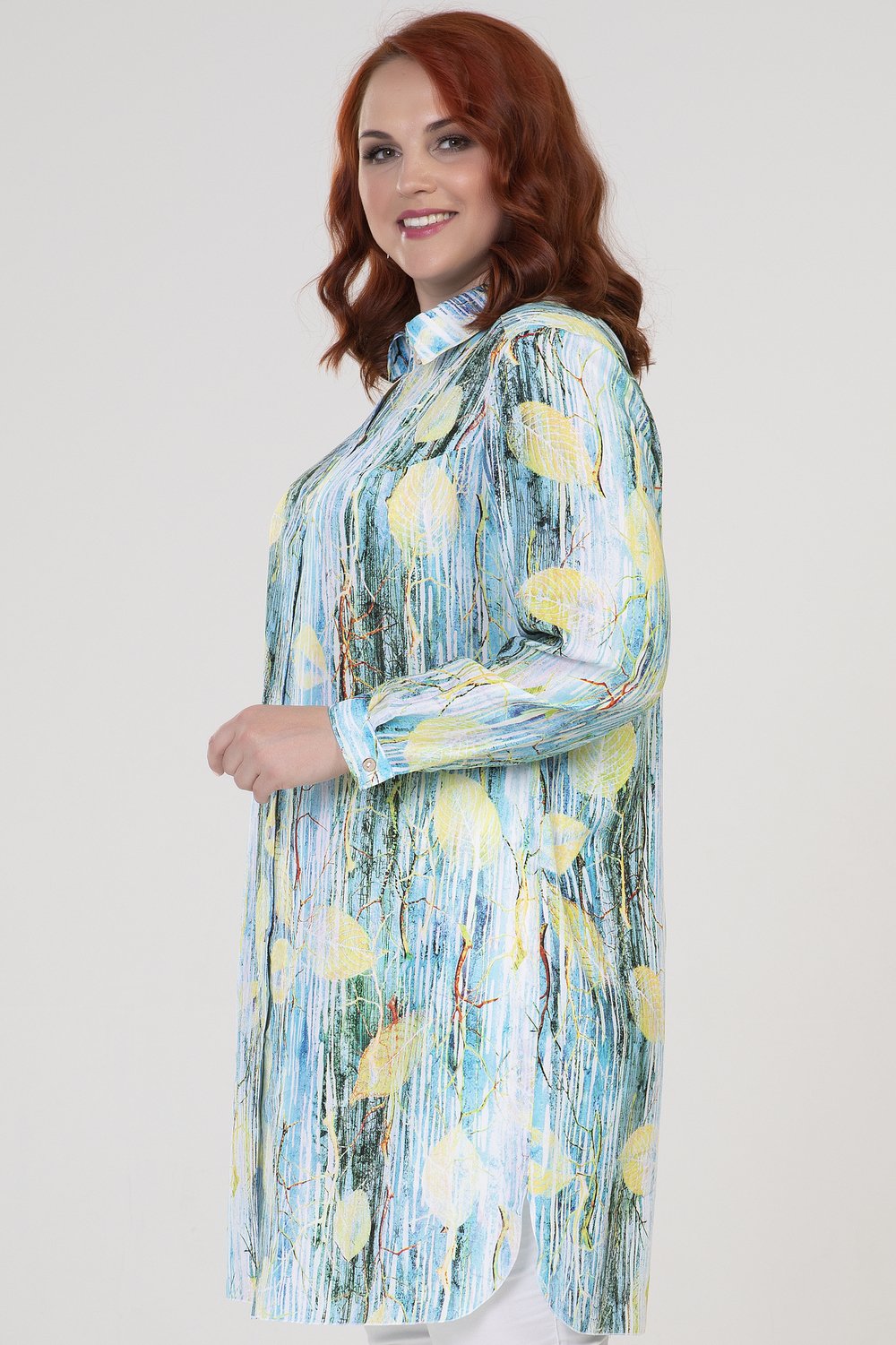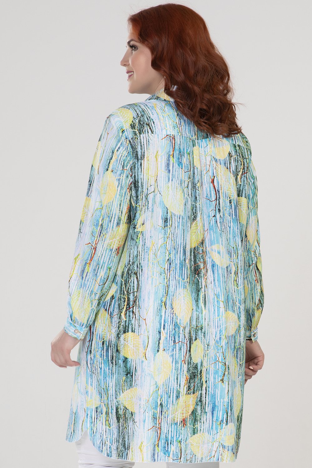 Блуза прямого силуэта с закругленным низом по переду и спинке . Перед по центру с застежкой на петли и пуговицы. Спинка с двойной кокеткой. Рукав втачной, длинный, по низу на притачной манжете, застегивающейся на петлю и пуговицу. Воротник с острыми концами на притачной стойке, застегивающейся на петлю и пуговицу.
