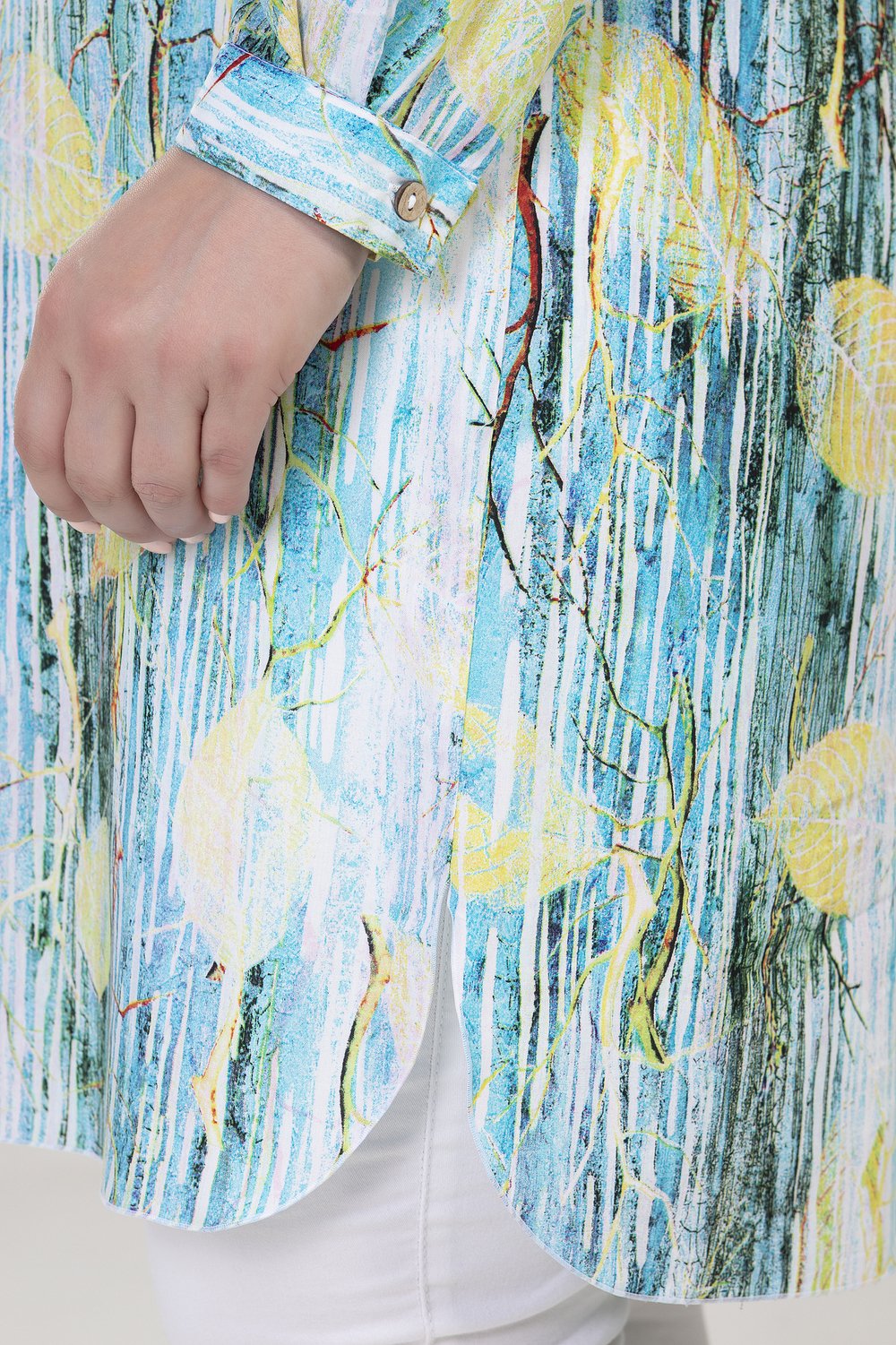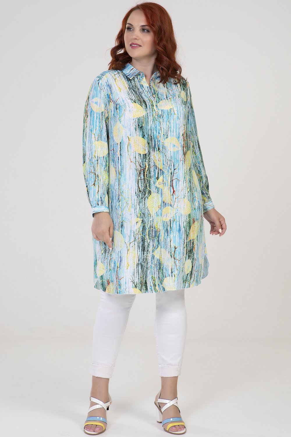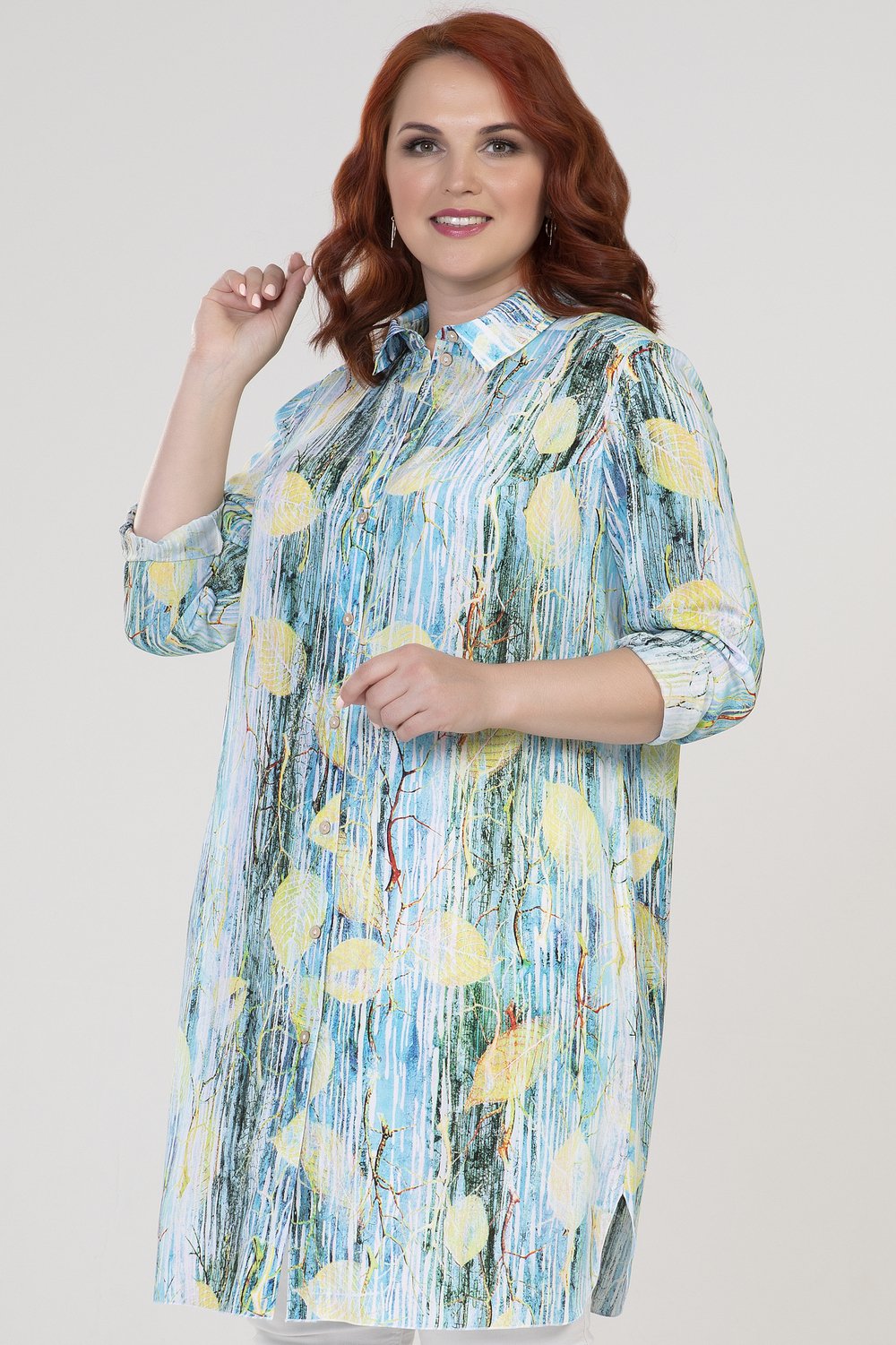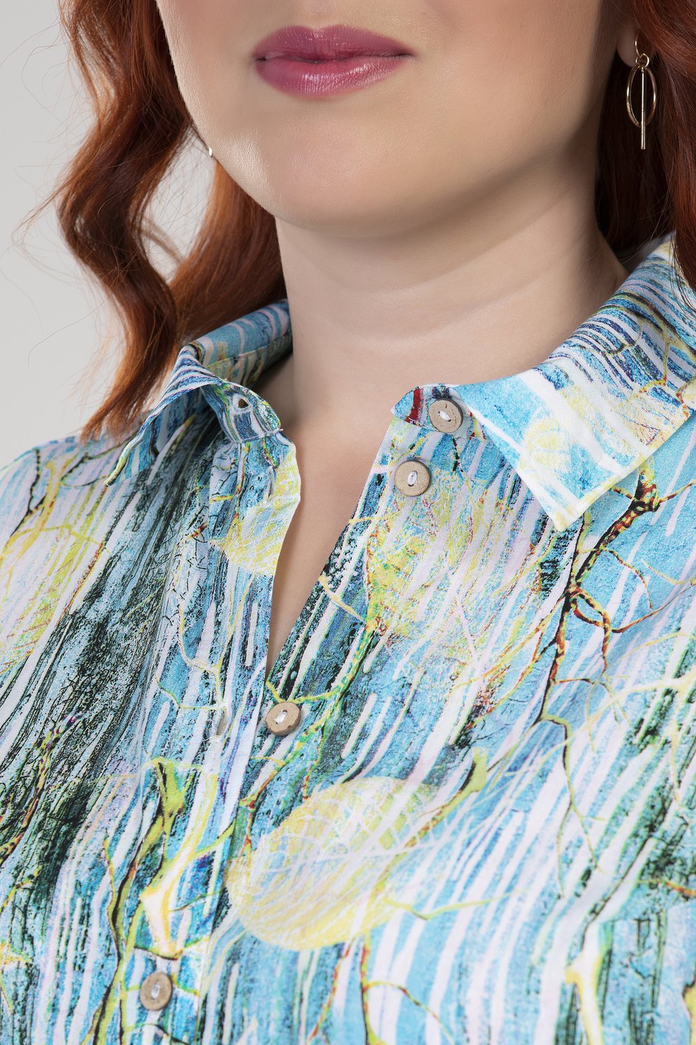 Блуза прямого силуэта с закругленным низом по переду и спинке . Перед по центру с застежкой на петли и пуговицы. Спинка с двойной кокеткой. Рукав втачной, длинный, по низу на притачной манжете, застегивающейся на петлю и пуговицу. Воротник с острыми концами на притачной стойке, застегивающейся на петлю и пуговицу.