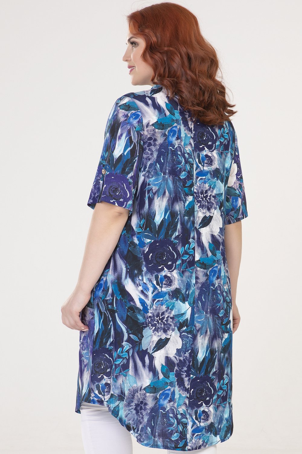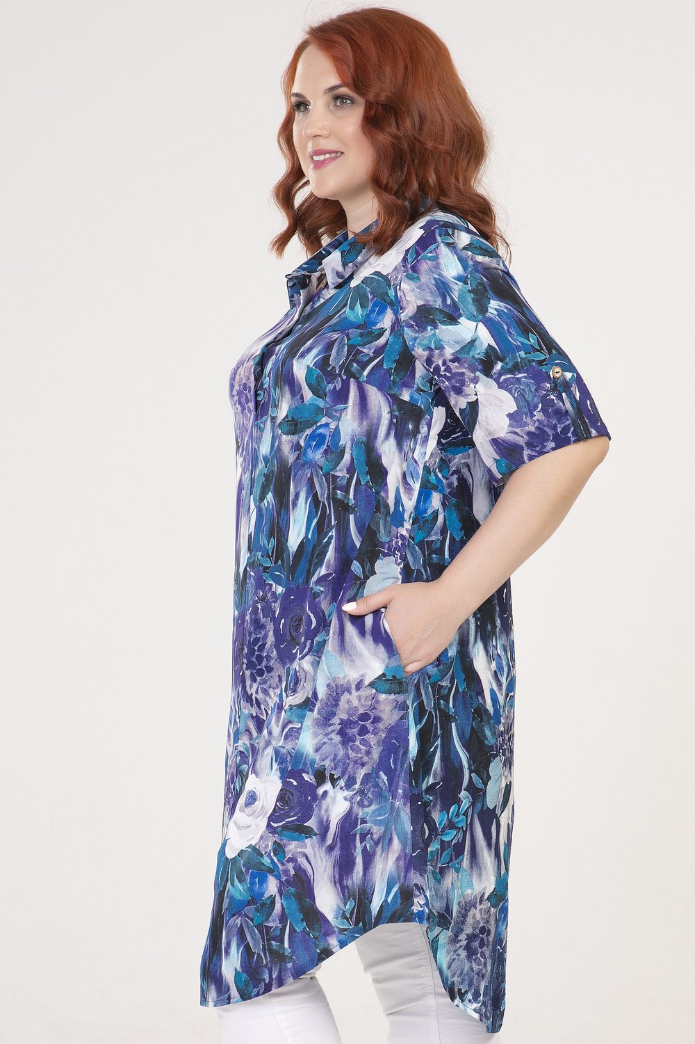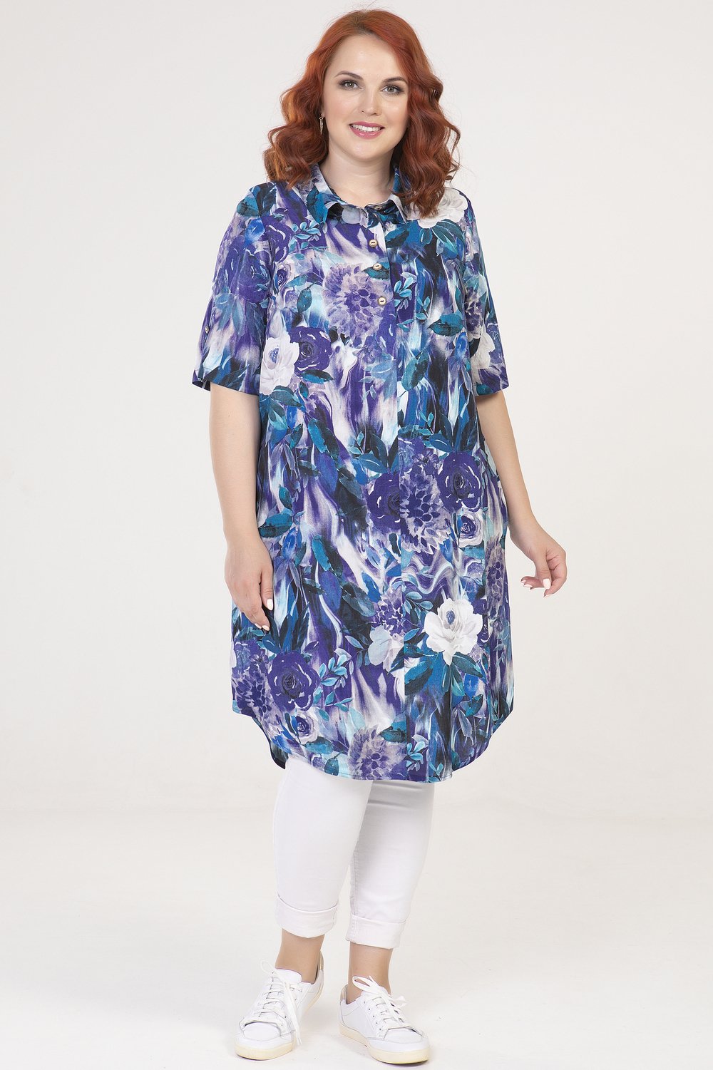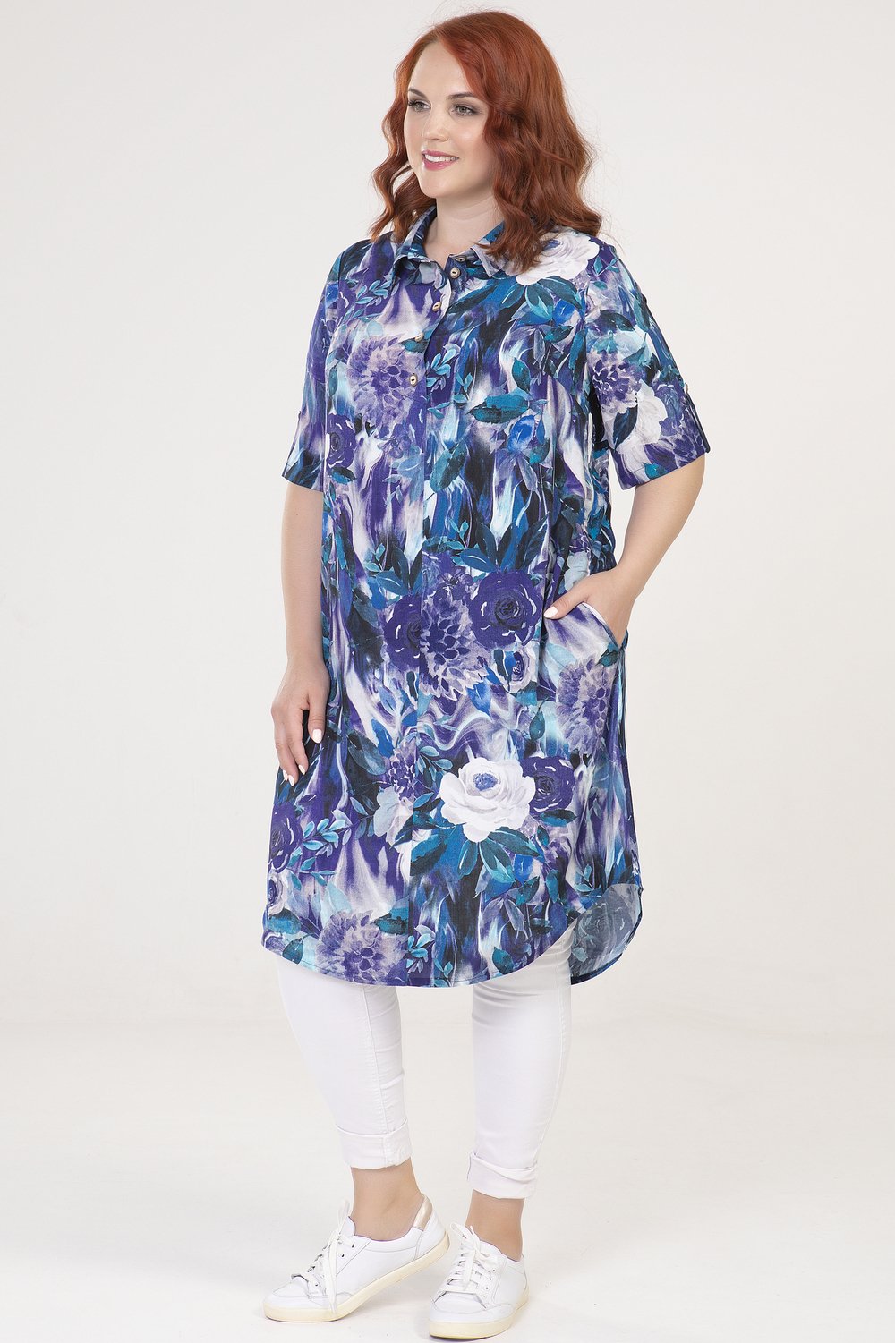 Туника прямого силуэта, с карманами в боковых швах. Перед с короткой застежкой в среднем шве на петли и пуговицы. Рукав втачной, короткий, посередине с патой из окантовочной бейки, застегивающейся на пуговицу. Воротник на стойке.
