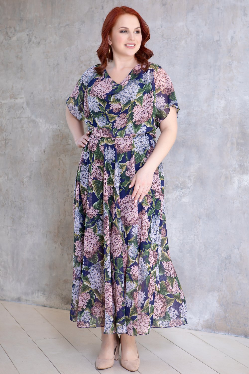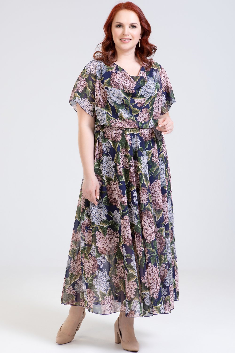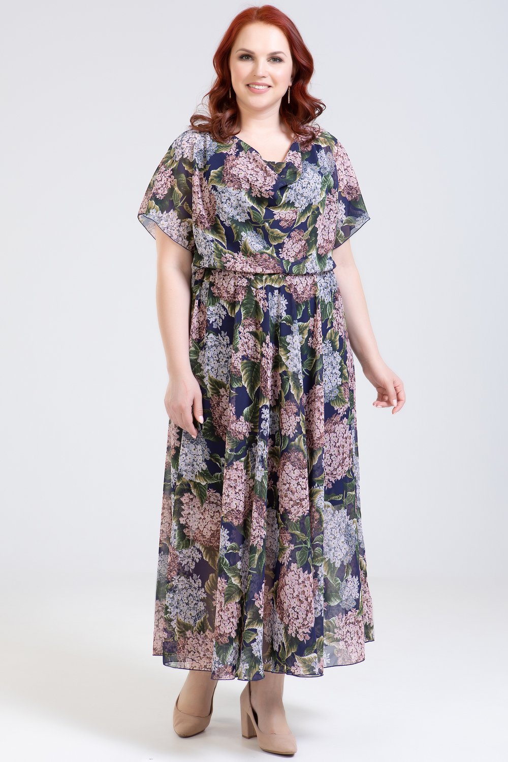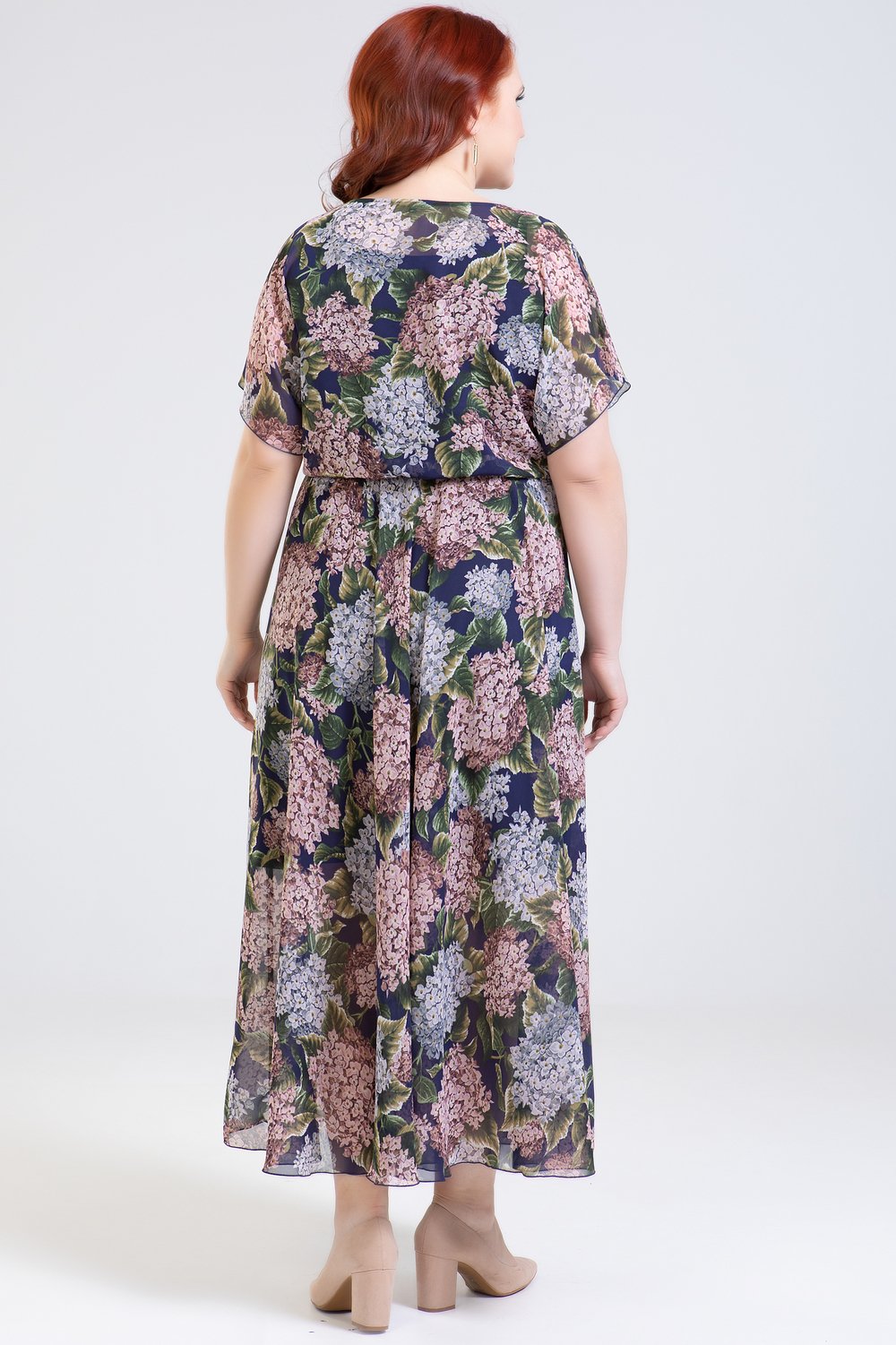 Платье отрезное по линии талии, на бретелях, юбка полусолнце. Рукав цельнокроеный, короткий. Горловина переда-качели. По шву талии- эластичная тесьма. К платью прилагается подкладка в виде платья-футляра из тонкого трикотажного полотна.Характеристики: