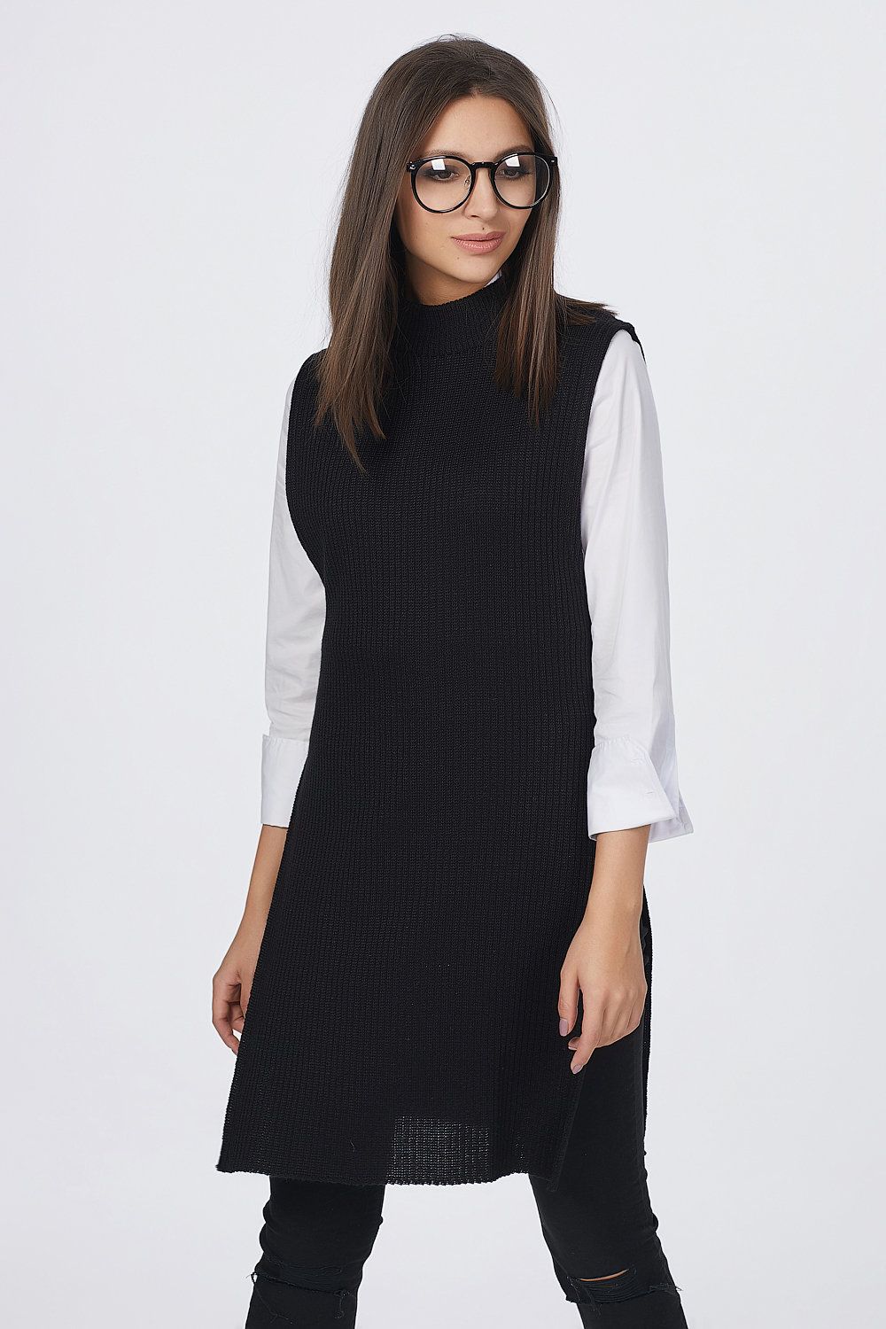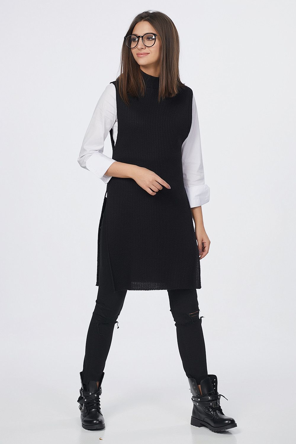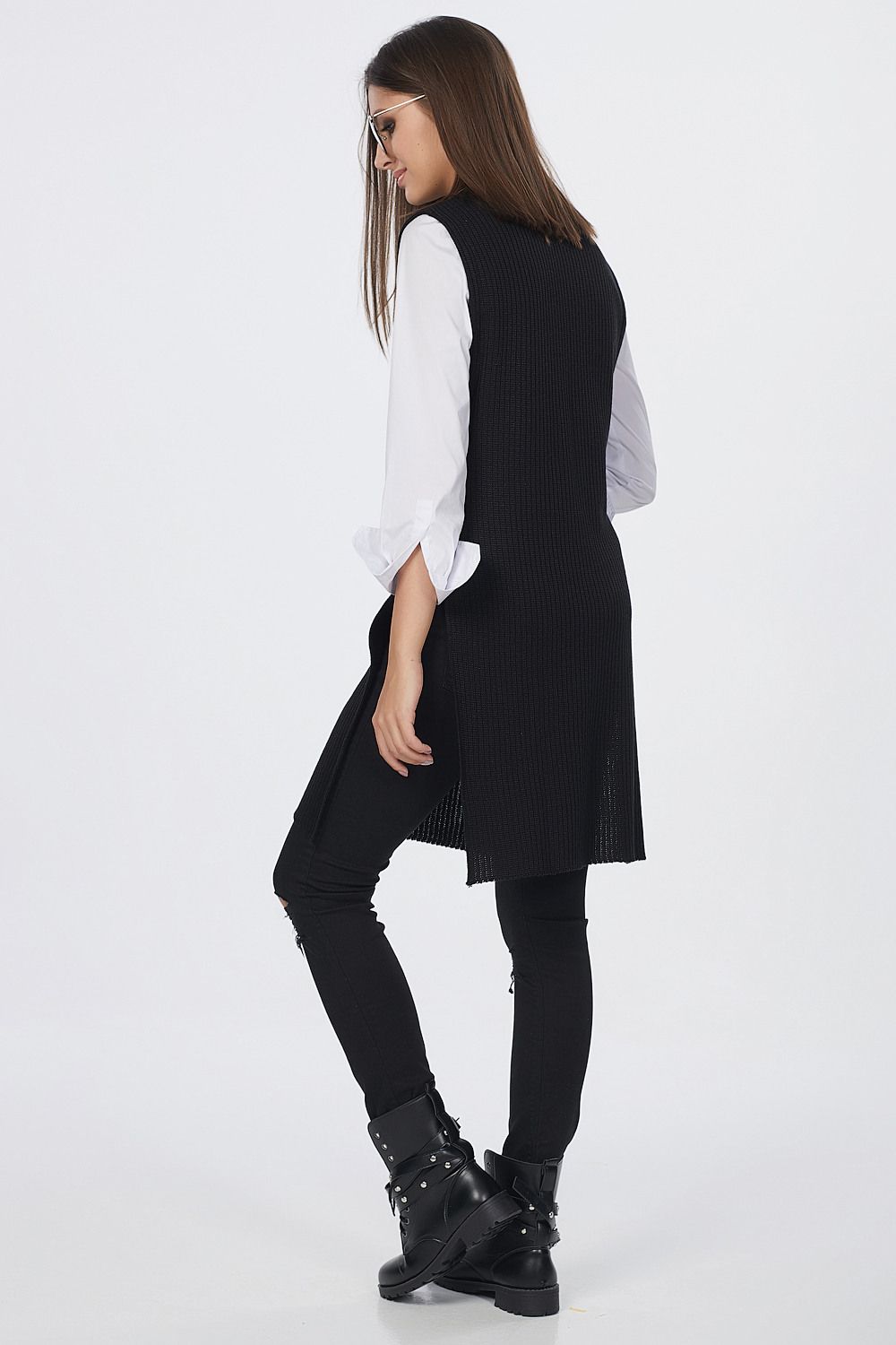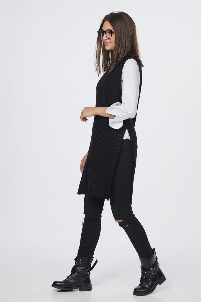 • Длина изделия: по спинке около 89 см (44-48 р) Особенности: Удлиненный жилет прямого силуэта выполнен фактурной вязкой из смесовой пряжи с добавлением хлопка и шерсти. Фиксированные боковые швы образуют разрезы и углубленную пройму
