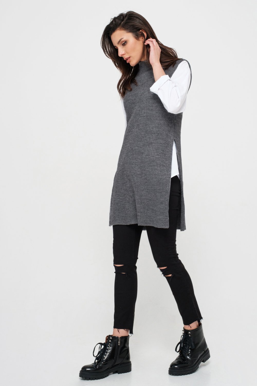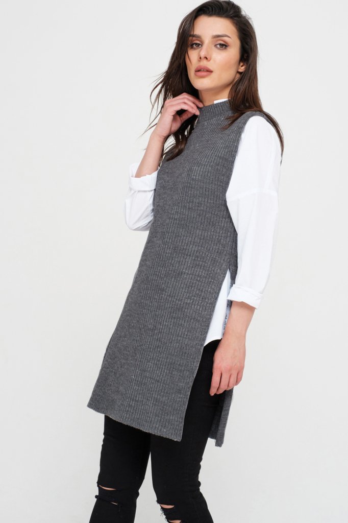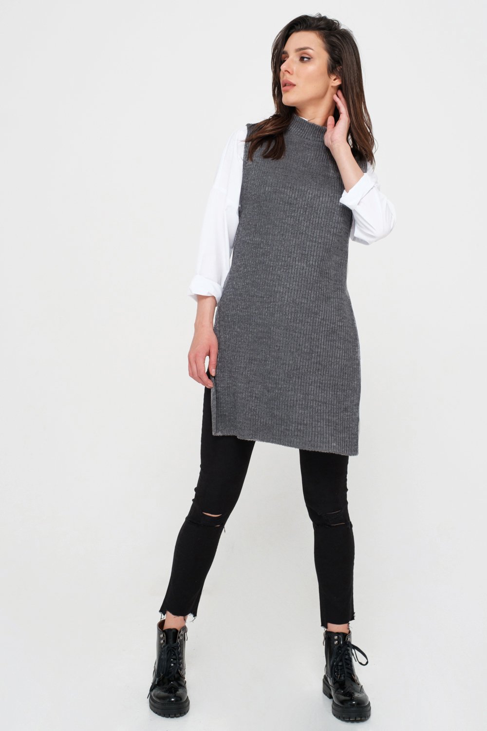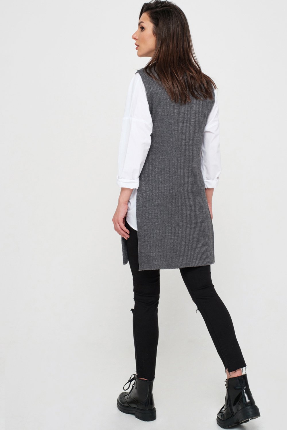 • Длина изделия: по спинке около 89 см (44-48 р) Особенности: Удлиненный жилет прямого силуэта выполнен фактурной вязкой из смесовой пряжи с добавлением хлопка и шерсти. Фиксированные боковые швы образуют разрезы и углубленную пройму