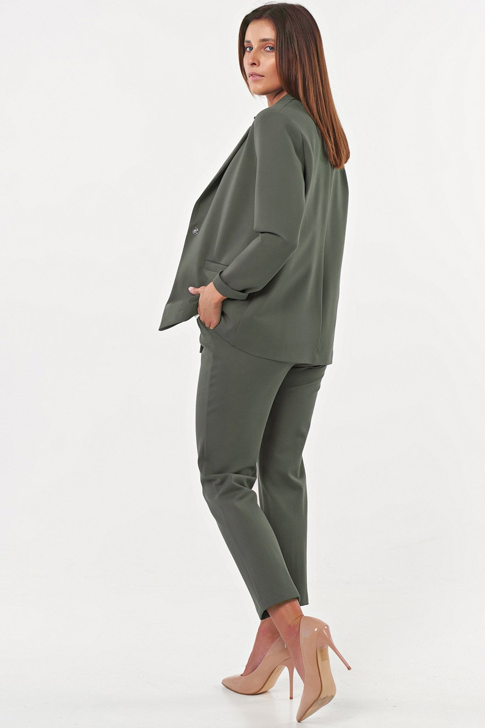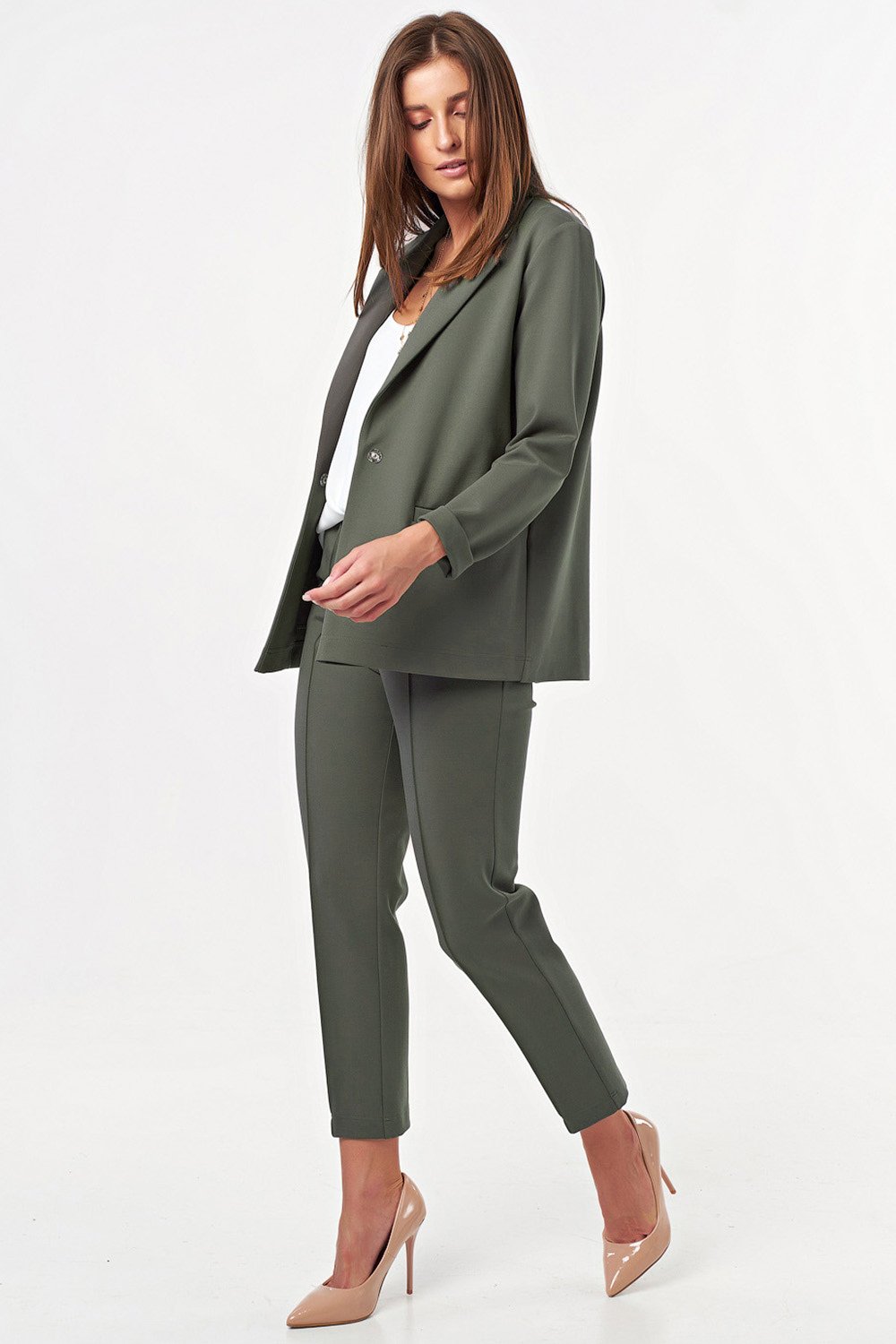 • Пояс: притачной • Посадка: высокая (на линии талии) • Силуэт: полуприлегающий • Карманы: брючные • Застежка: кнопка • Рост модели на фото: 171 см • Размер модели на фото: 40 р-р