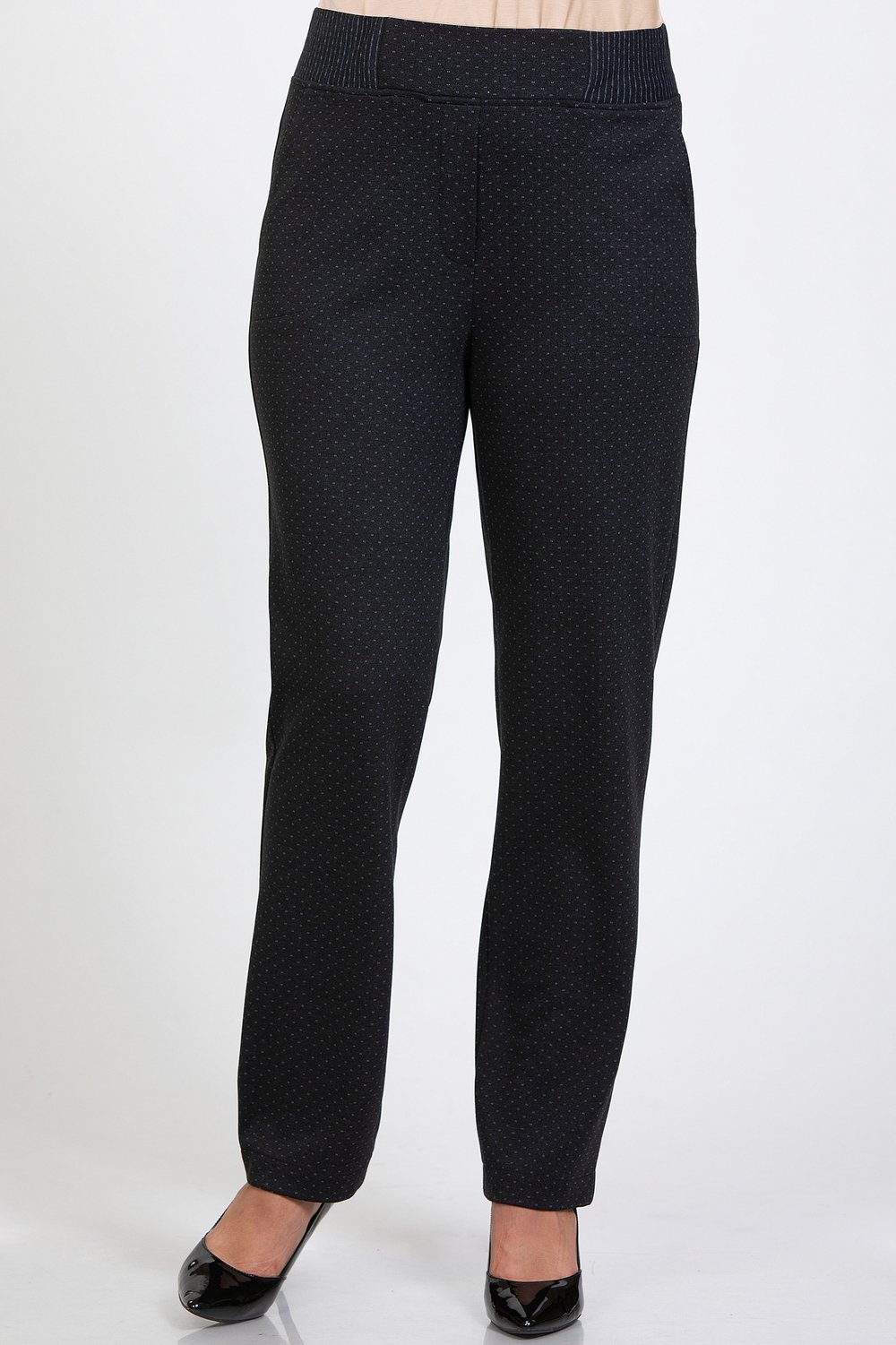 Брюки прямые, полуприлегающего силуэта, с боковыми карманами. Перед с имитацией застежки. Пояс высокий, с резиной.Характеристики: