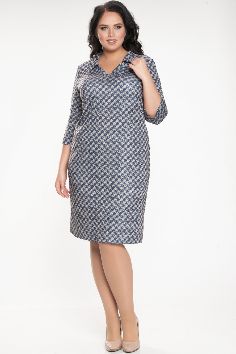 Платье полуприлегающего силуэта из трикотажного полотна. Горловина V-образная с планкой и отложным воротником. Рукав втачной, 3/4.