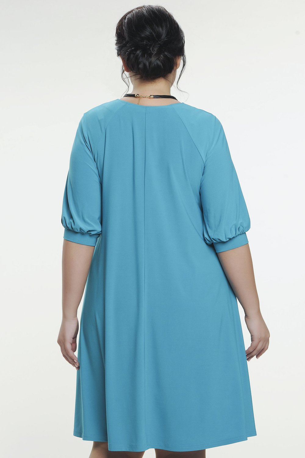 Нарядное платье из струящегося нежного трикотажного полотна. Очень женственная и красивая модель! Втачной рукав-фонарик до локтя (с эластичной узкой манжетой), V-образный вырез, трапециевидный силуэт. Без застежки и подклада. Модель выполнена в однотонном варианте, что позволяет дополнить платье различными аксессуарами.