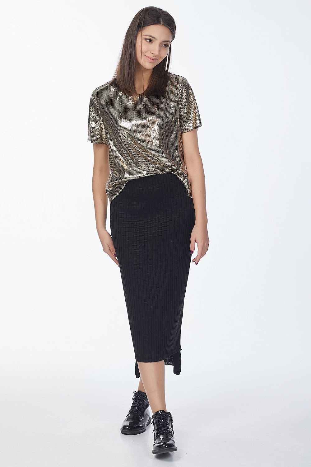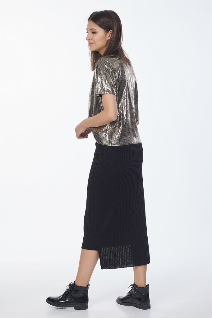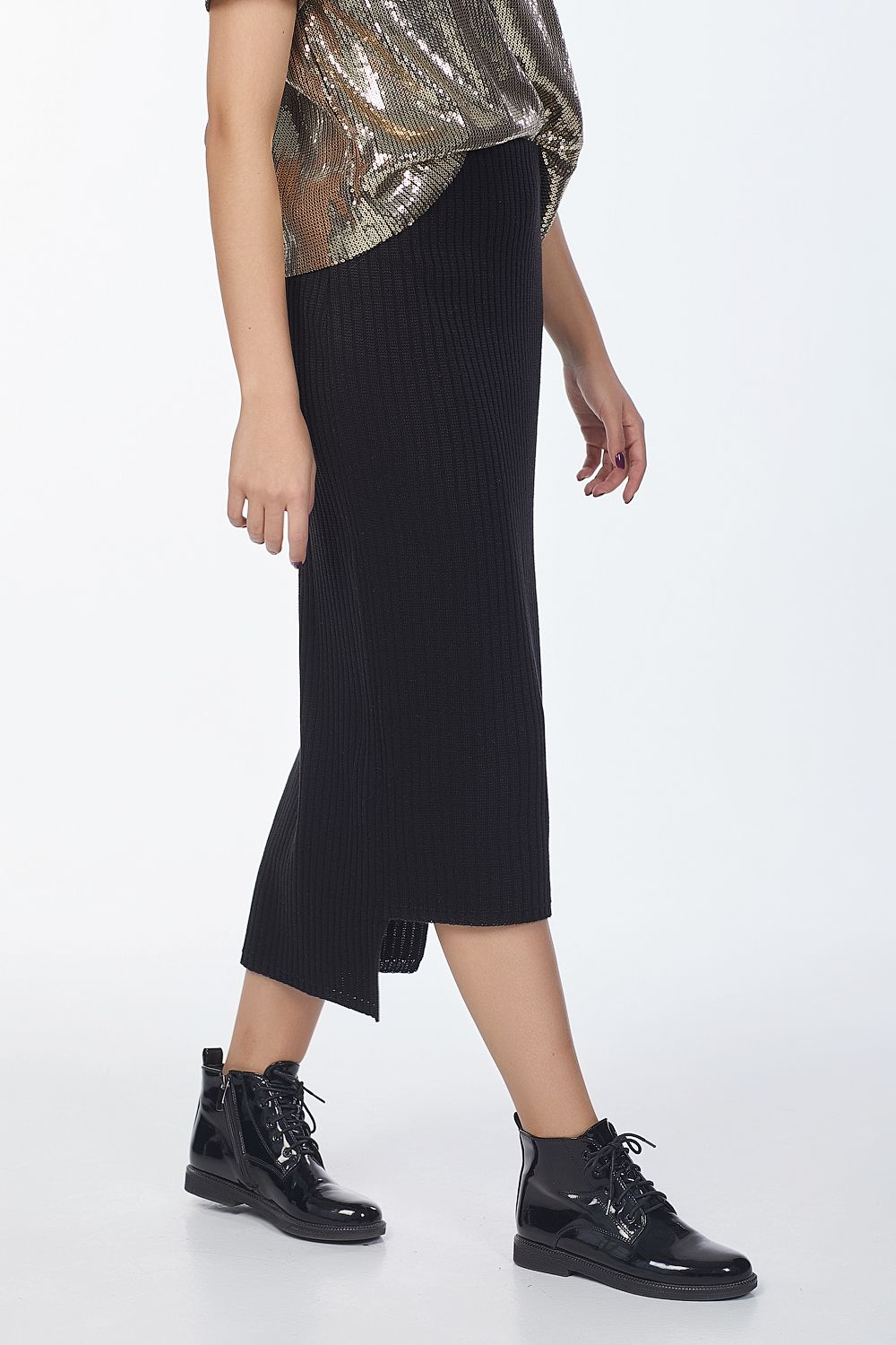Вязаная юбка - миди, прямого силуэта, выполнена фактурной вязкой из смесовой пряжи с содержанием хлопка и шерсти. По талии фиксируется внутренней эластичной резинкой. Спинка длиннее переда на 11 см. Длина изделия по спинке около 83 см (44-48 р.)Характеристики: