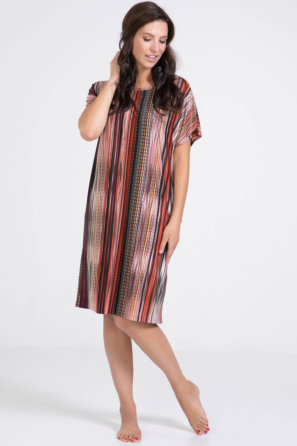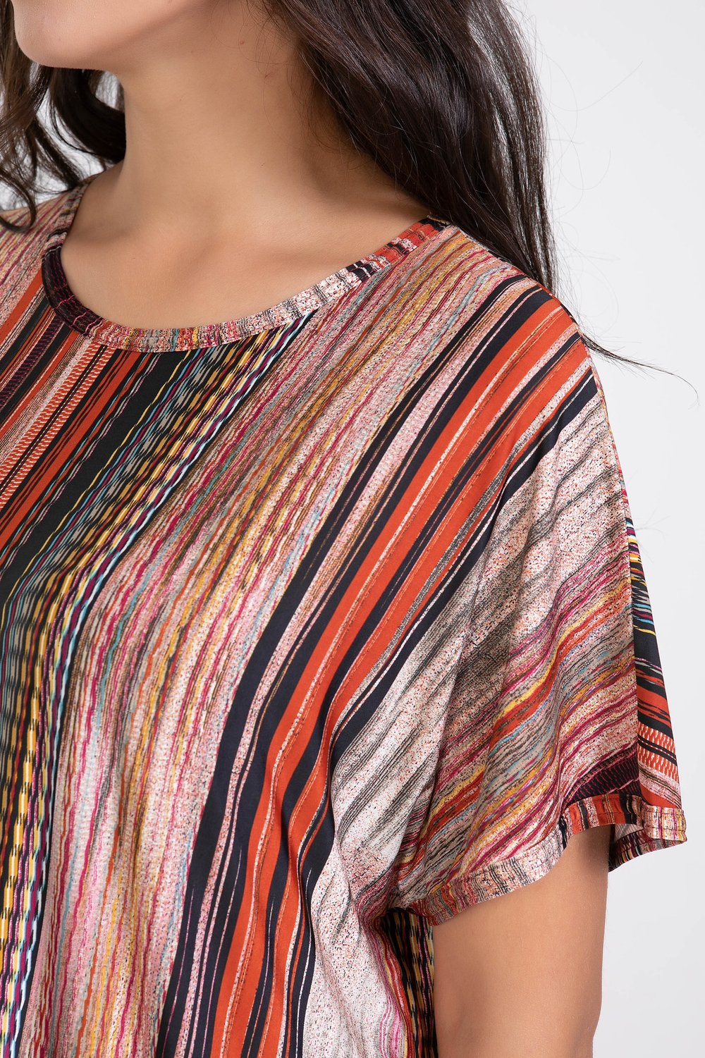 Туника прямого силуэта. Плечо спущенное, горловина круглая. Горловина и пройма обработаны окантовочной бейкой из основного сырья.