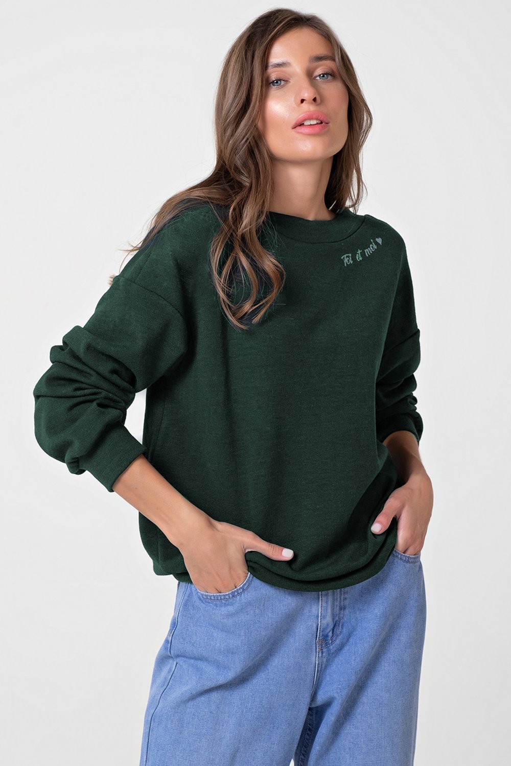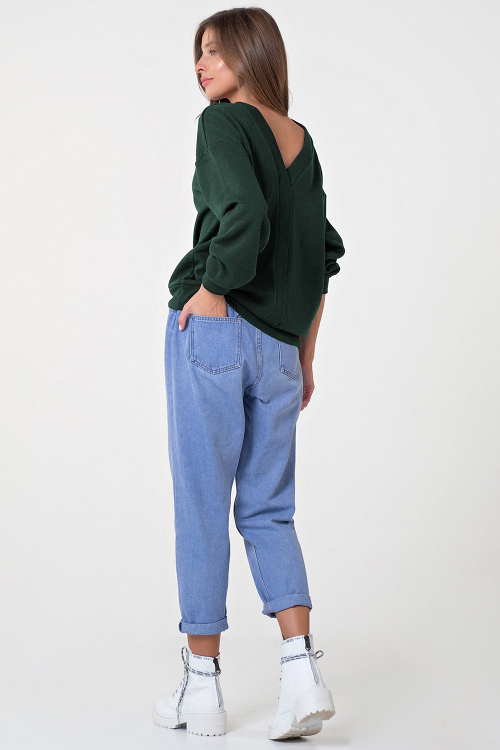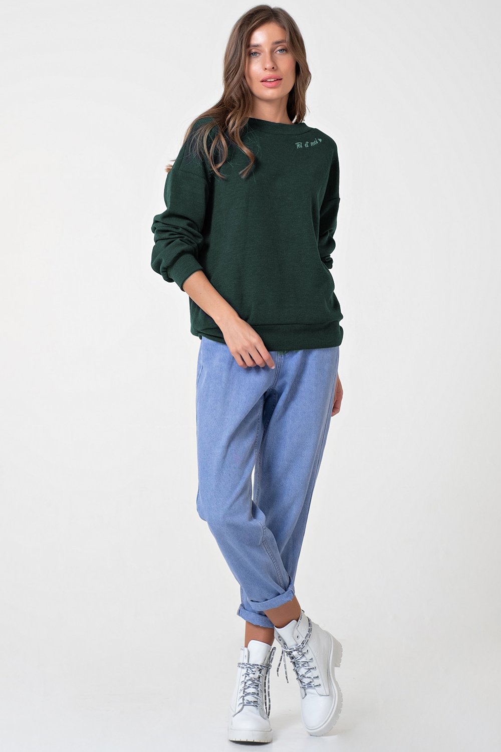•Особенности: Джемпер силуэта oversize из мягкого объемного трикотажа. Детали: горловина обработана широкой планкой, рукав широкий, со спущенной проймой, на манжете, по переду нанесен принт. Детали спинки: V-образный вырез. Изделие по низу на манжете.