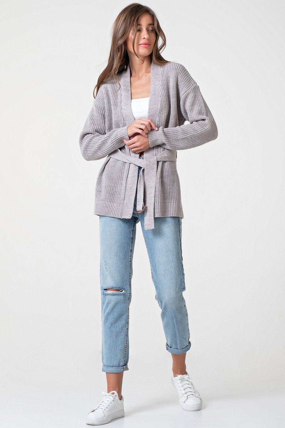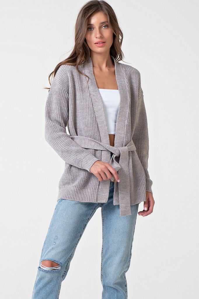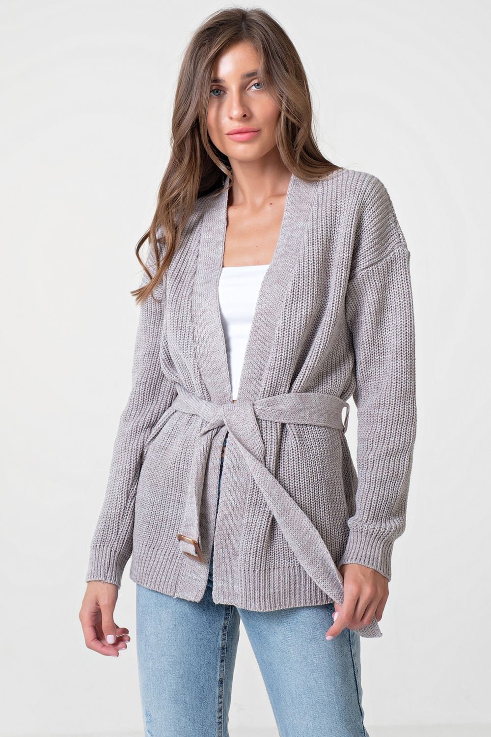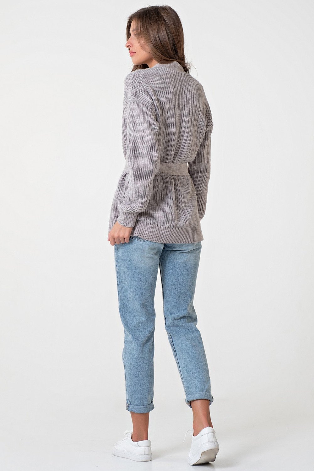•Особенности: Вязаный кардиган выполнен фактурным способом из смесовой пряжи с содержанием хлопка, дополнен съемным поясом.