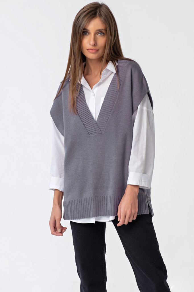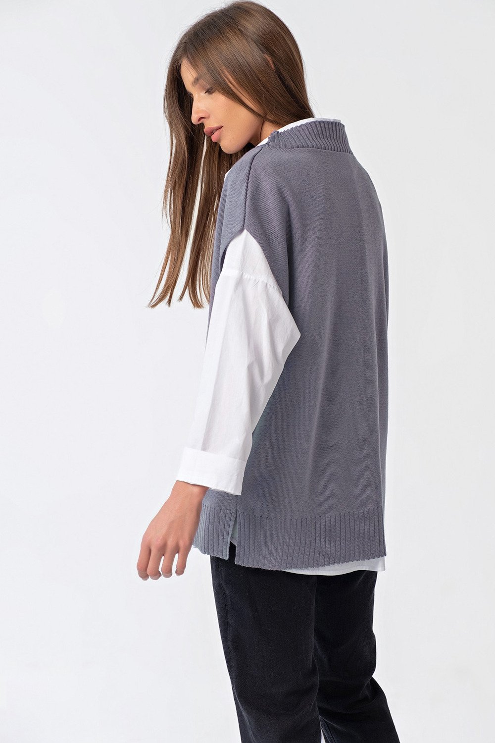 • Длина изделия: по спинке около 68 см. Особенности: По бокам выполнены разрезы, низ изделия и горловина оформлен резинкой в рубчик.