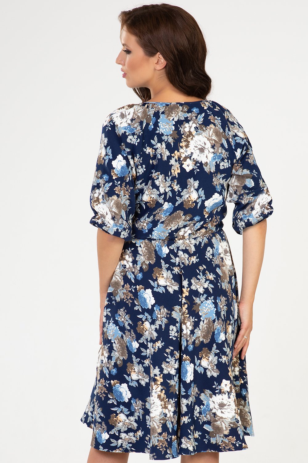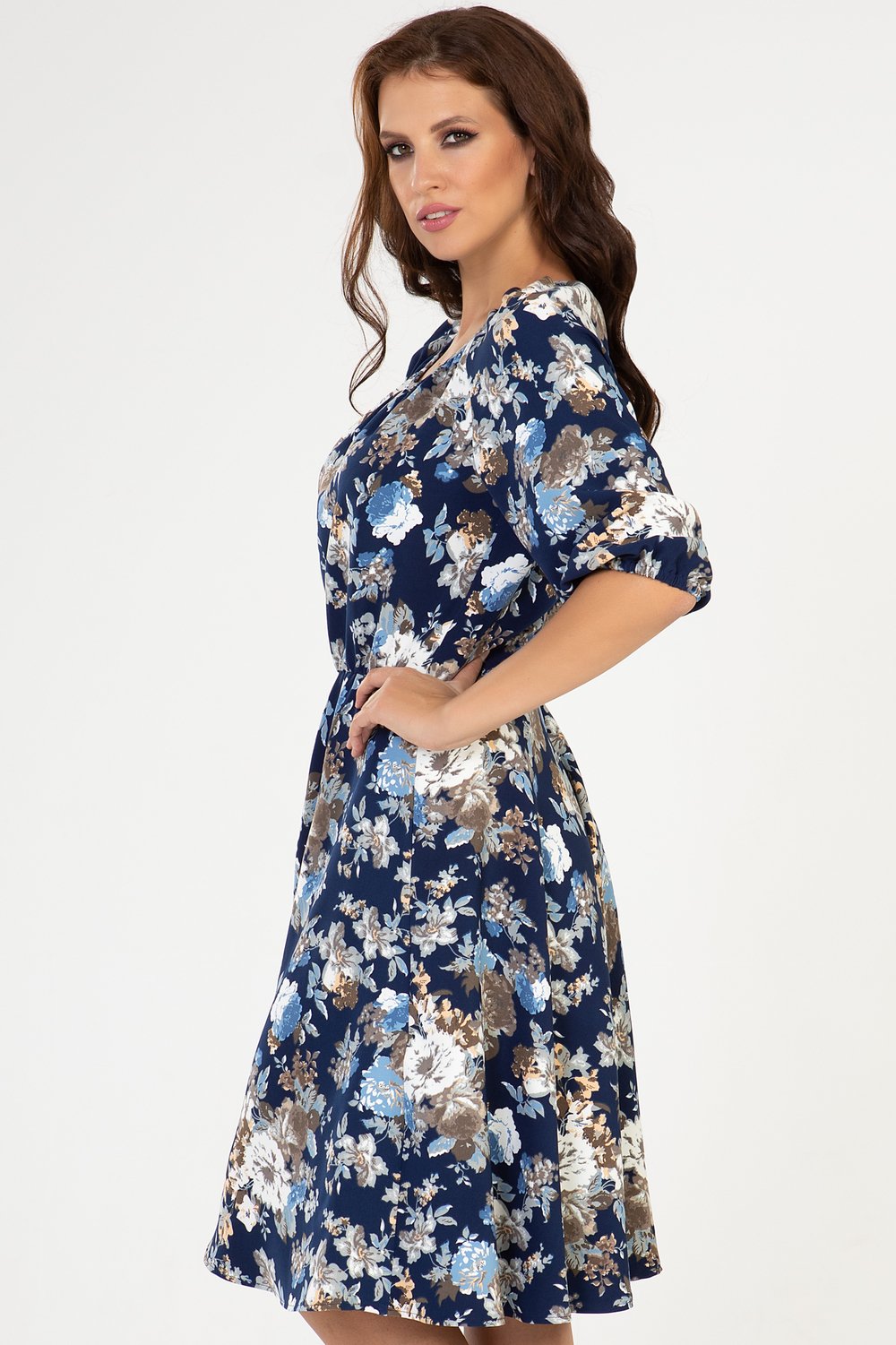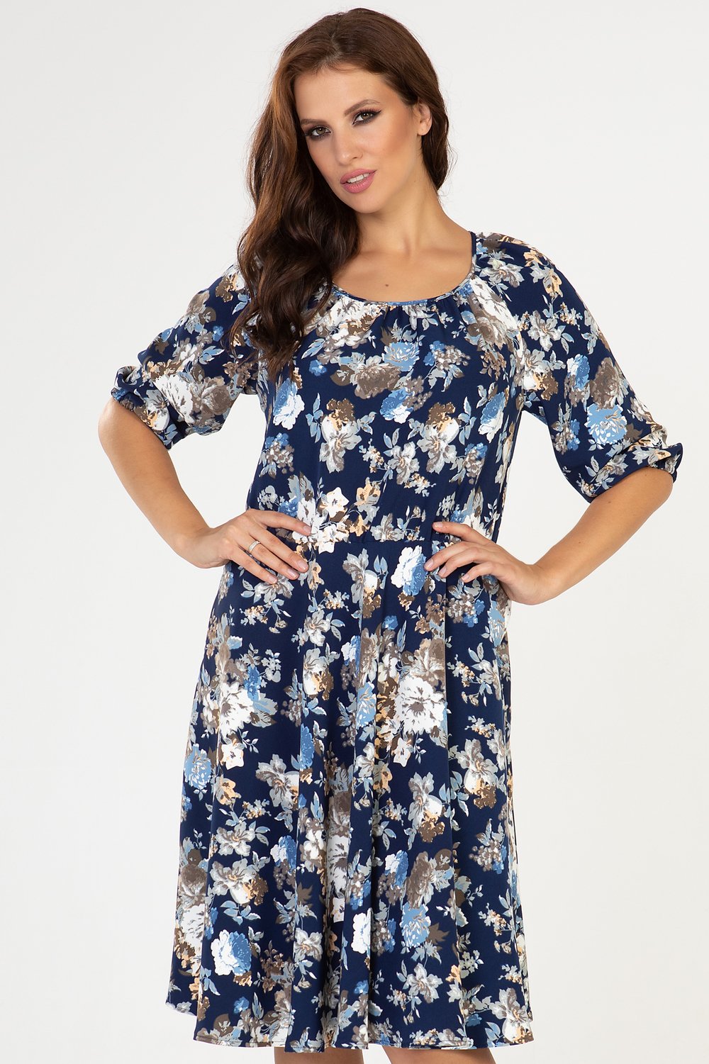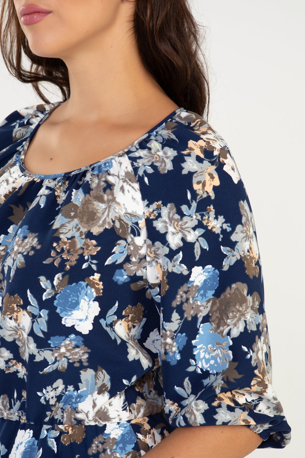 Платье отрезное по линии талии. Рукав реглан,3/4, по низу на эластичной тесьме. Горловина переда и спинки собрана в сборку. Юбка полусолнце. По шву талии эластичная тесьма.Характеристики: