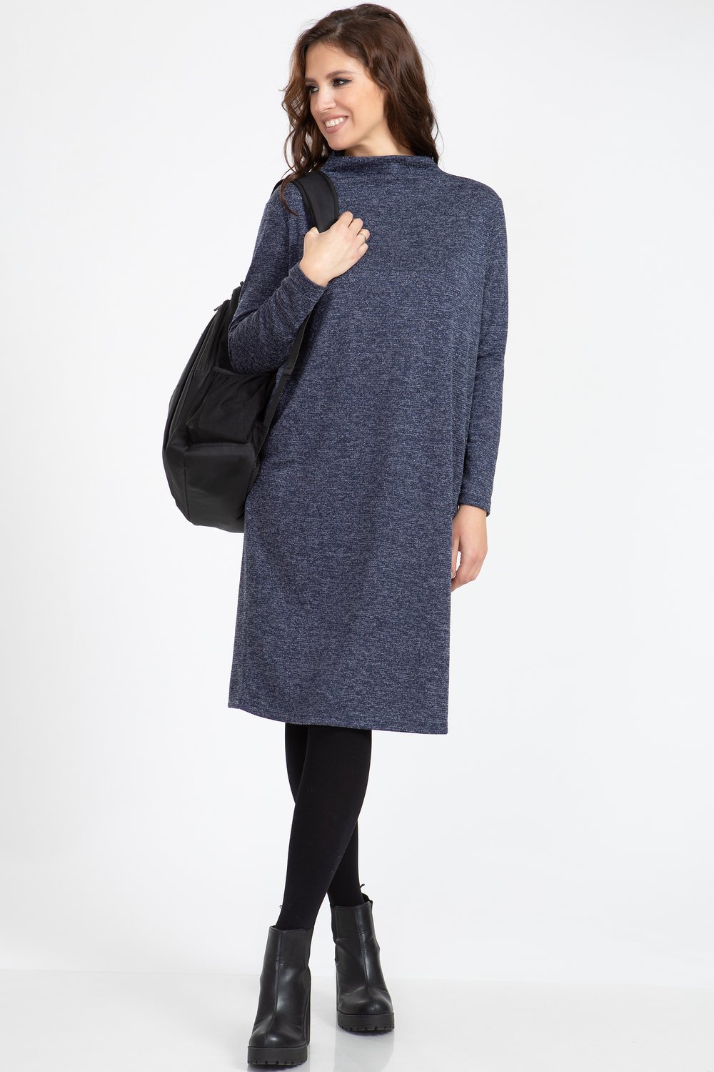 Платье из трикотажного полотна прямого силуэта с цельнокроенной стойкой. Рукав втачной, длинный.Характеристики: