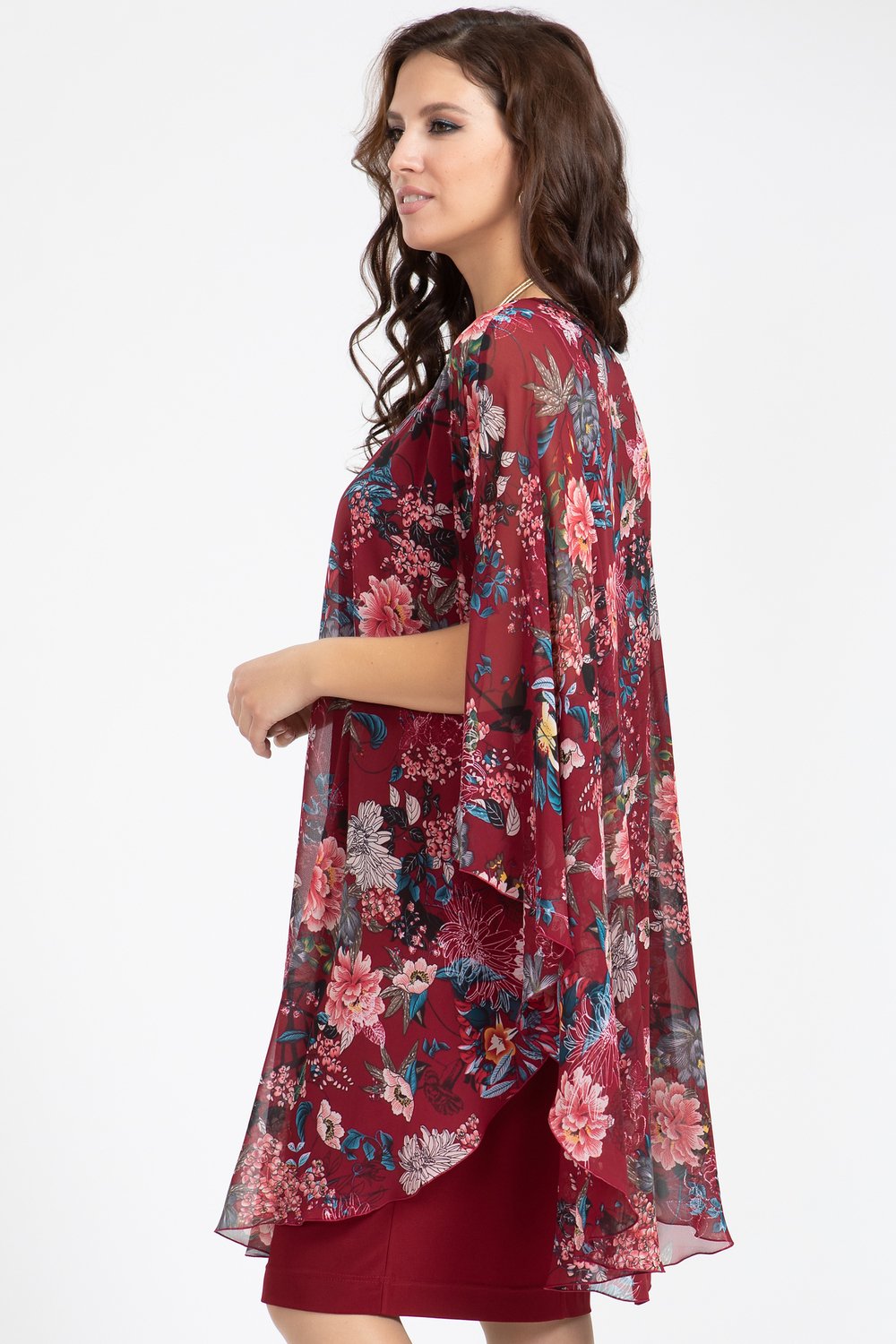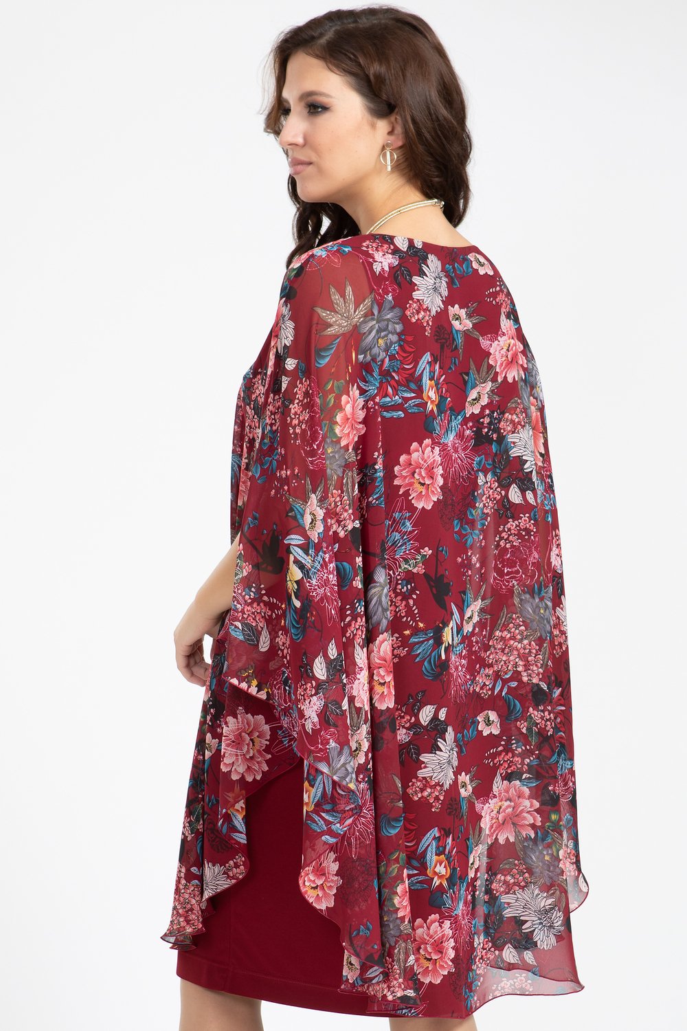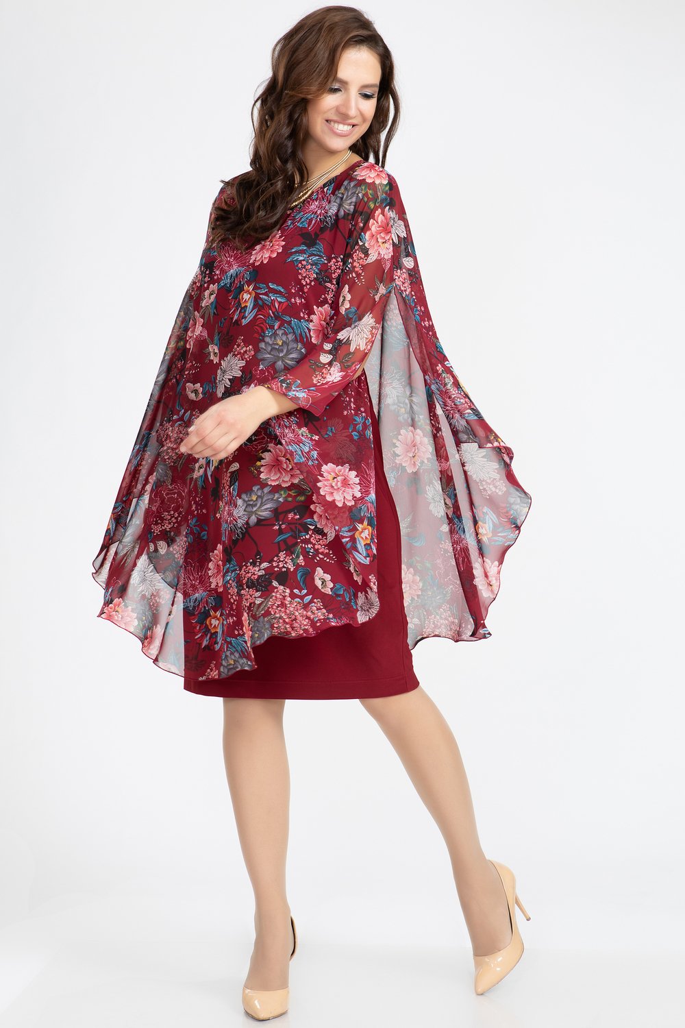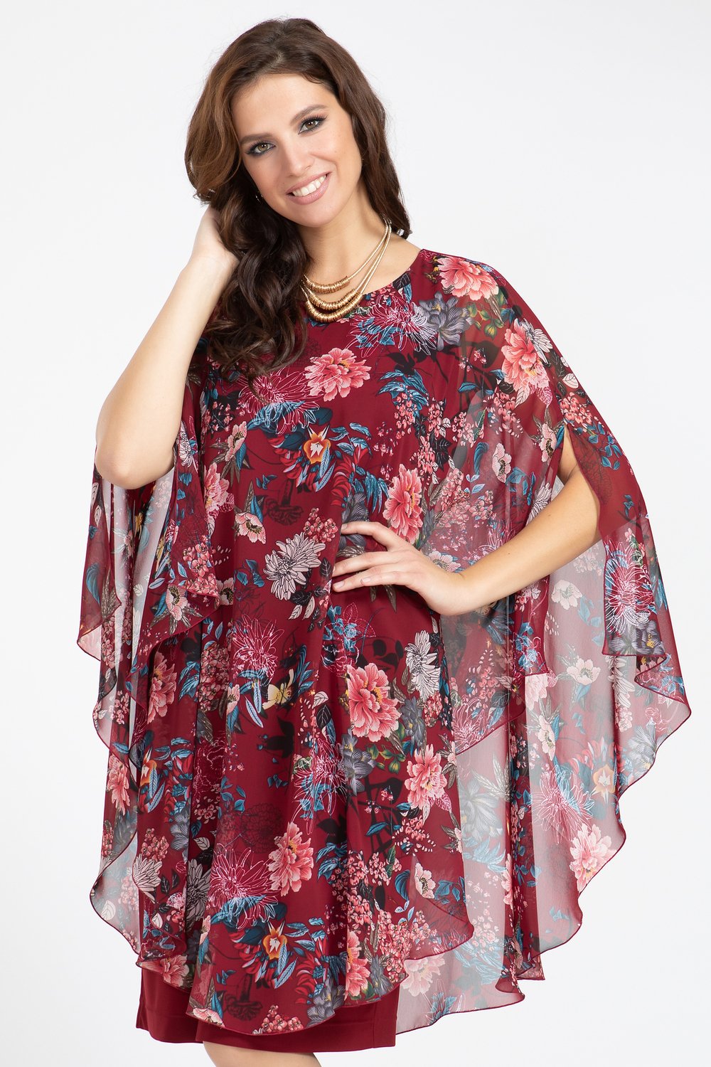 Платье из двух тканей. Пелерина переда и спинки расклешенная из шифона, нижнее платье прилегающего силуэта из масла. Горловина круглая.Характеристики: