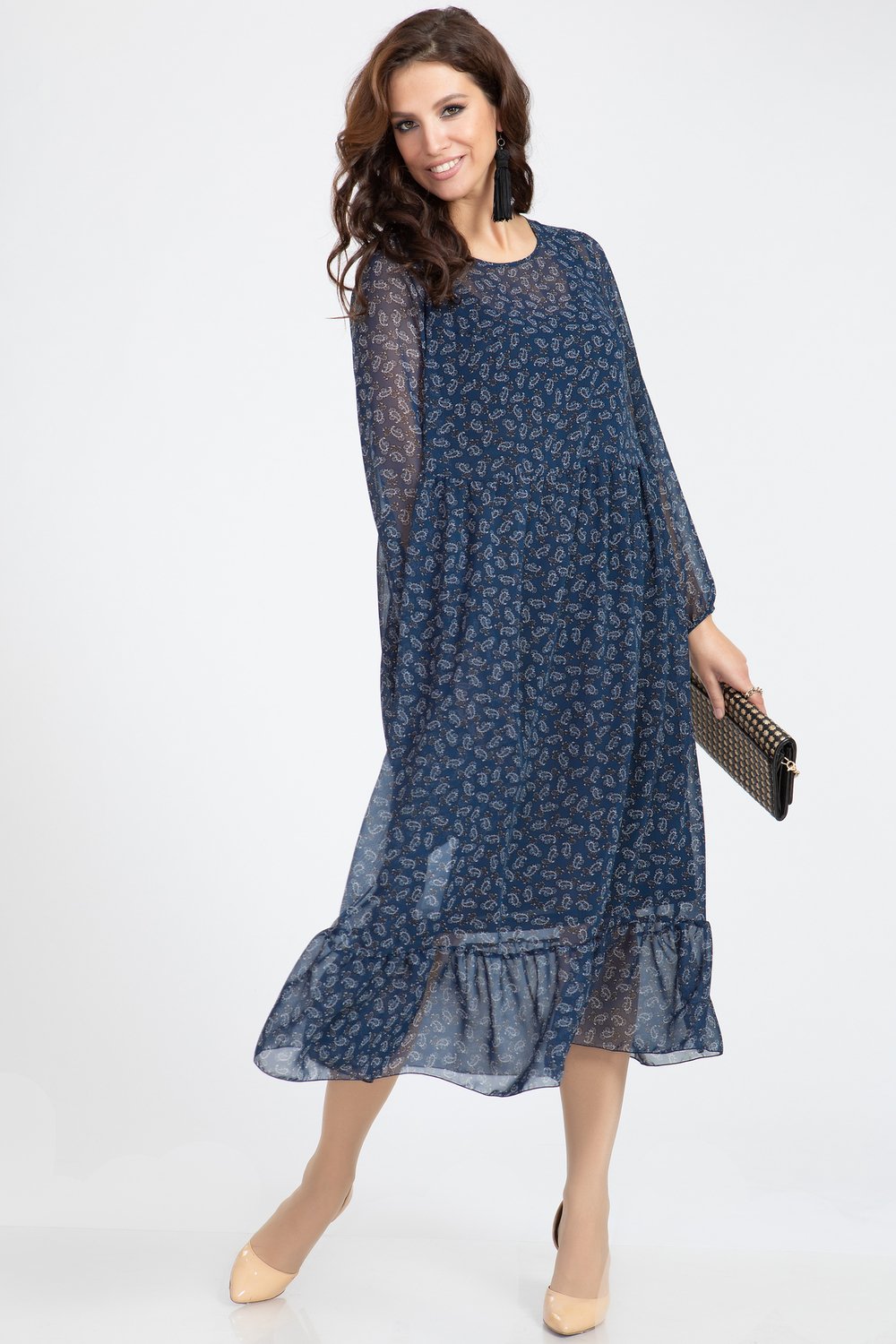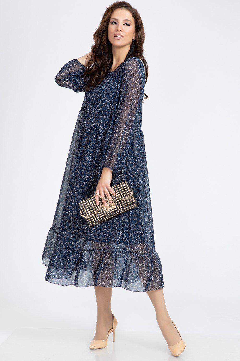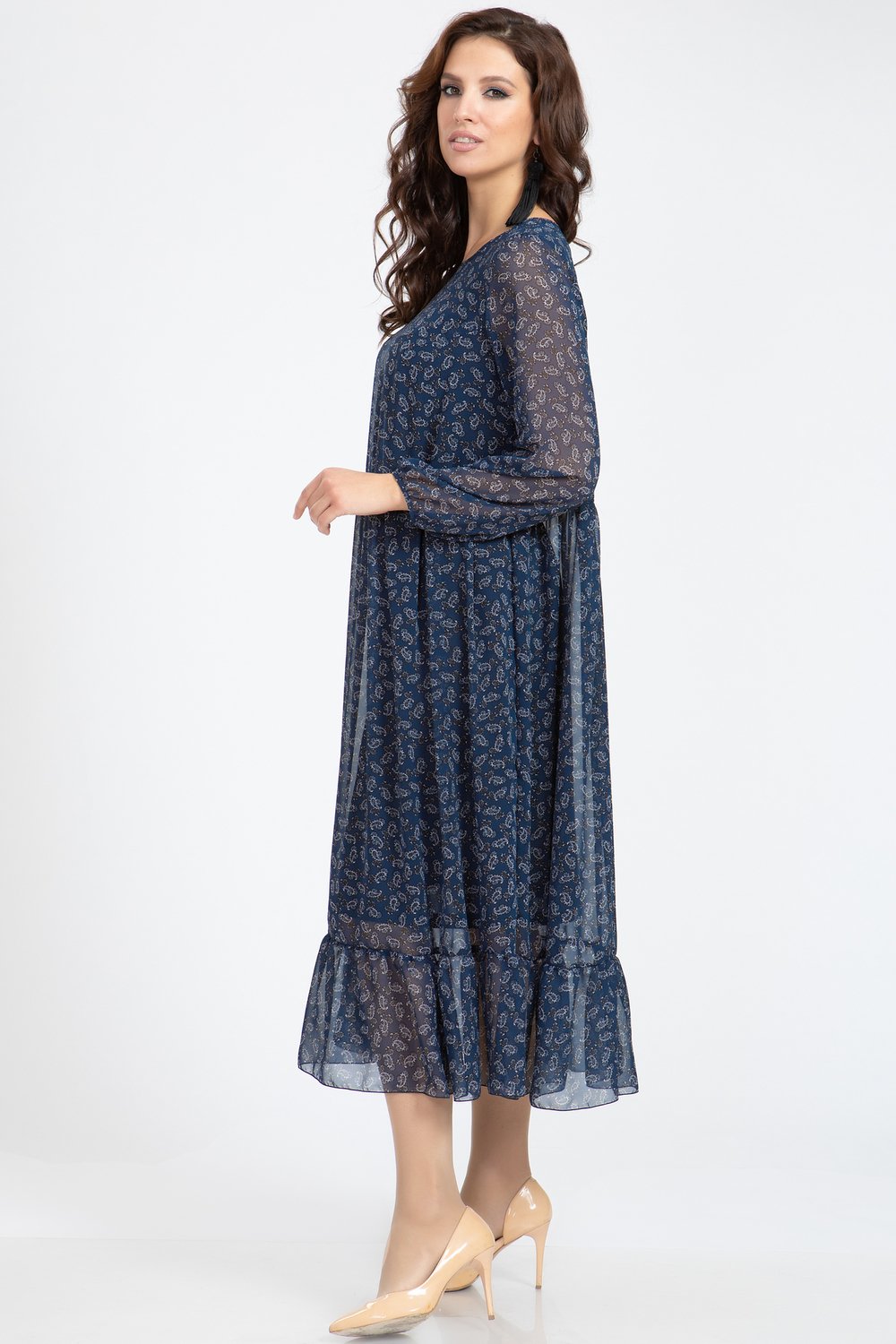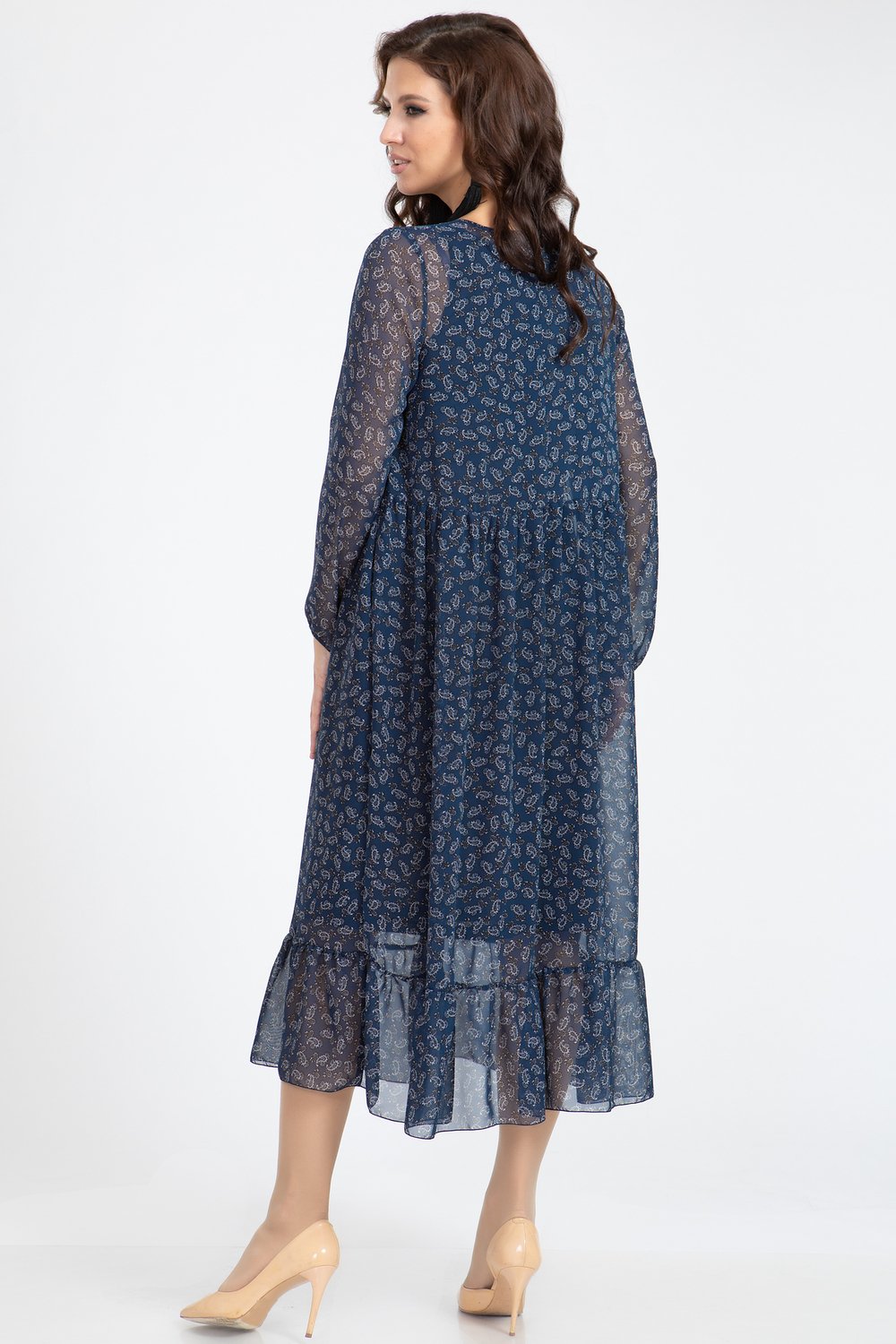 Платье трапециевидного силуэта, отрезное выше линии талии. По низу платья волан, собранный в сборку. Горловина круглая. Рукав втачной, длинный, присборенный по низу. К платью прилагается чехол из трикотажного подкладочного полотна.Характеристики:
