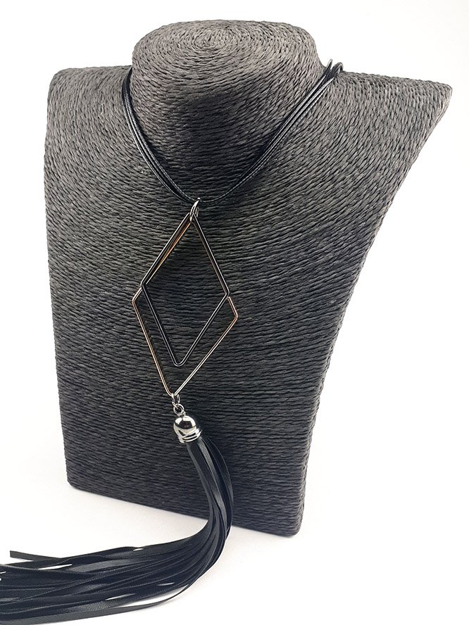 Ожерелье на нескольких ниток экокожи и подвеской из металла