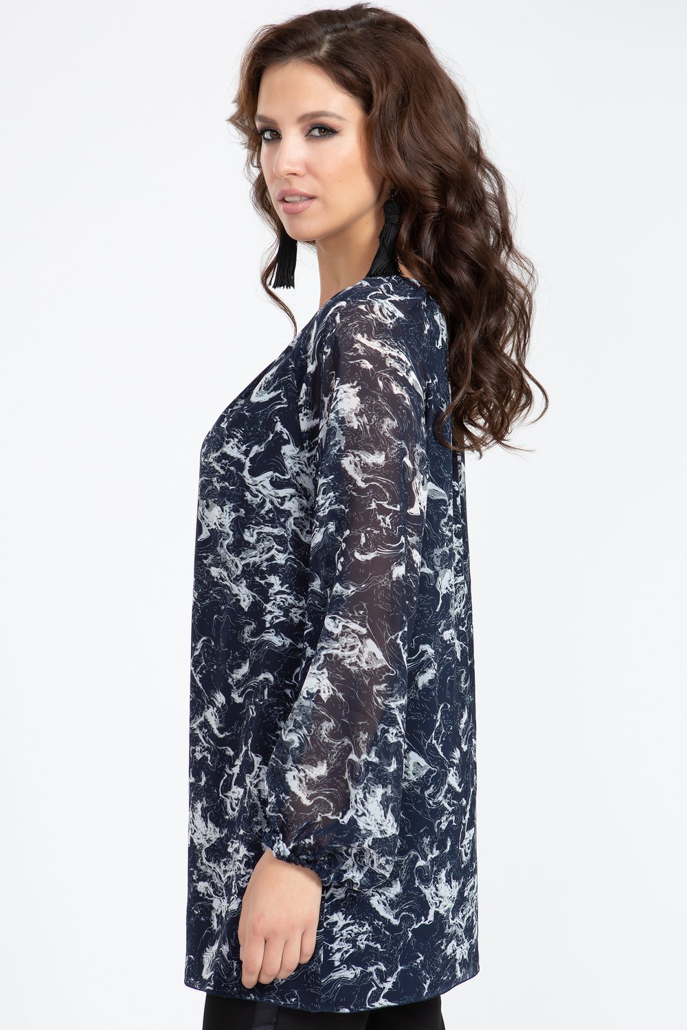 Блуза прямого силуэта. Рукав реглан, длинный, по низу на эластичной тесьме. Горловина круглая, по переду и спинке собрана в сборку. Впереди "капелька". Блуза на подкладке, перед и спинка. Блуза выполнена из мягчайшего высококачественного шифона, по своим свойставам приближенного к натуральному шелку. Универсальная длина, прекрасно подойдет как к юбке, так и к брюкам.