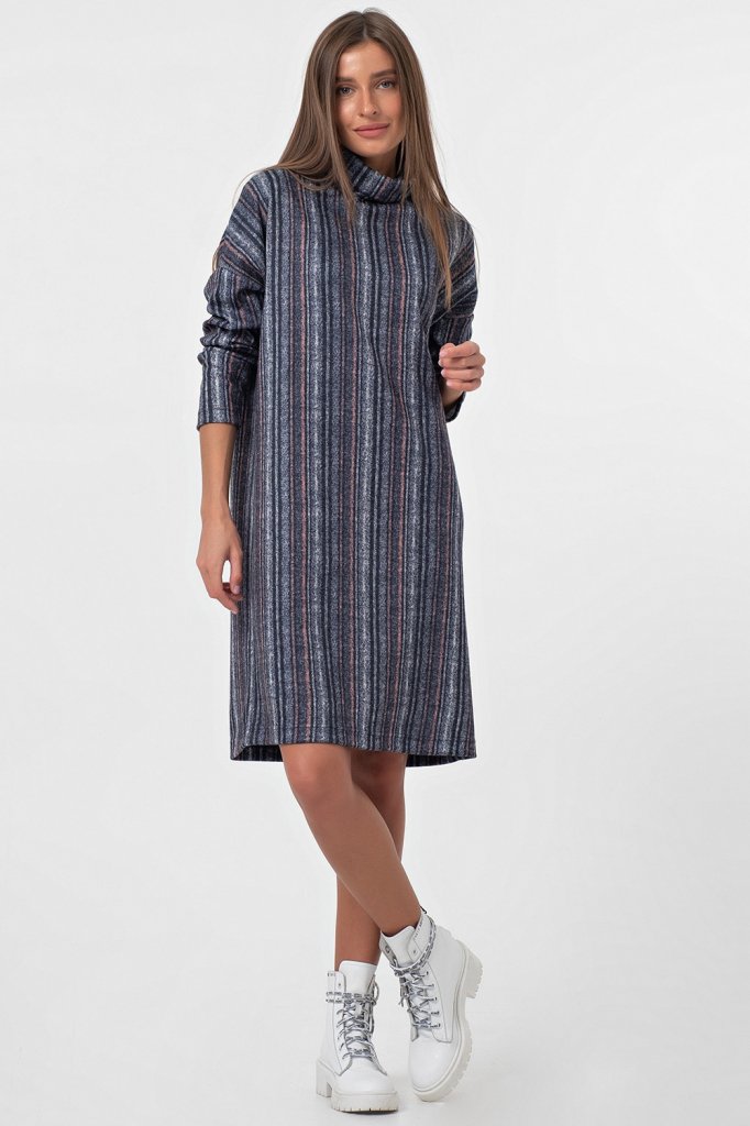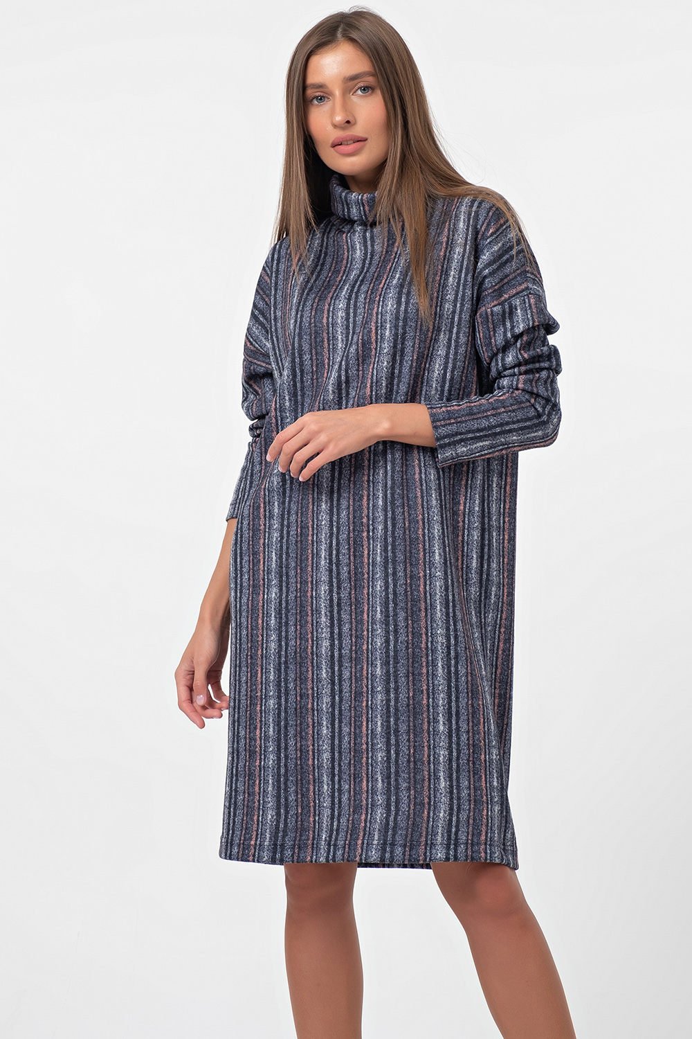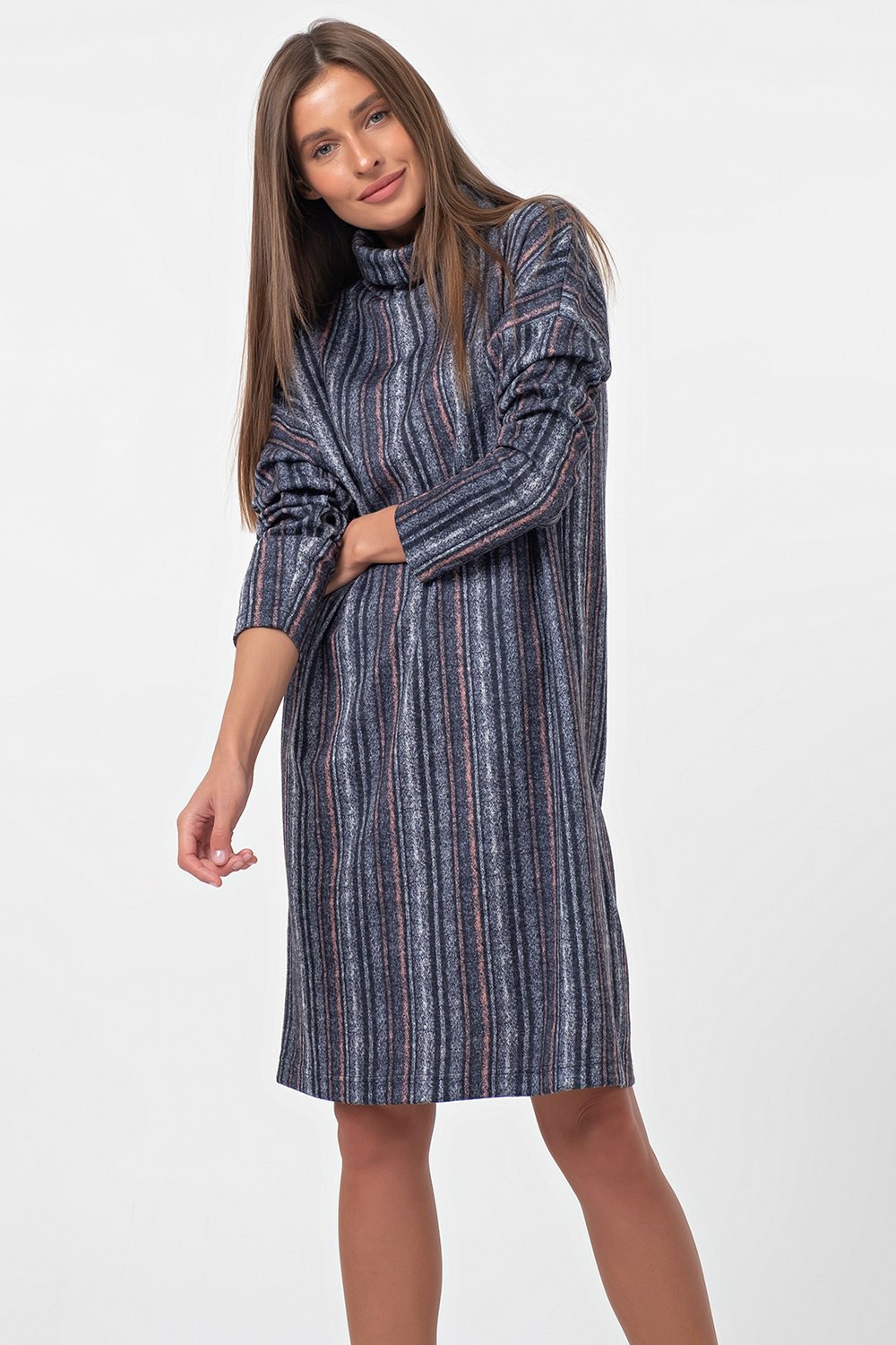 • Особенности: Платье силуэта оверсайз из плотного трикотажа. Детали: спущенная пройма высокий воротник-стойка. Без застежки.