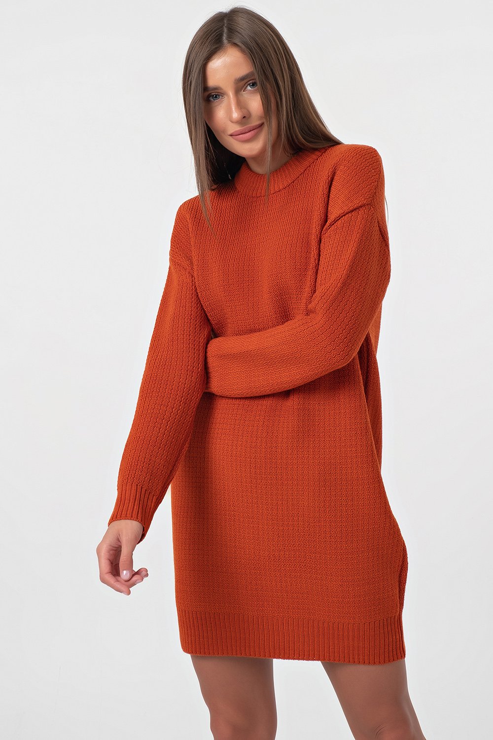 • Особенности: Вязаное платье свободного силуэта выполнено из плотной смесовой пряжи фактурным способом.