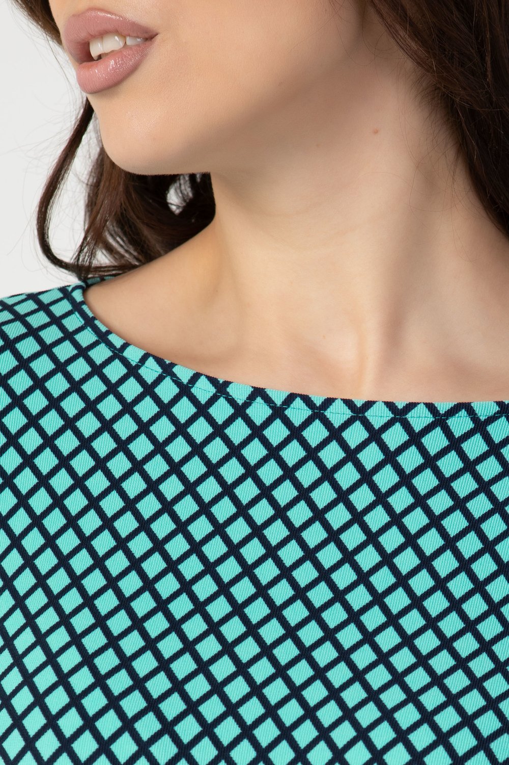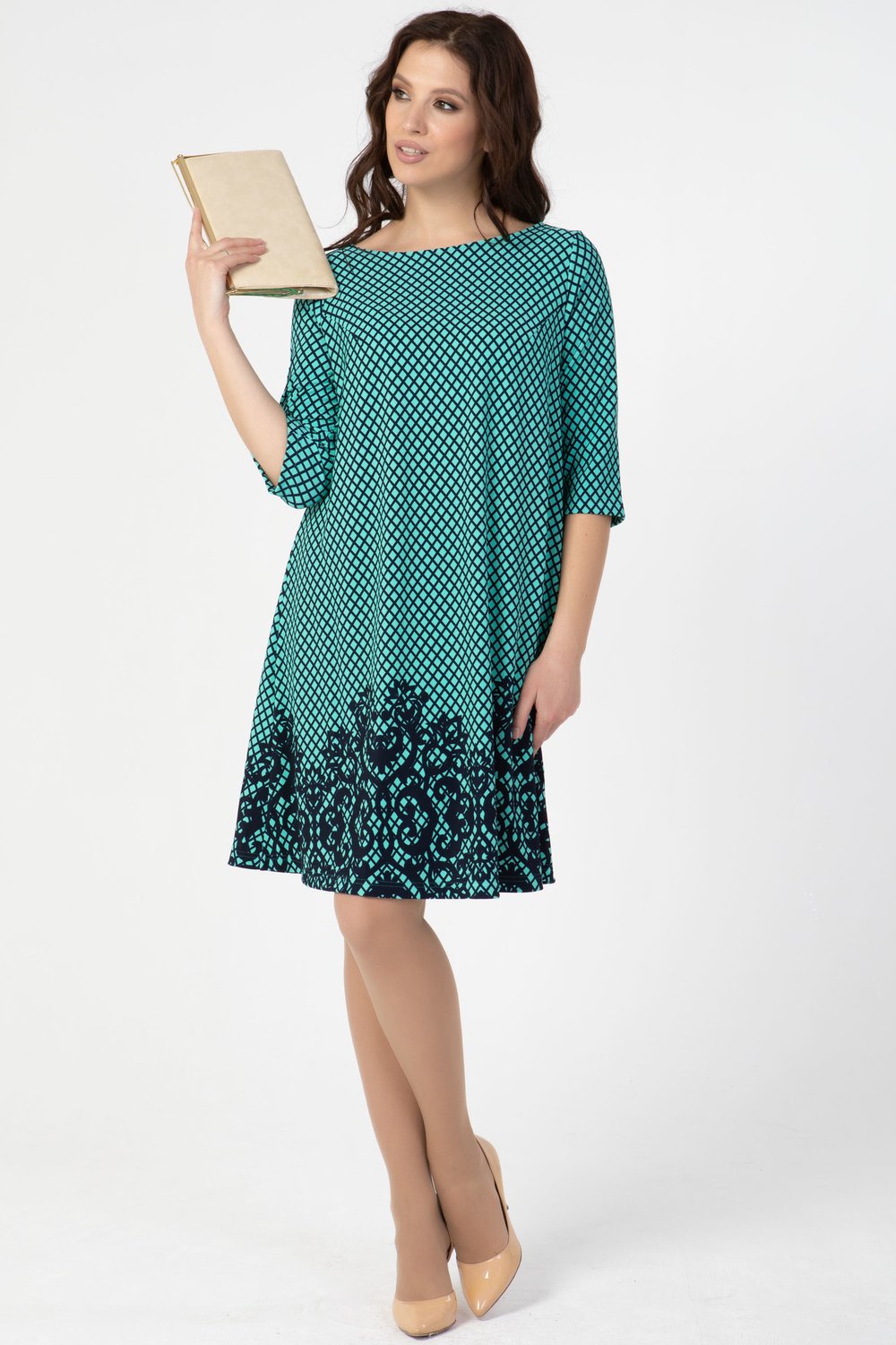 Платье А-образного силуэта, с карманами в боковых швах. Рукав втачной, 3/4. Горловина круглая.Характеристики: