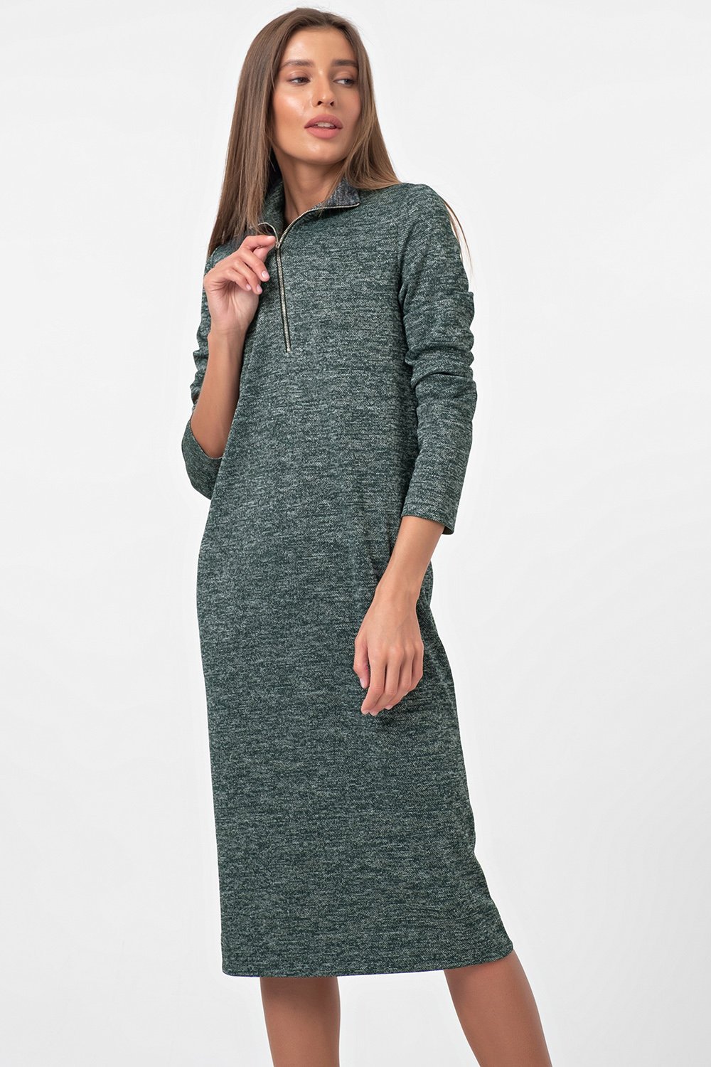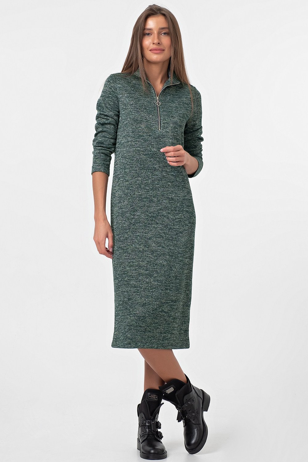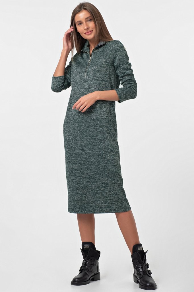 • Особенности: Платье прямого силуэта из плотного трикотажа. Детали: воротник-стойка, втачной прямой рукав, застежка на декоративную молнию по переду.