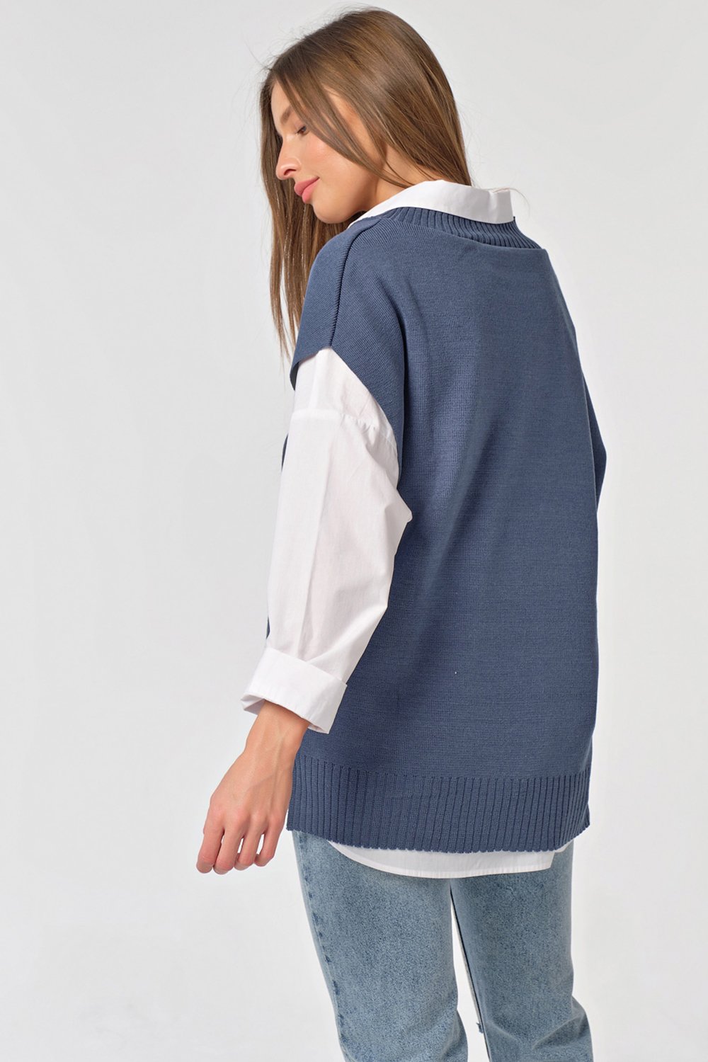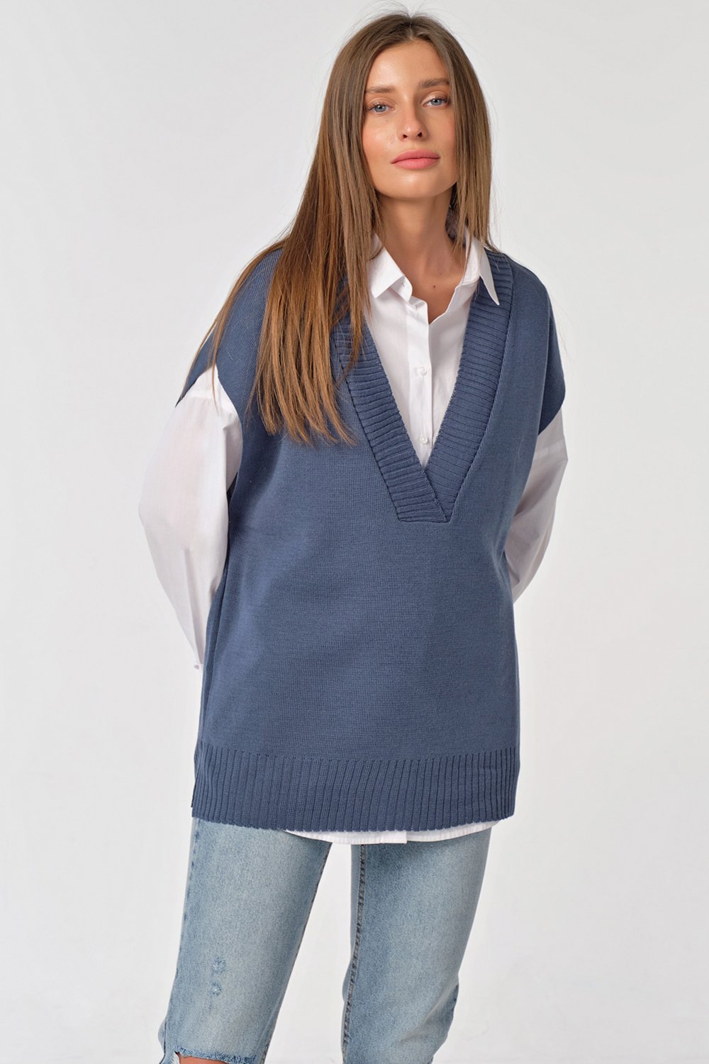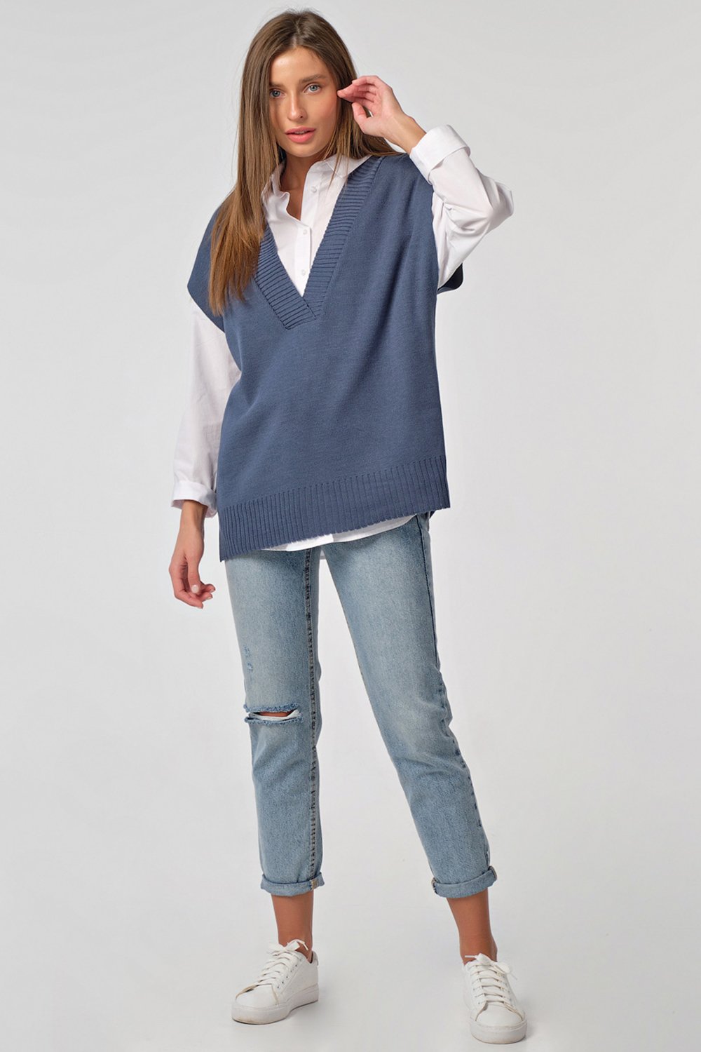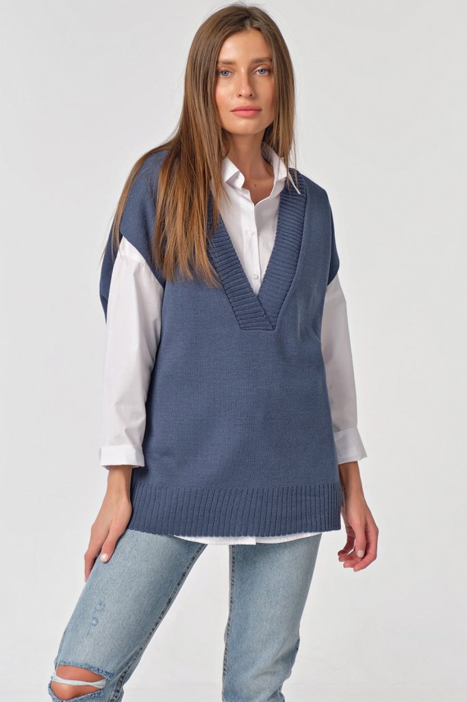 •Особенности: По бокам выполнены разрезы, низ изделия и горловина оформлен резинкой в рубчик.