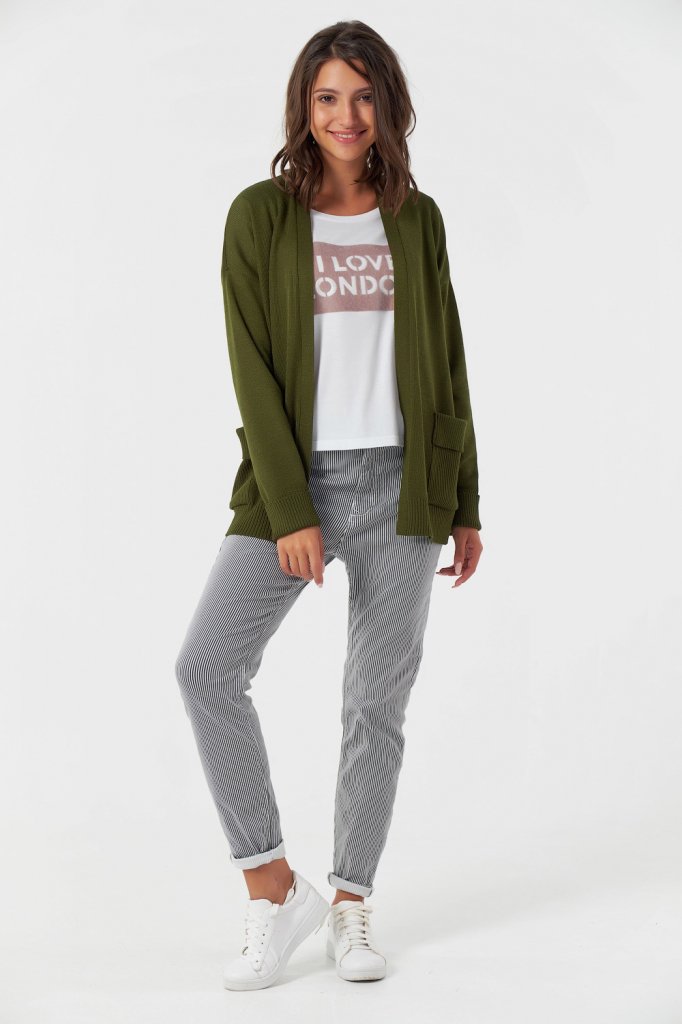 • Особенности: Перед обработан узкой бейкой. Карманы низ изделия и рукава оформлены резинкой.