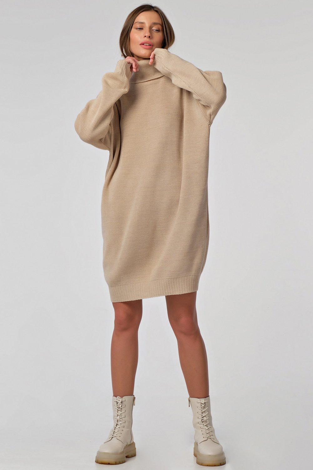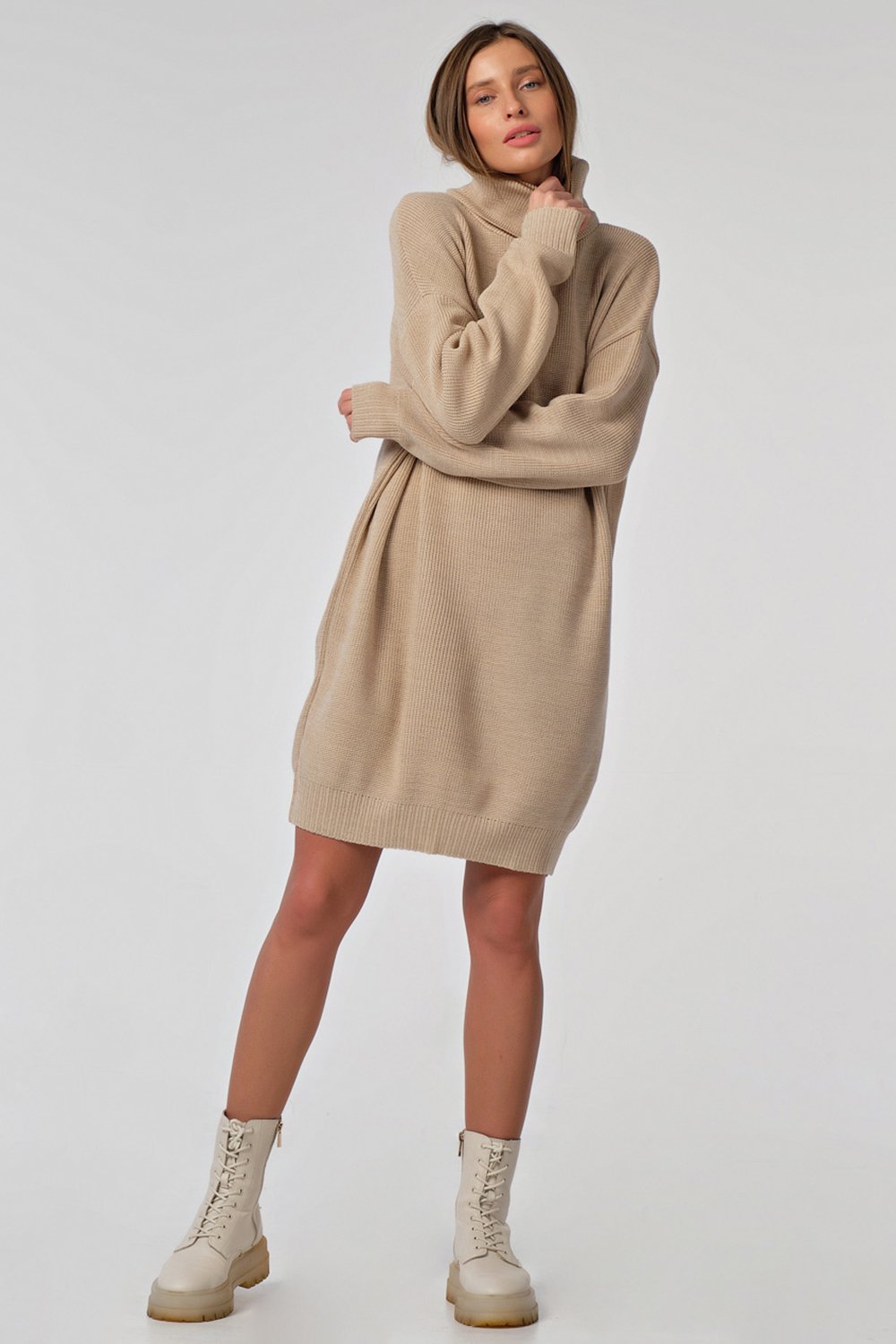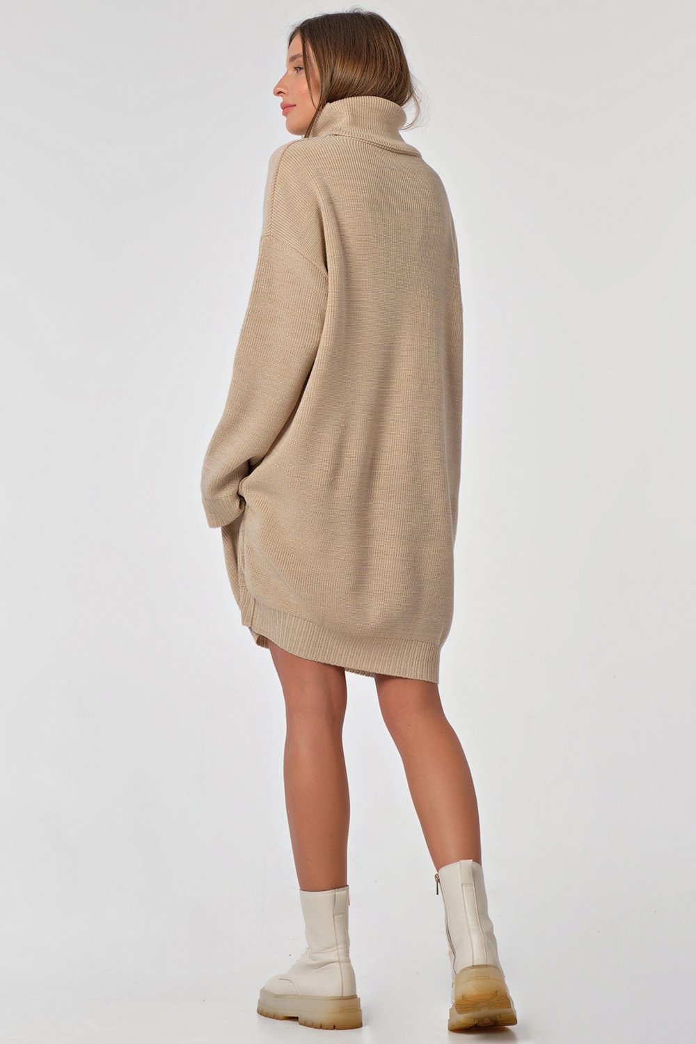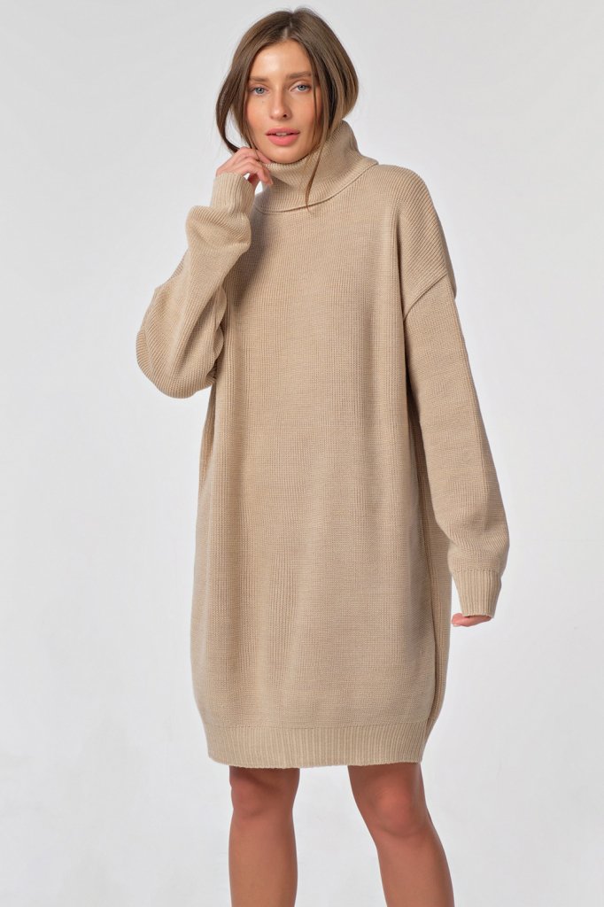 • Особенности: Вязаное платье выполнено из смесовой пряжи фактурным мягким способом, свободного силуэта. Рукава, перед, спинка оформлены широкой резинкой.