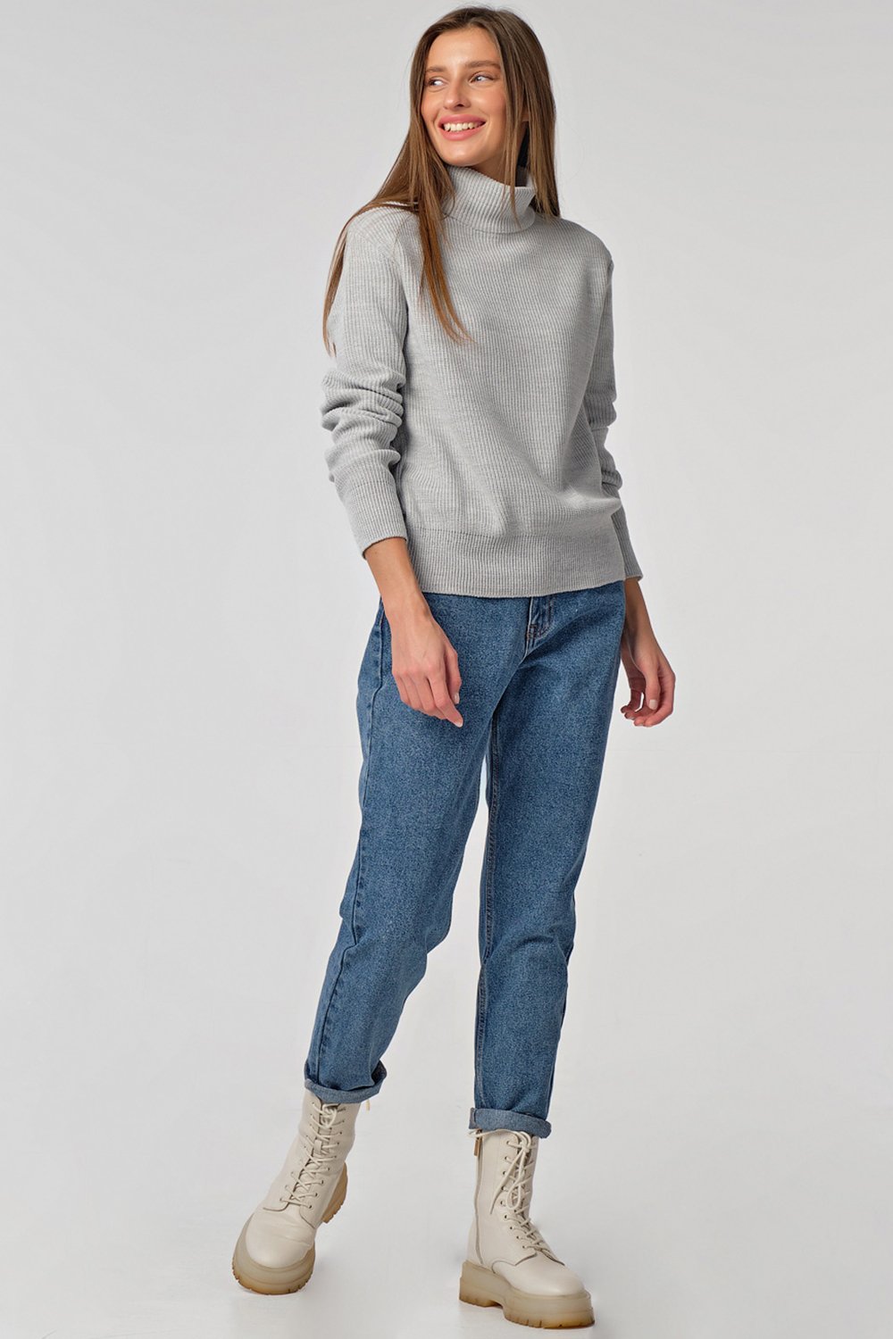 • Особенности: Джемпер выполнен из пряжи с хлопком фактурным способом. Низ изделия, рукава, воротник оформлены резинкой в рубчик.