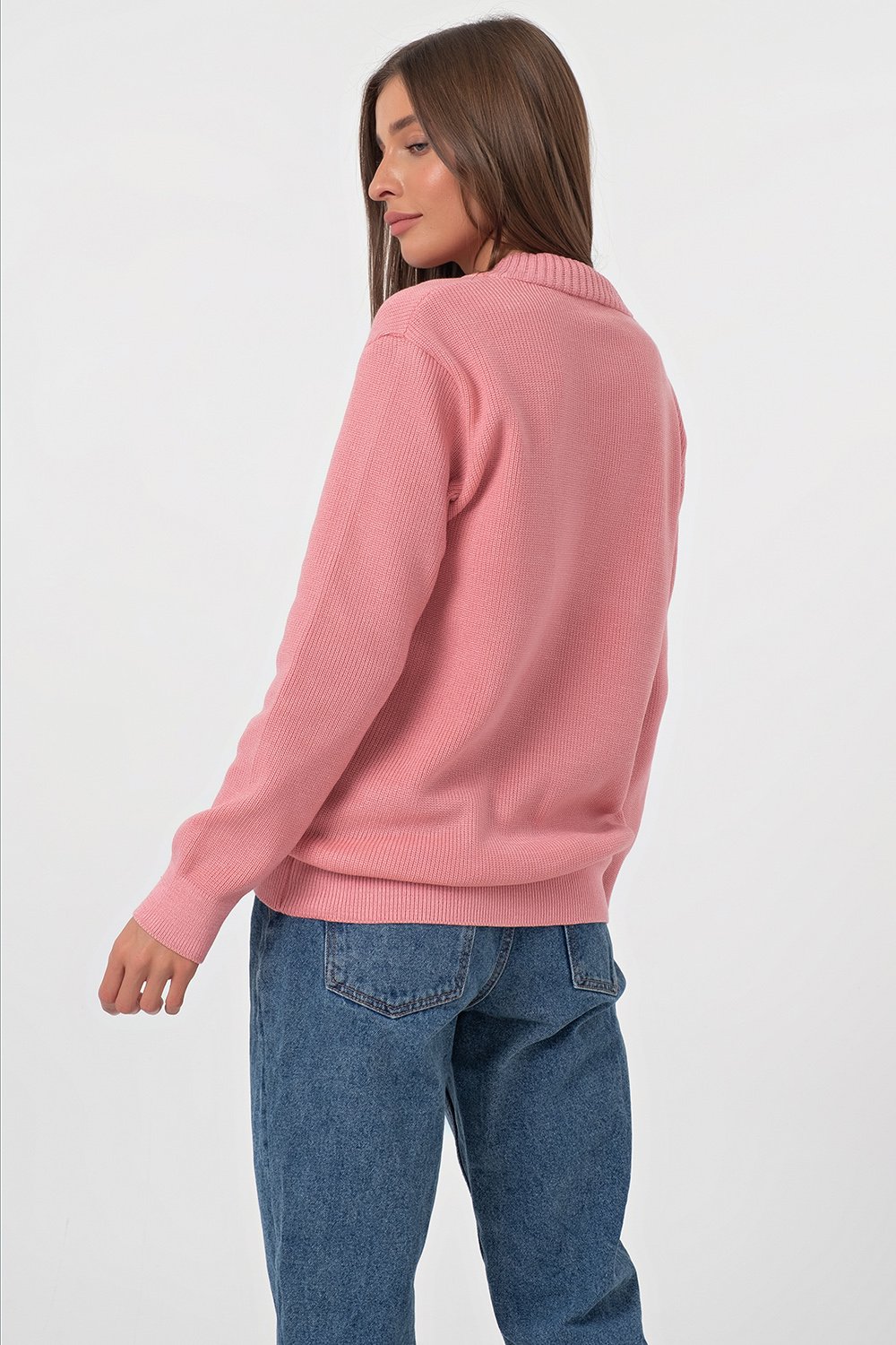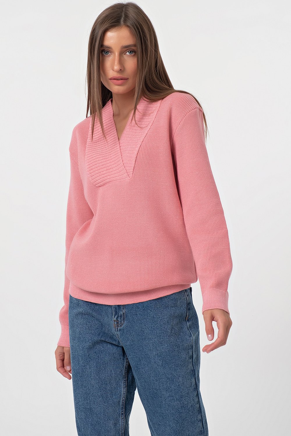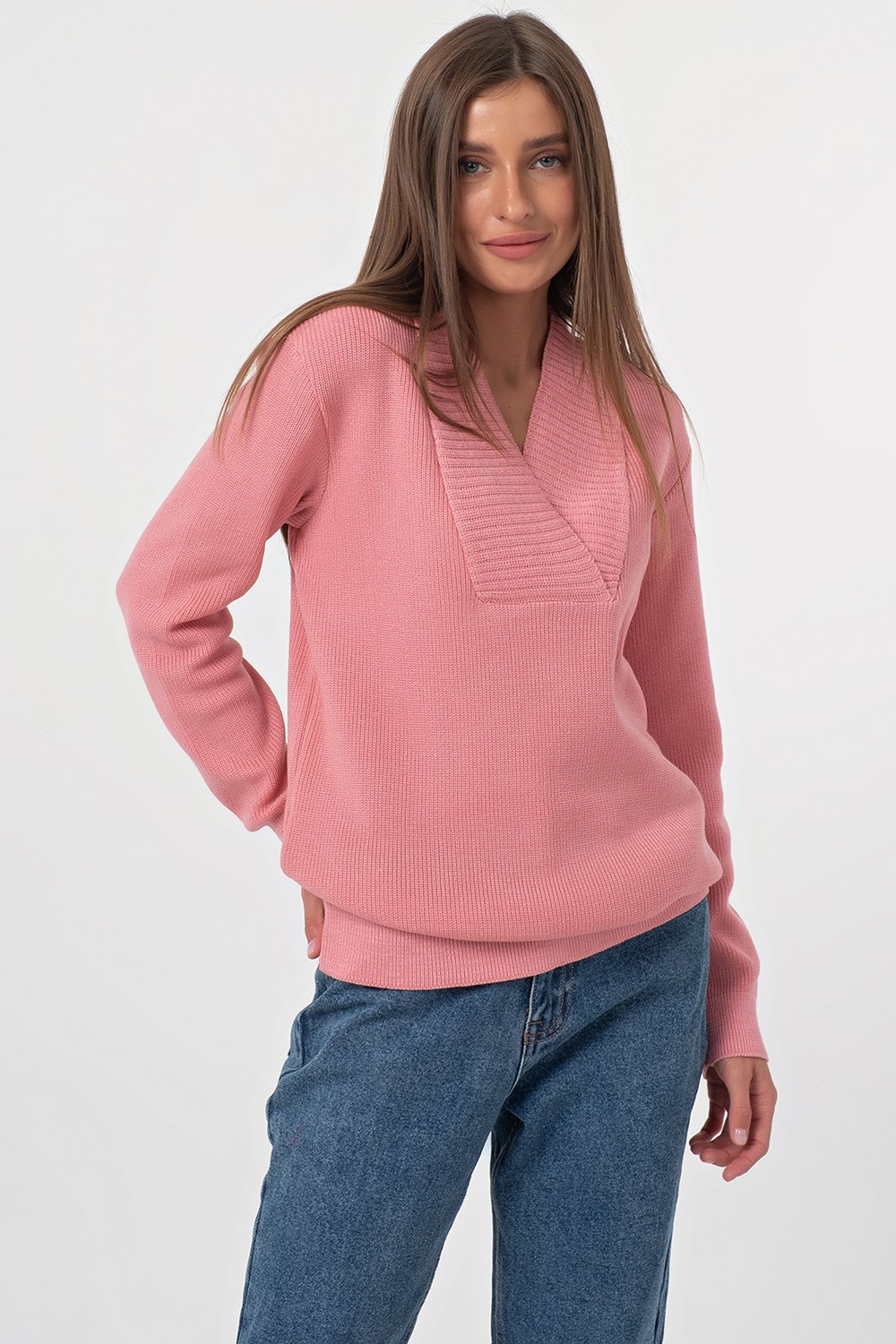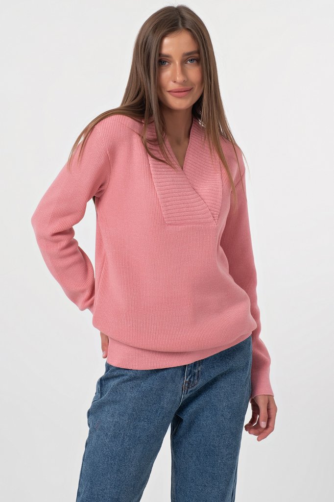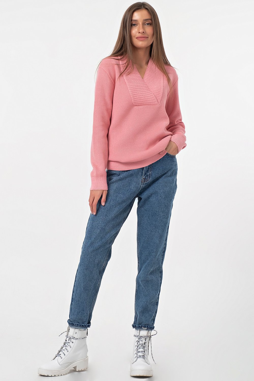 • Особенности: Джемпер из смесовой пряжи с хлопком. Вырез горловины и низ изделия оформлены резинкой. Рукав со спущенной проймой и цельновязаной манжетой.