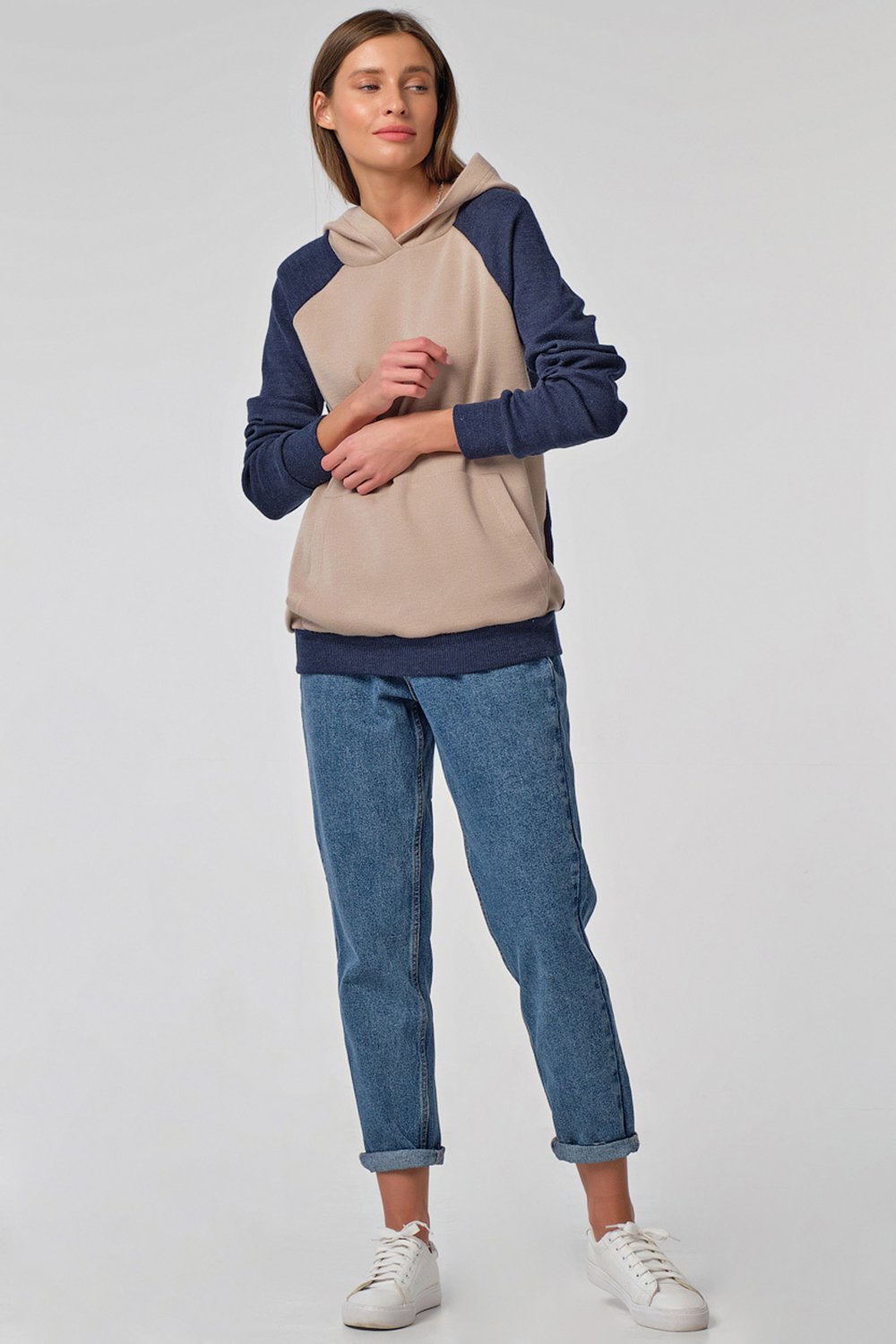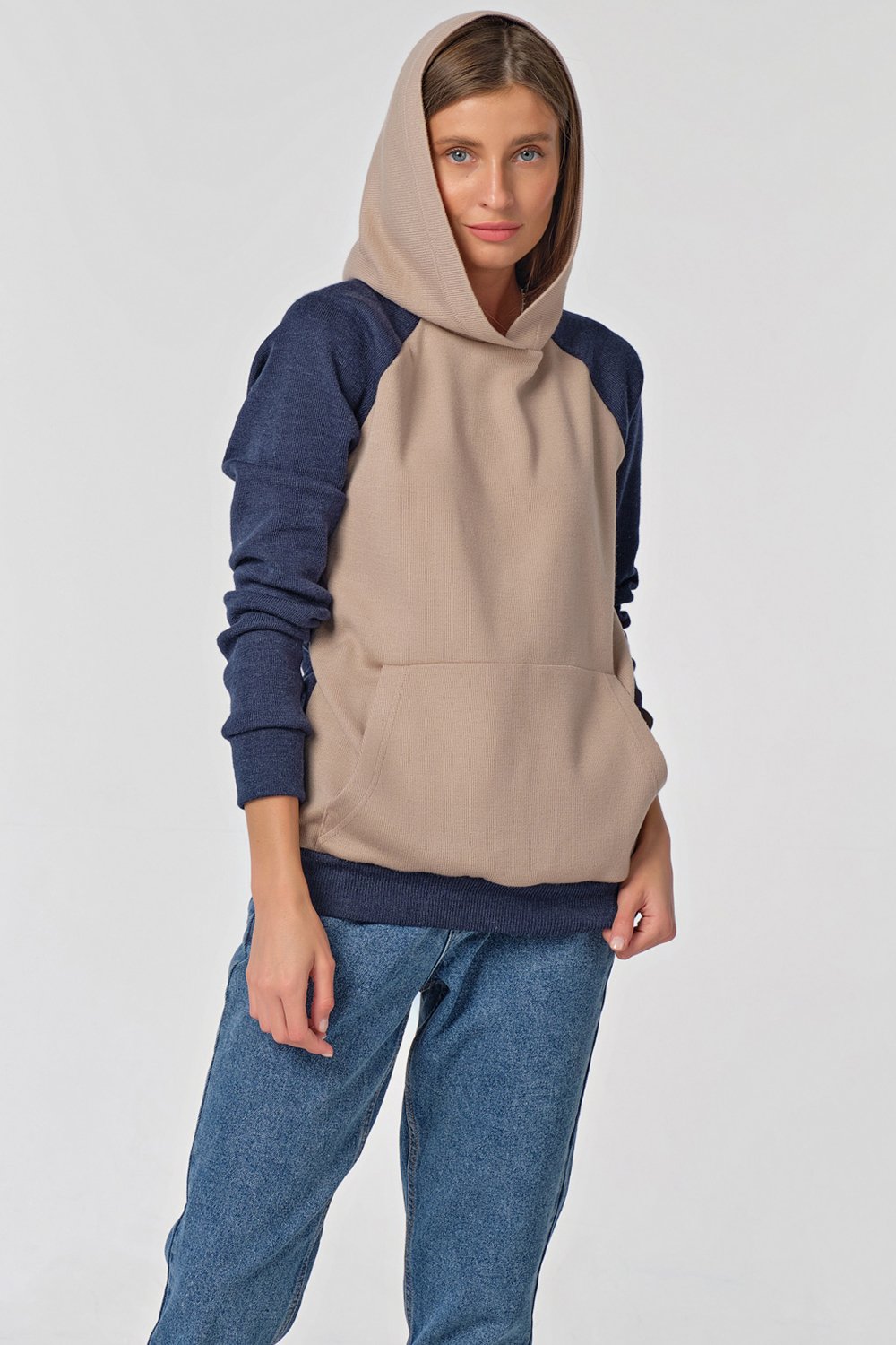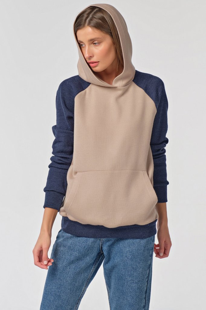 • Особенности: Вязаный джемпер с капюшоном из полушерстяной пряжи. По переду выполнен карман кенгуру.