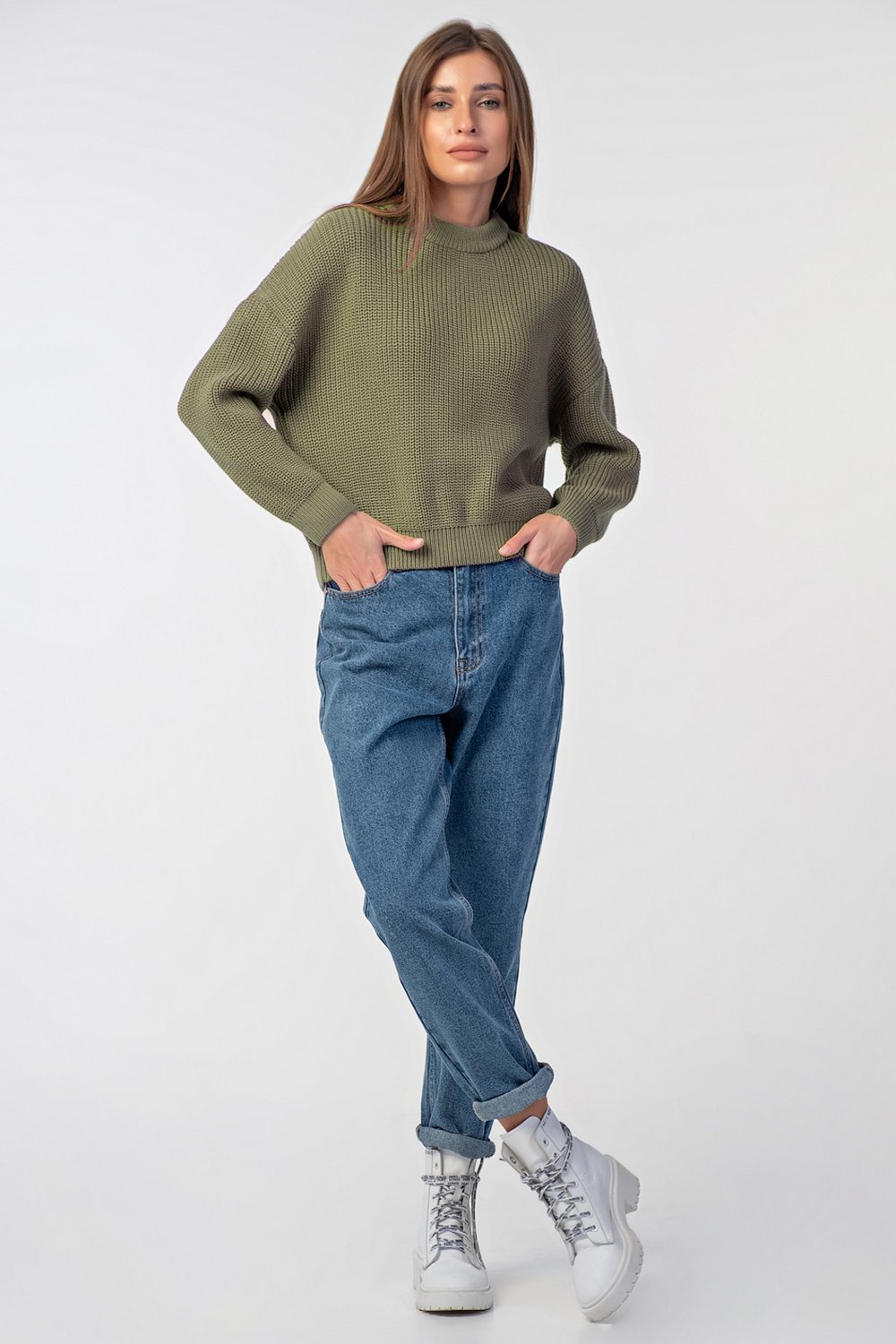 • Силуэт: укороченный джемпер свободного мягкого силуэта в стиле "oversize"