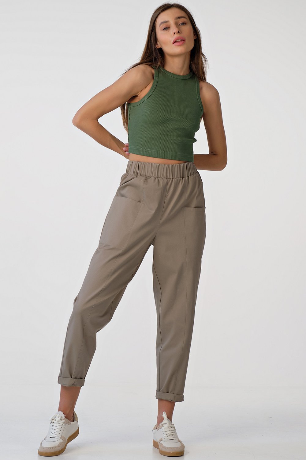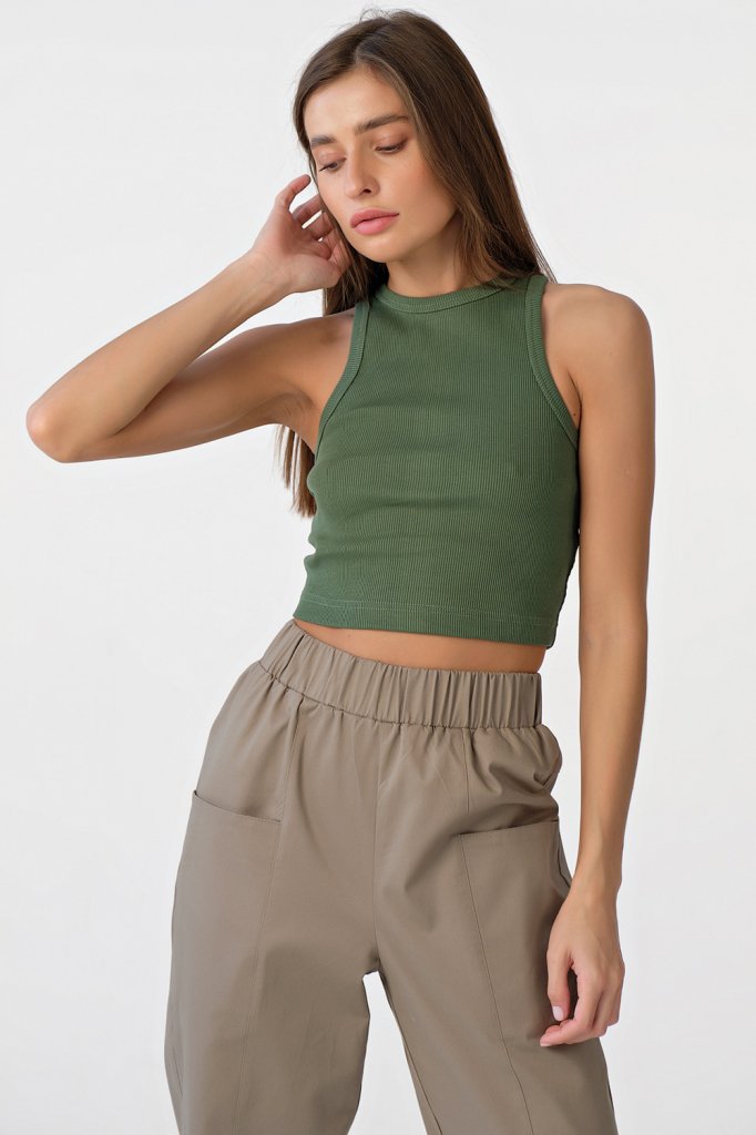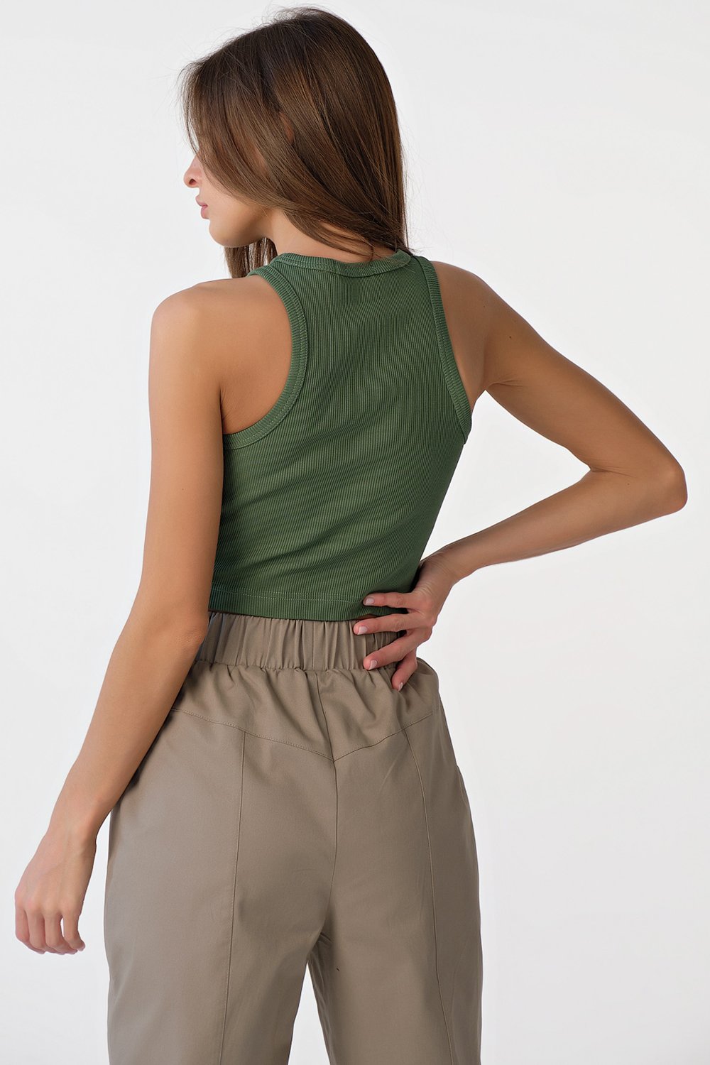 • Особенности: Укороченный топ из кашкорсе. Детали: завышенная пройма проймы и горловина обработаны окантовкой. Без застежки.