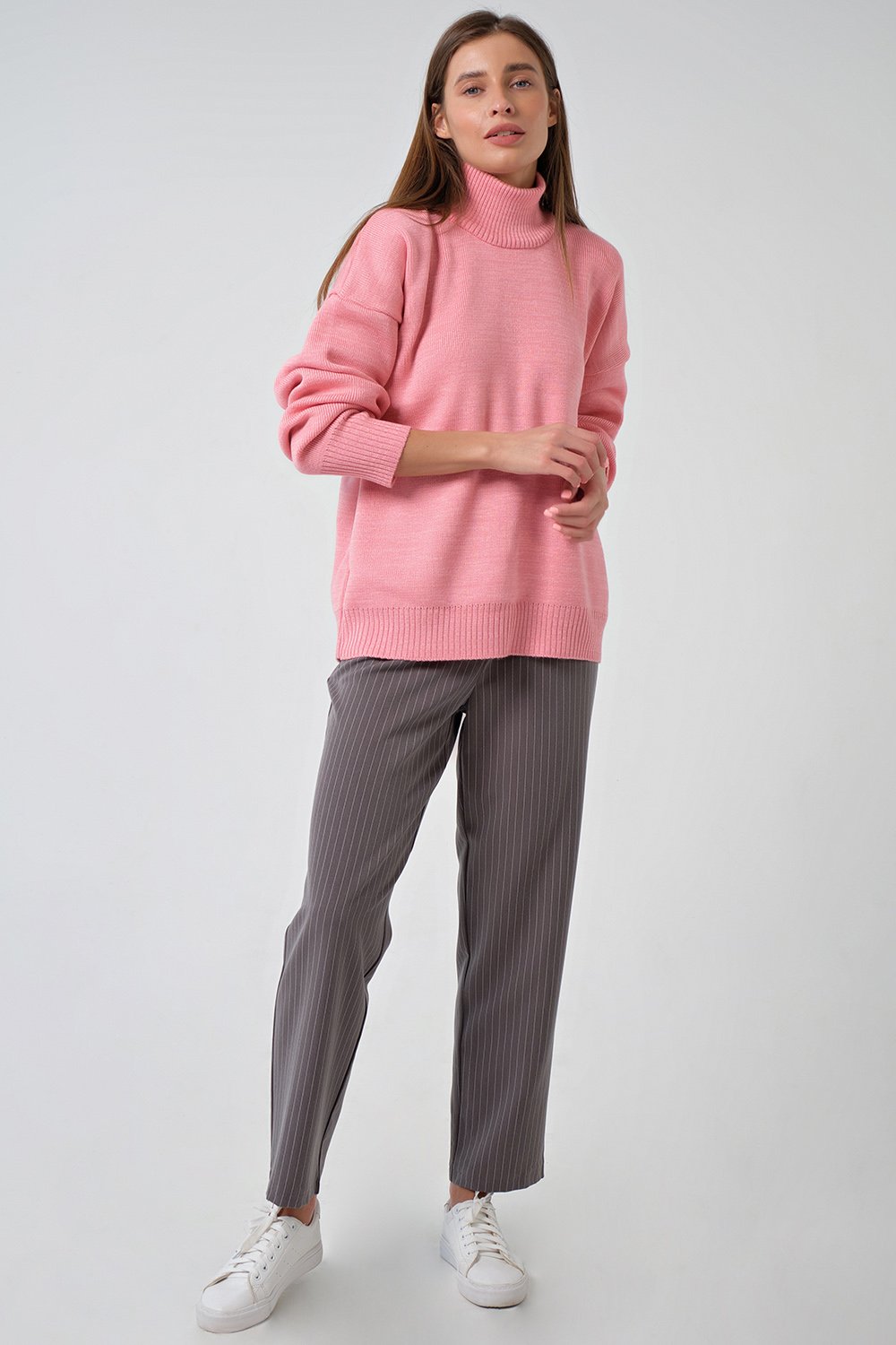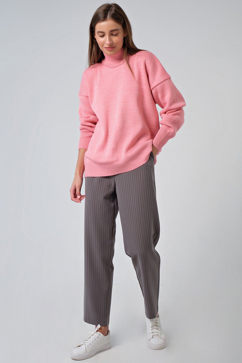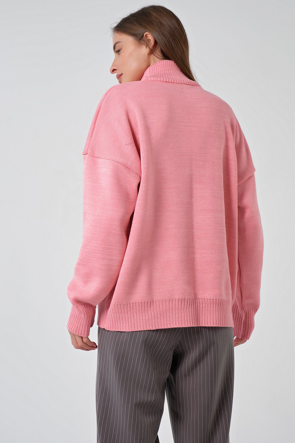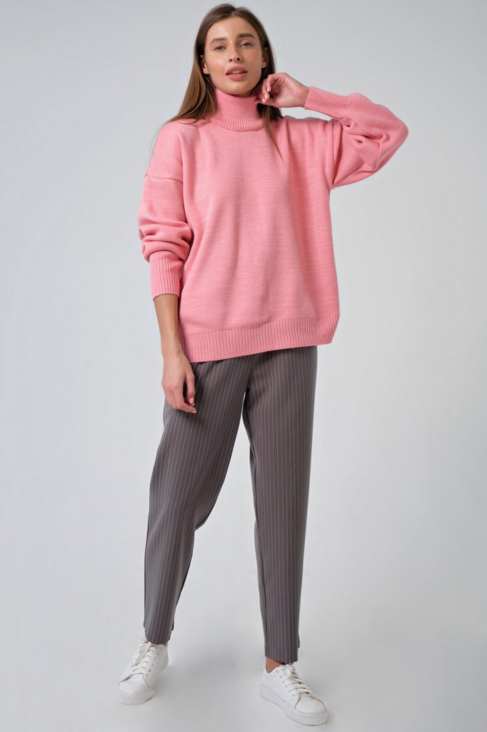 • Особенности: Объемный плотный полушерстяной свитер. Воротник, низ изделия и низ рукавов выполнены резинкой в рубчик.