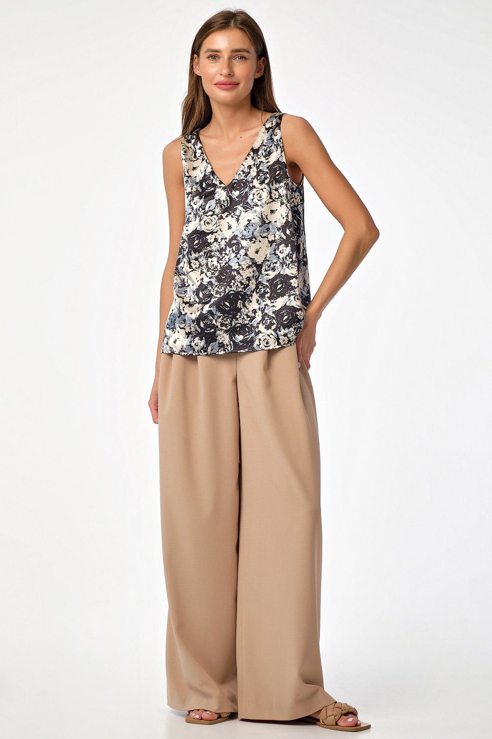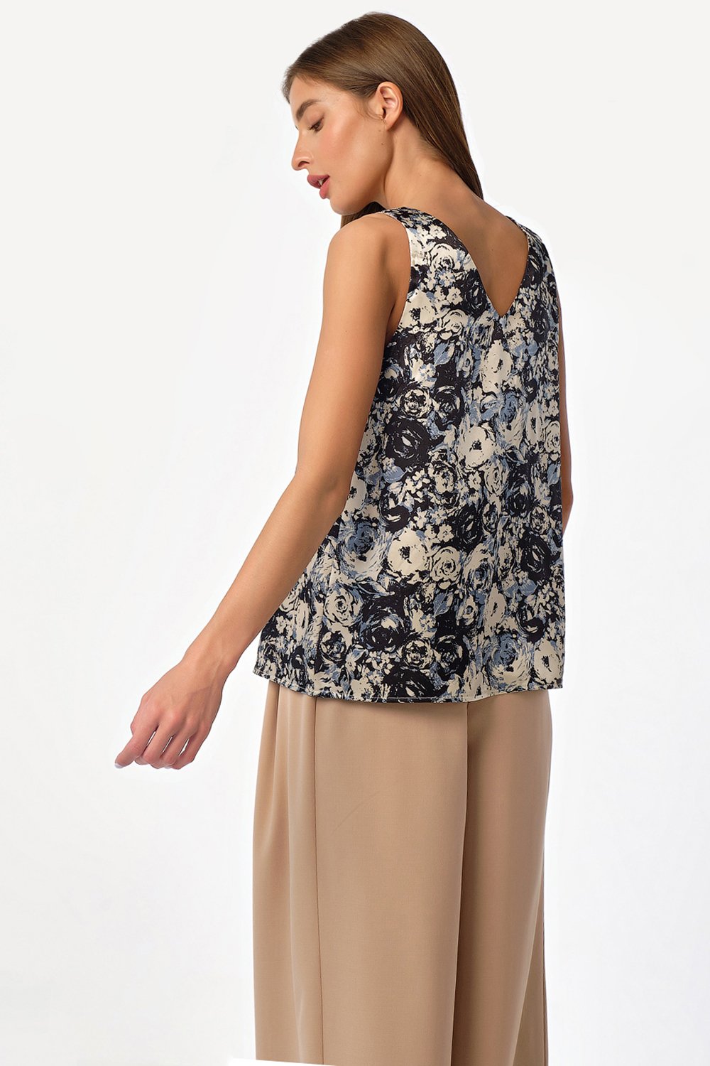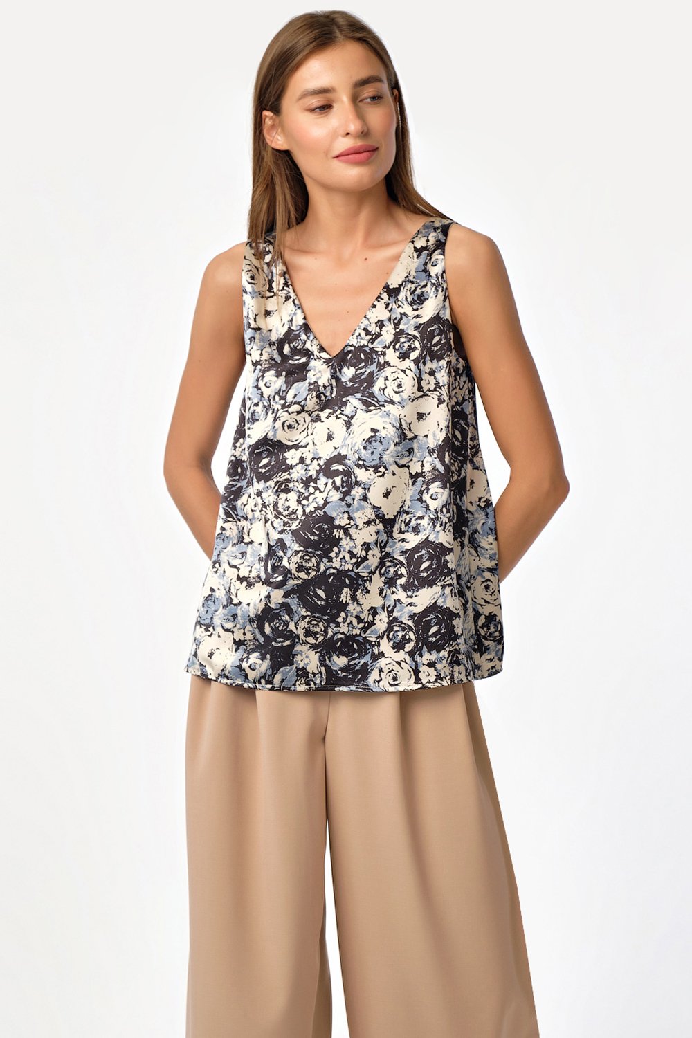 • Особенности: Топ свободного силуэта из атласной ткани на подкладке. Детали: глубокий V-образный вырез по переду и спинке.