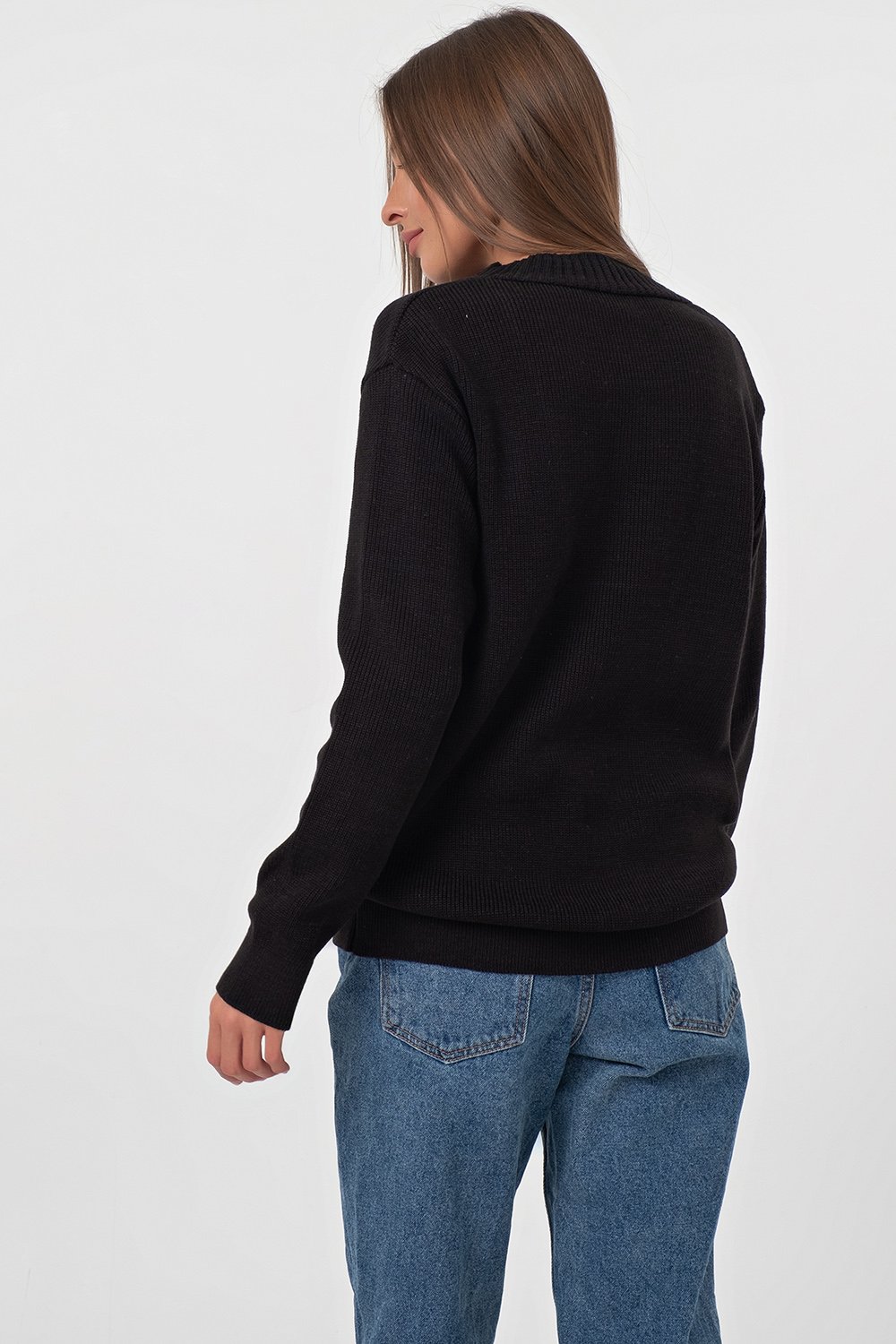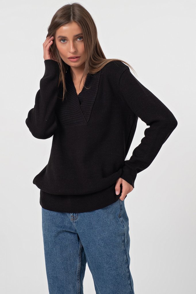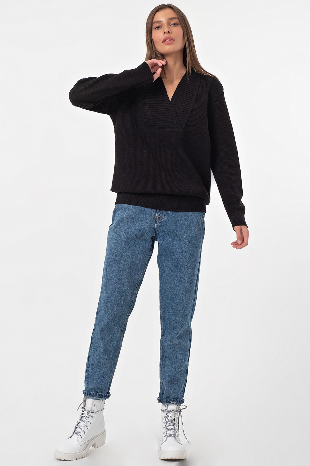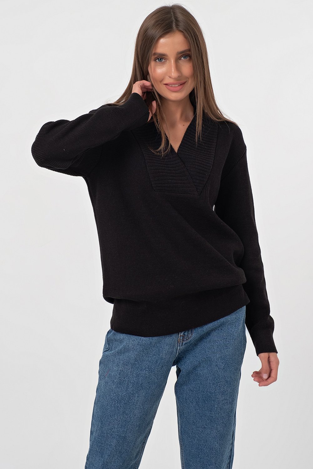 • Особенности: Джемпер из смесовой пряжи с хлопком. Вырез горловины и низ изделия оформлены резинкой. Рукав со спущенной проймой и цельновязаной манжетой.