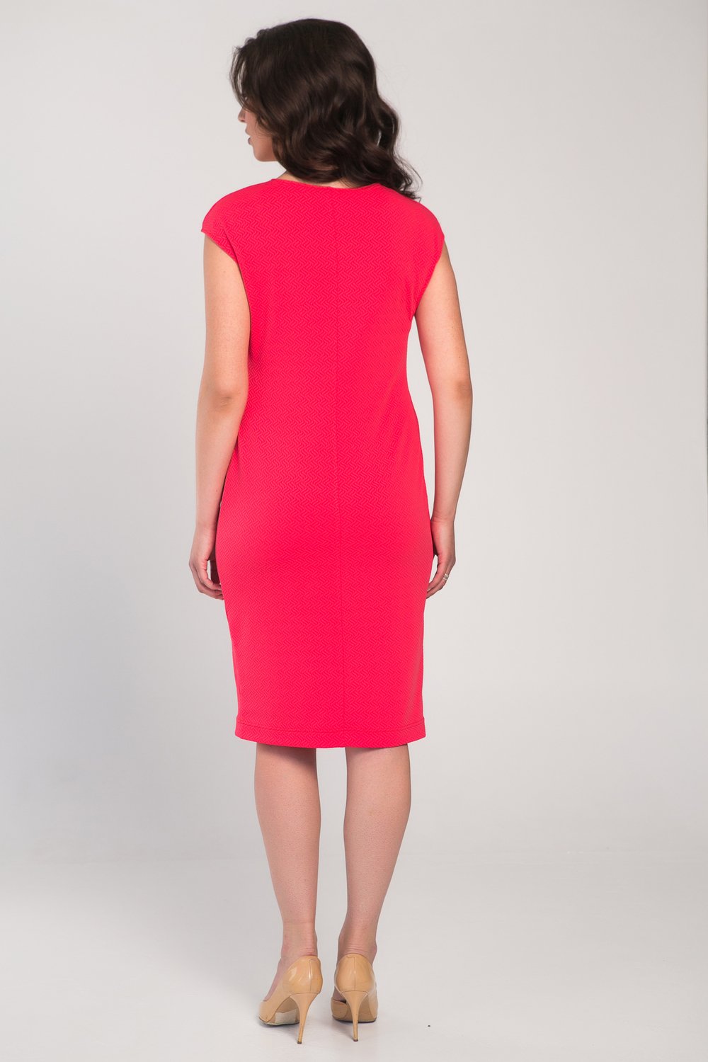 Платье полуприлегающего силуэта. Спинка со средним швом, перед с нагрудными вытачками. Горловина круглая, плечо спущенное.