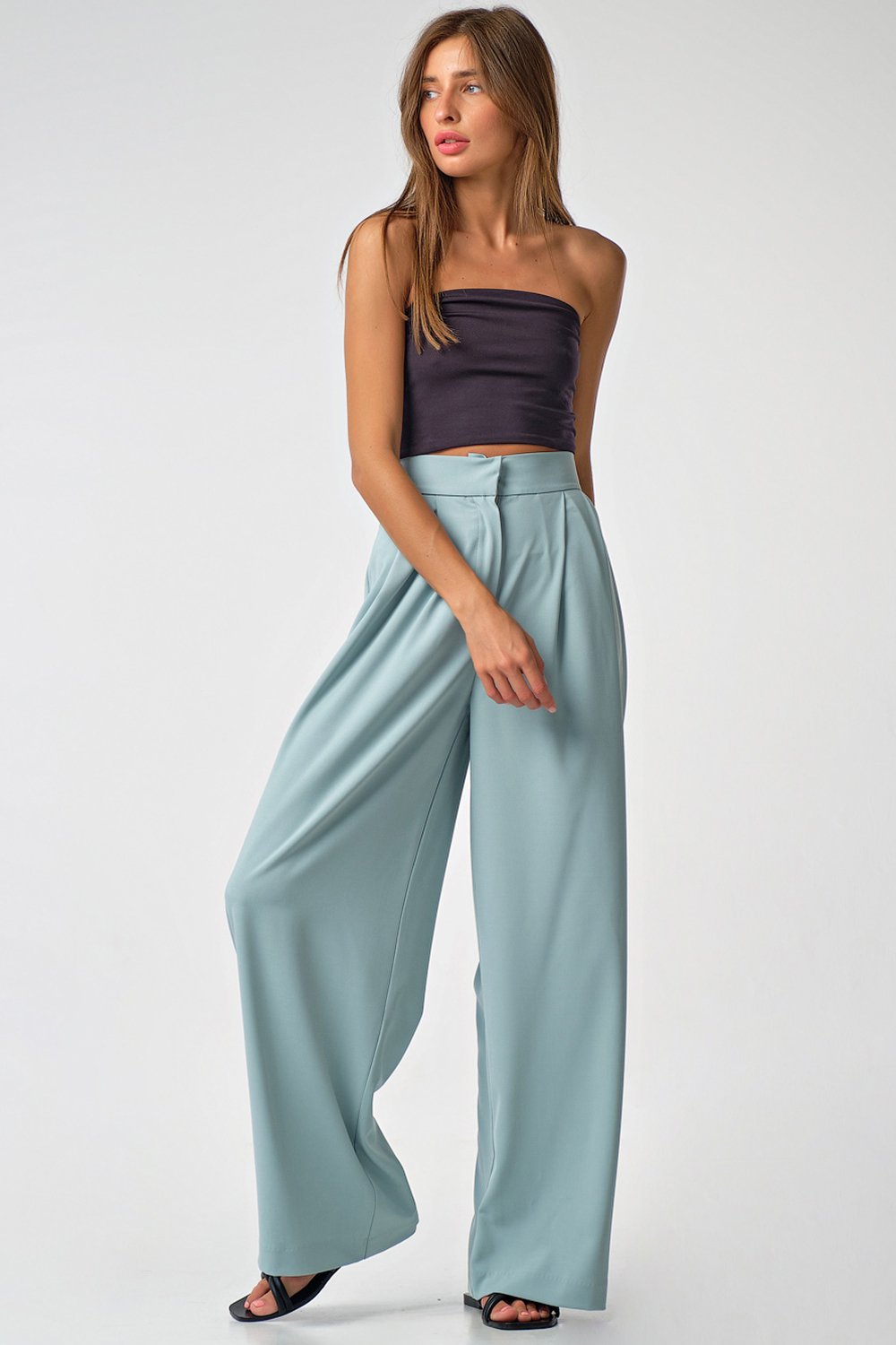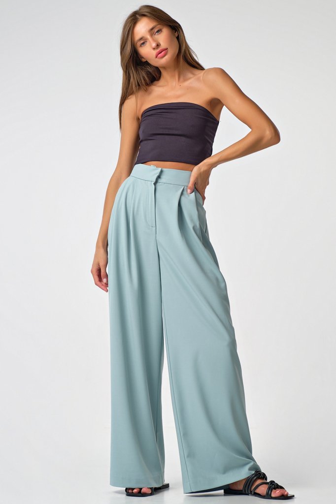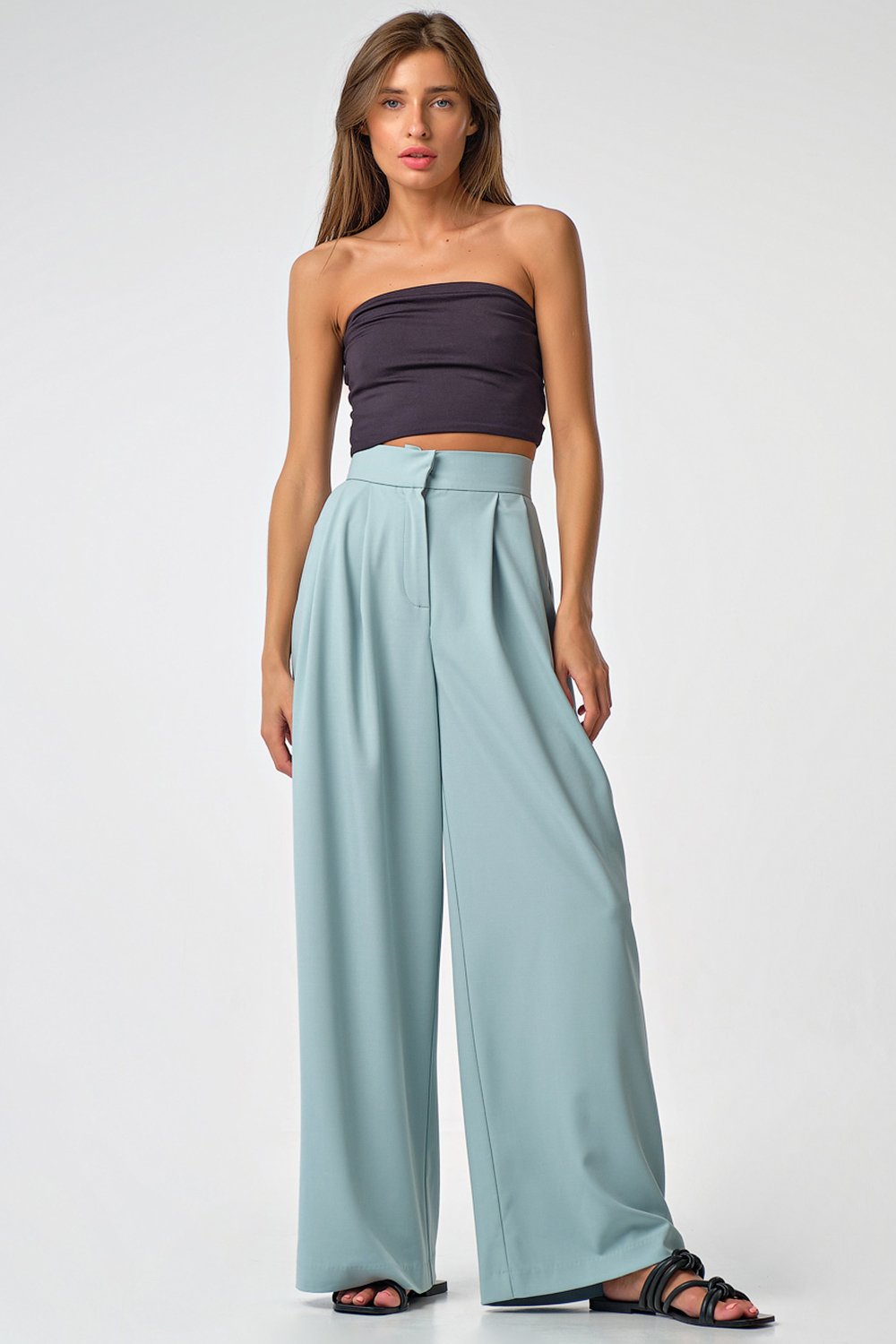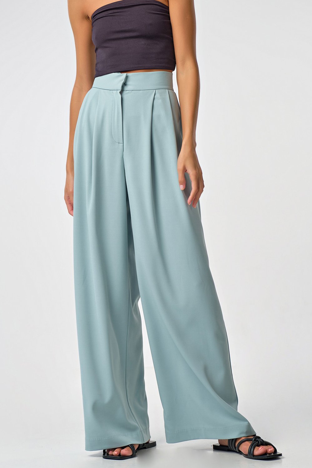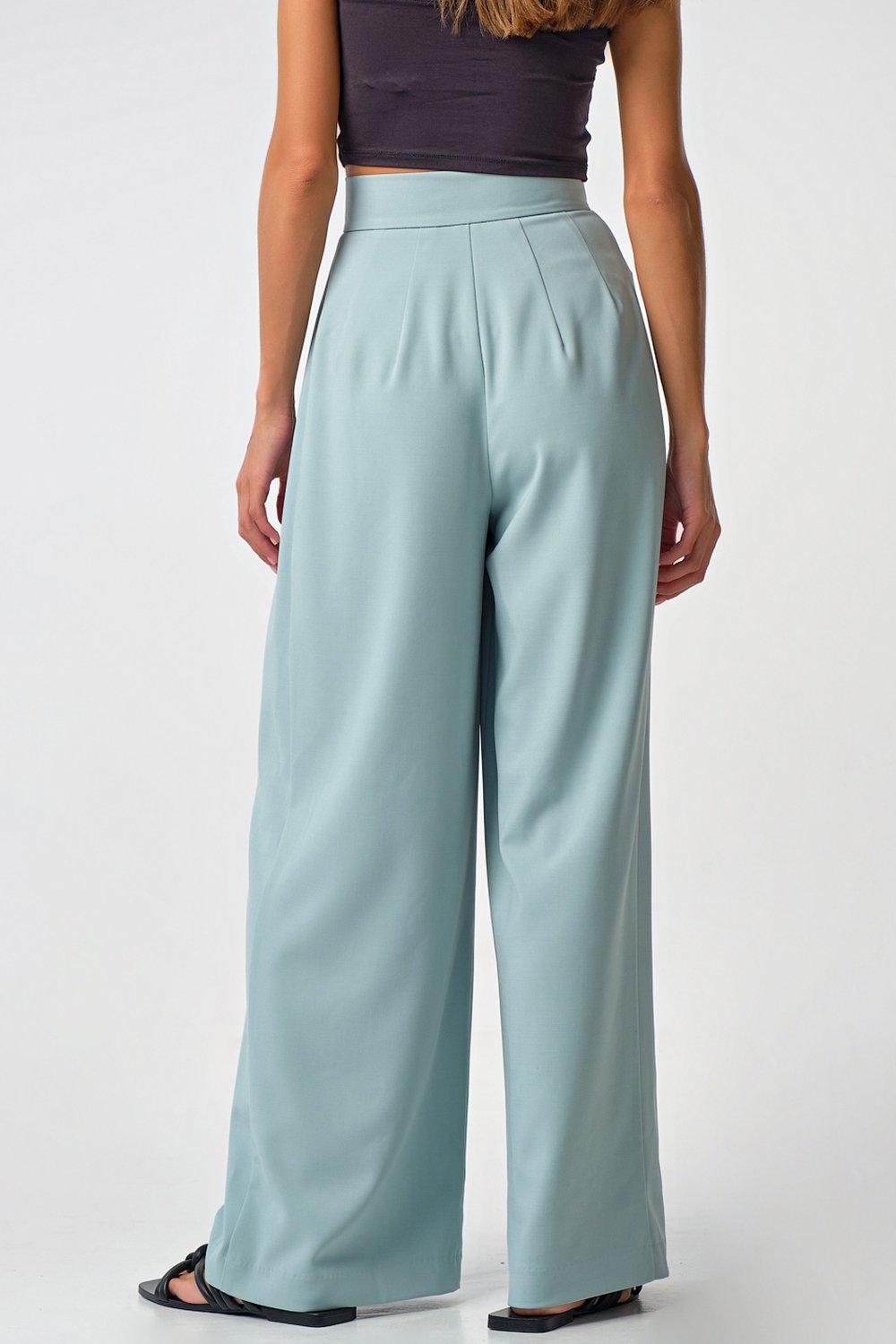 • Особенности: Брюки палаццо из костюмной ткани. Детали: притачной пояс с застежкой на крючок две глубокие складки по переду застежка на молнию.