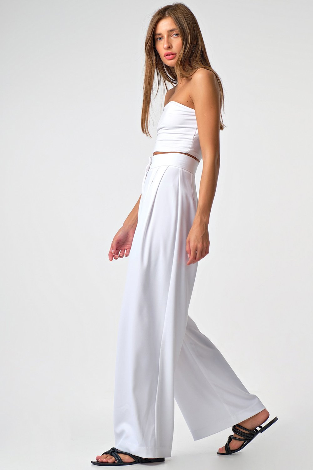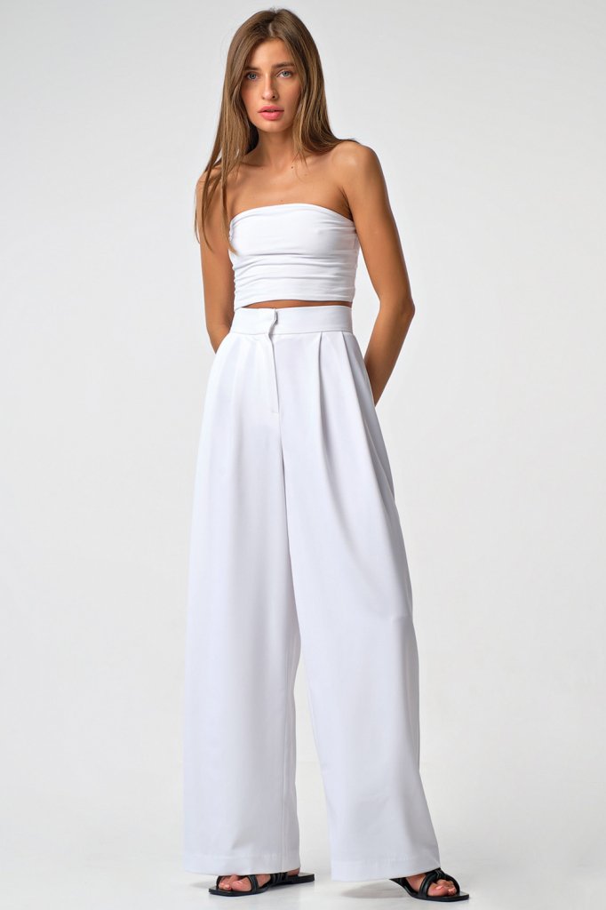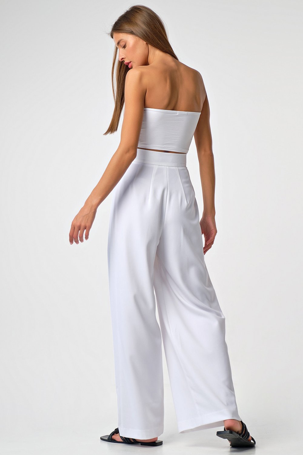 • Особенности: Брюки палаццо из костюмной ткани. Детали: притачной пояс с застежкой на крючок две глубокие складки по переду застежка на молнию.