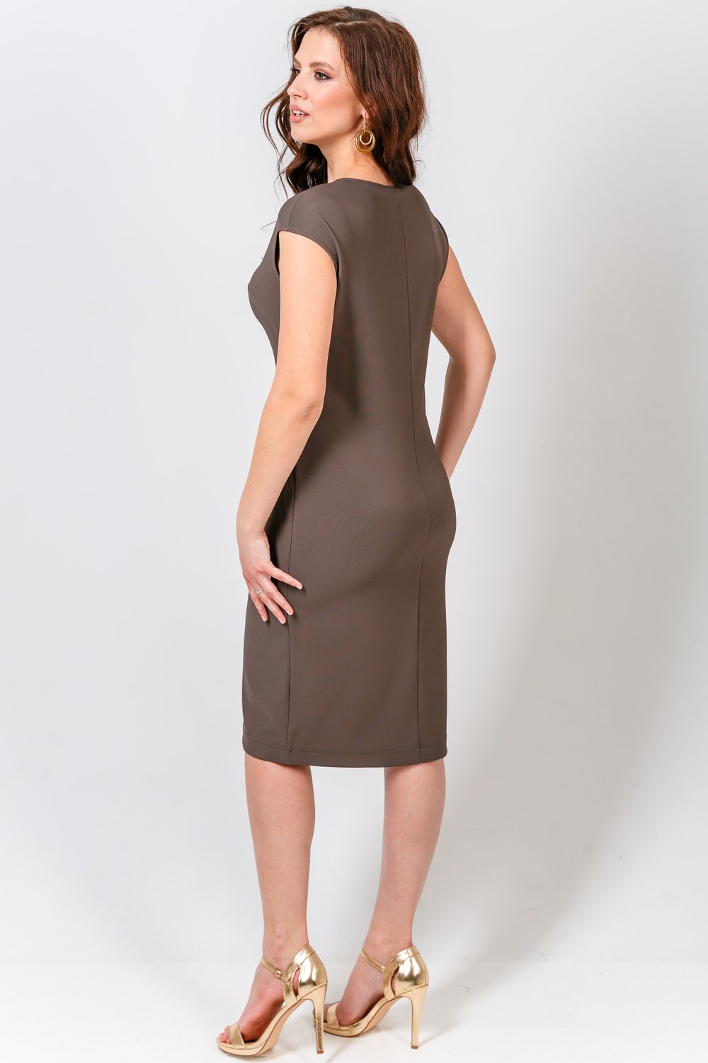 Платье полуприлегающего силуэта. Спинка со средним швом, перед с нагрудными вытачками. Горловина круглая, плечо спущенное.Характеристики: