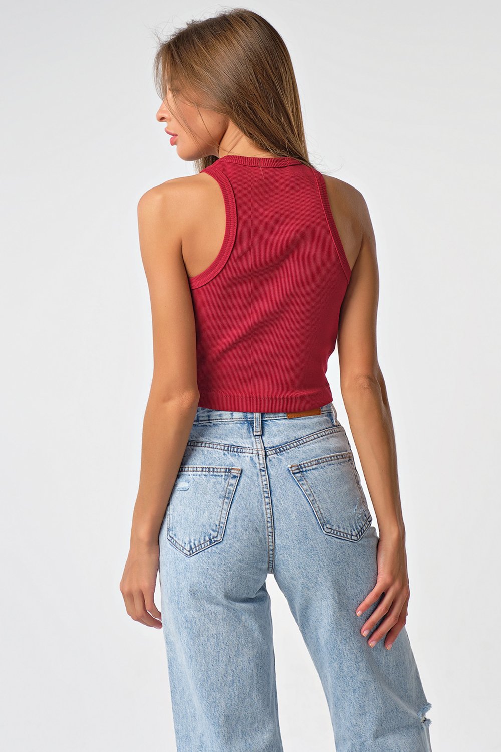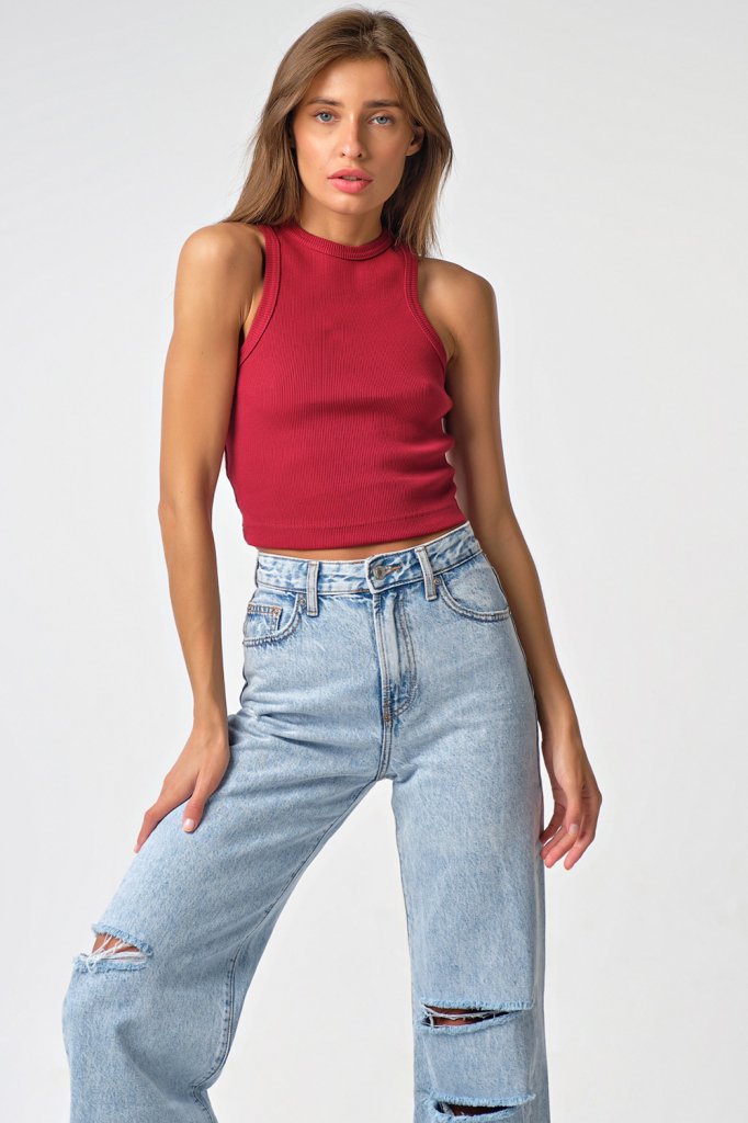 • Особенности: Укороченный топ из кашкорсе. Детали: завышенная пройма проймы и горловина обработаны окантовкой. Без застежки.