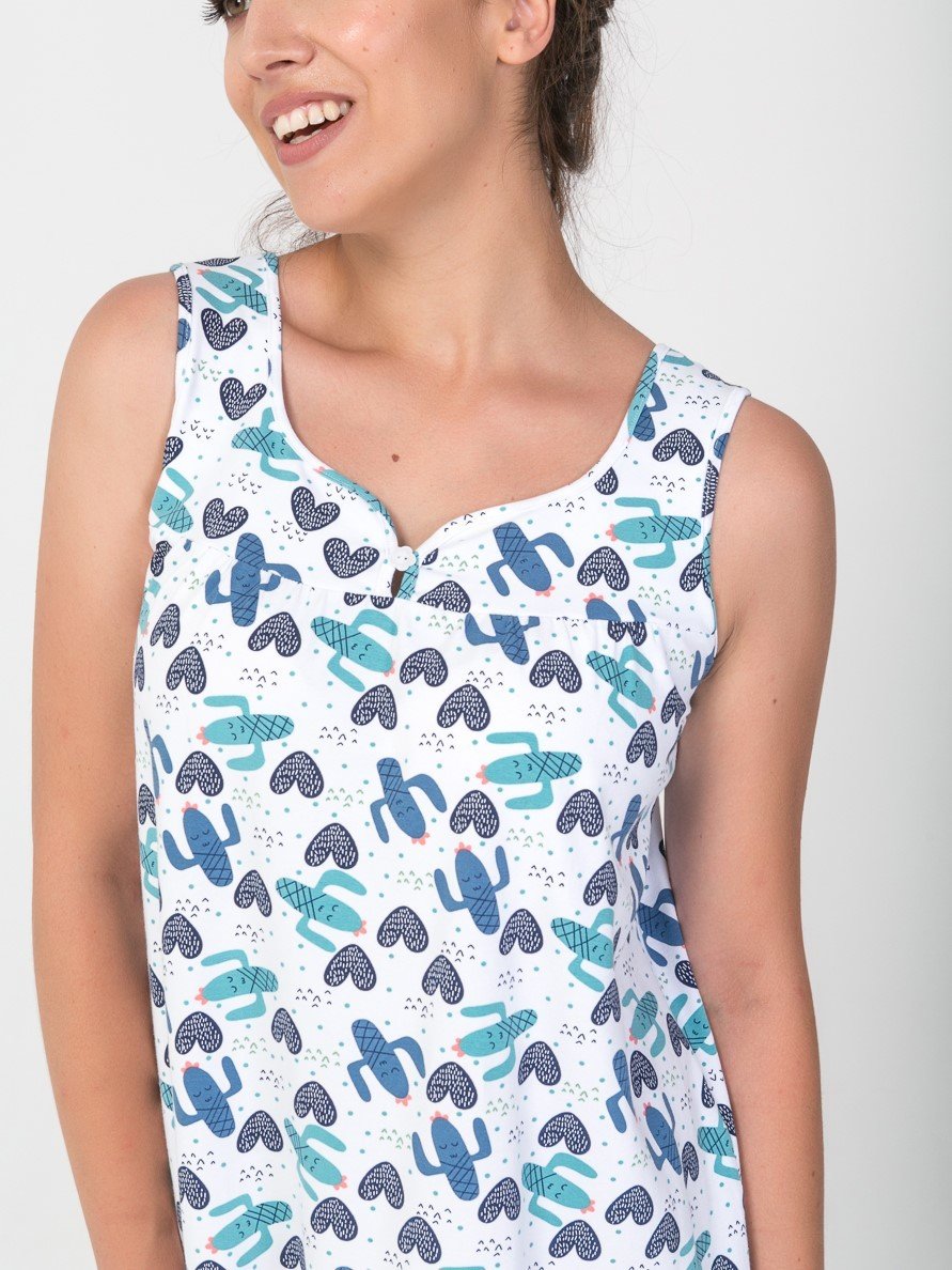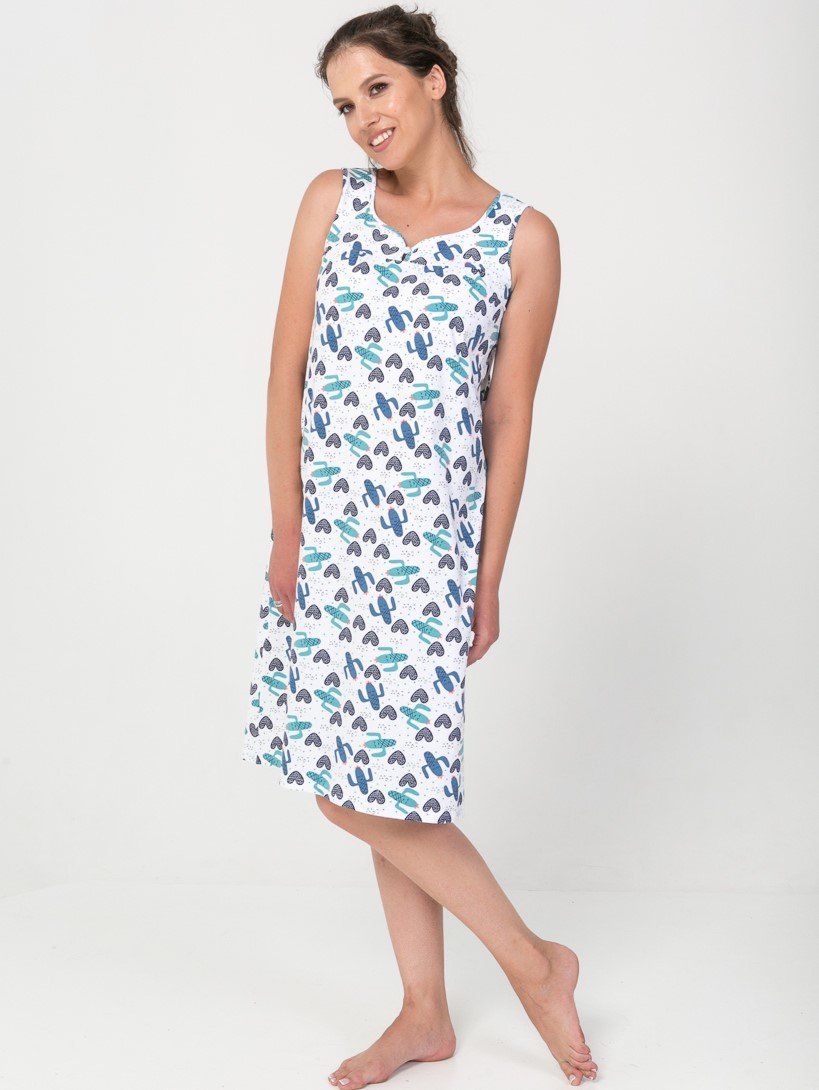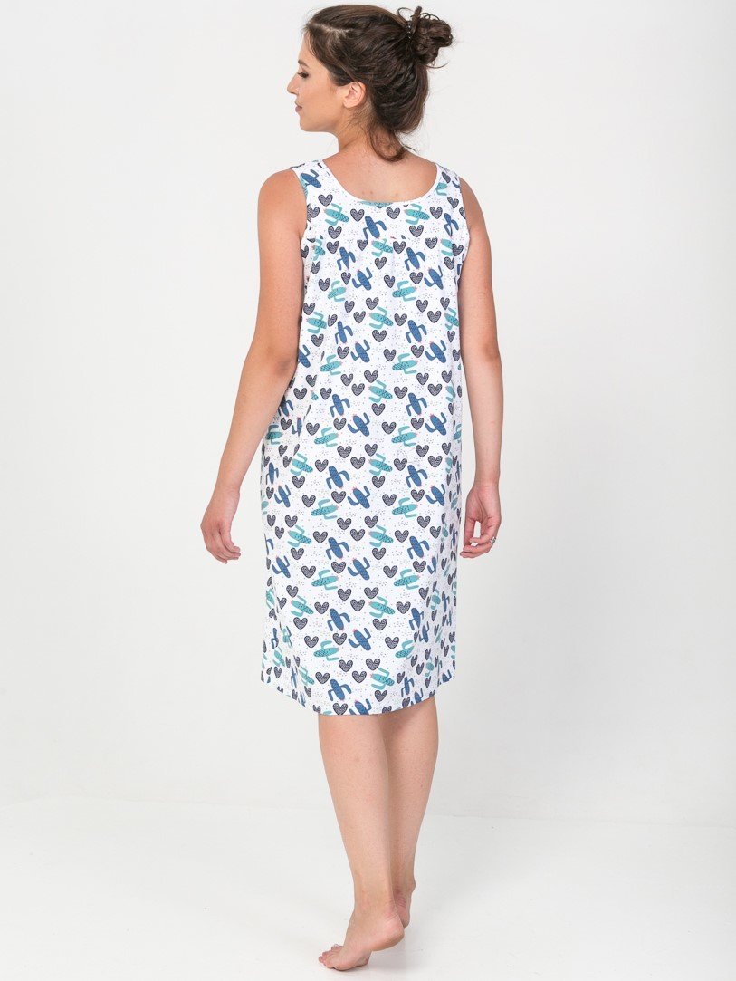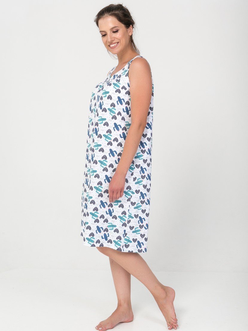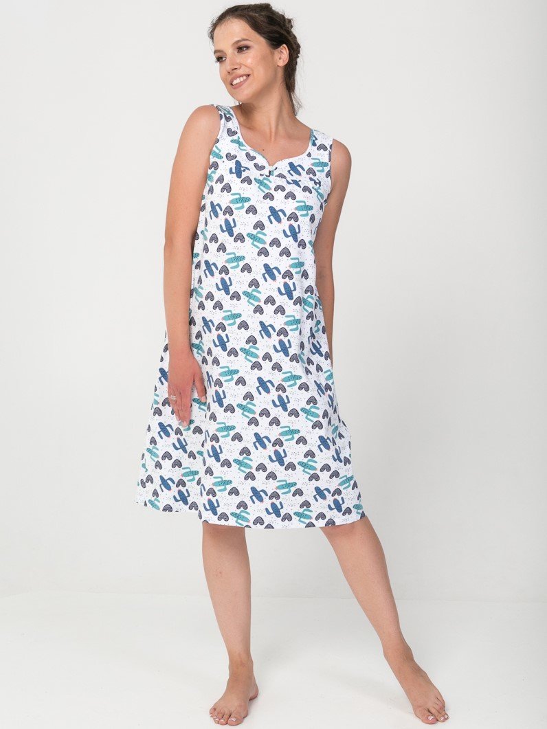 Сорочка ночная женская прямого силуэта, с кокеткой по переду и спинке, без рукава. Горловина и пройма обработаны окантовочной бейкой из основного сырья.