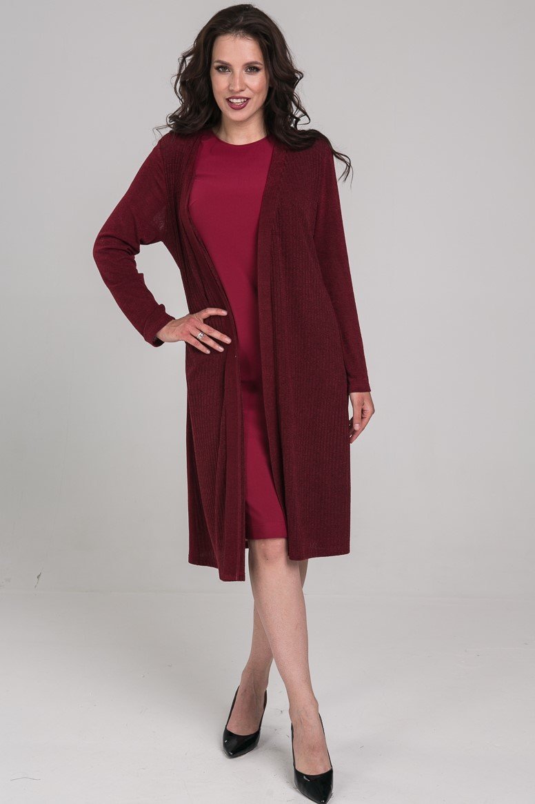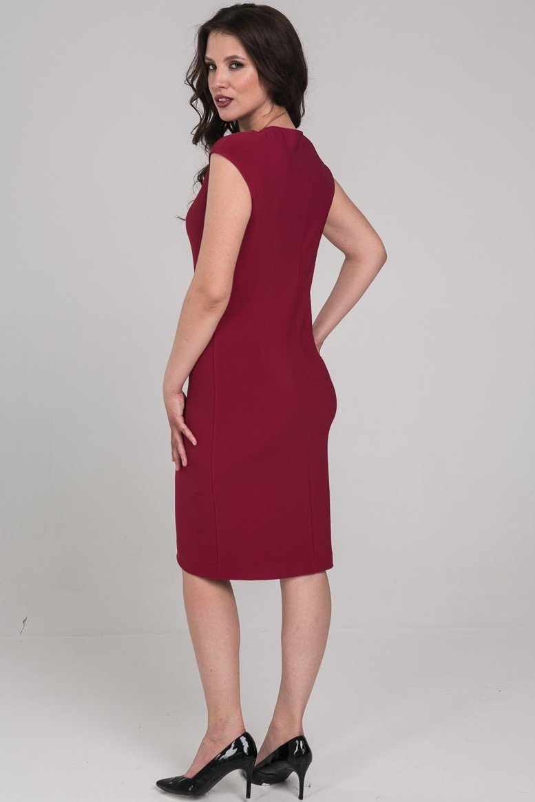 Платье полуприлегающего силуэта. Спинка со средним швом, перед с нагрудными вытачками. Горловина круглая, плечо спущенное.Характеристики: